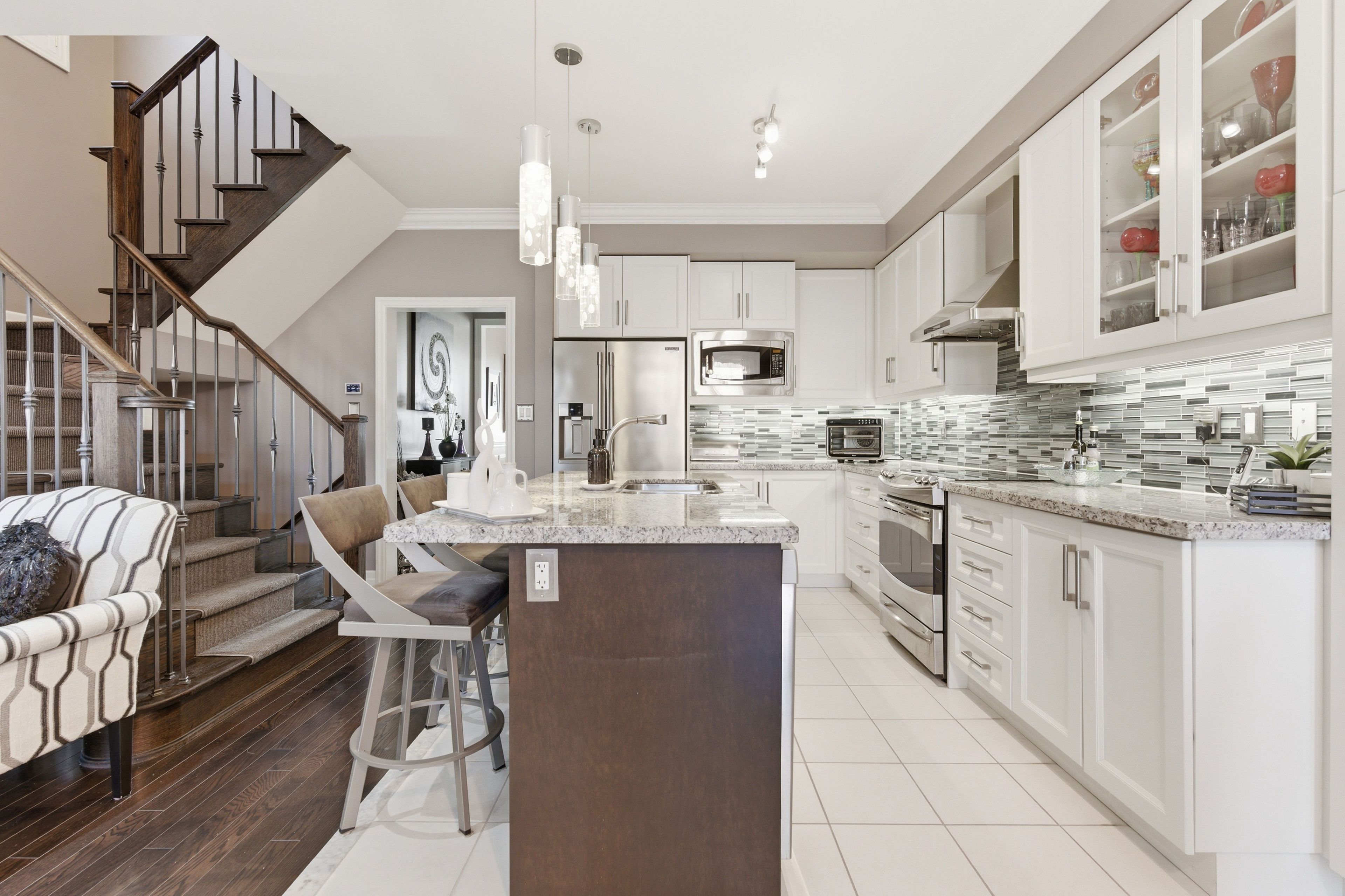 • Upgraded kitchen features granite countertops and ample storage.