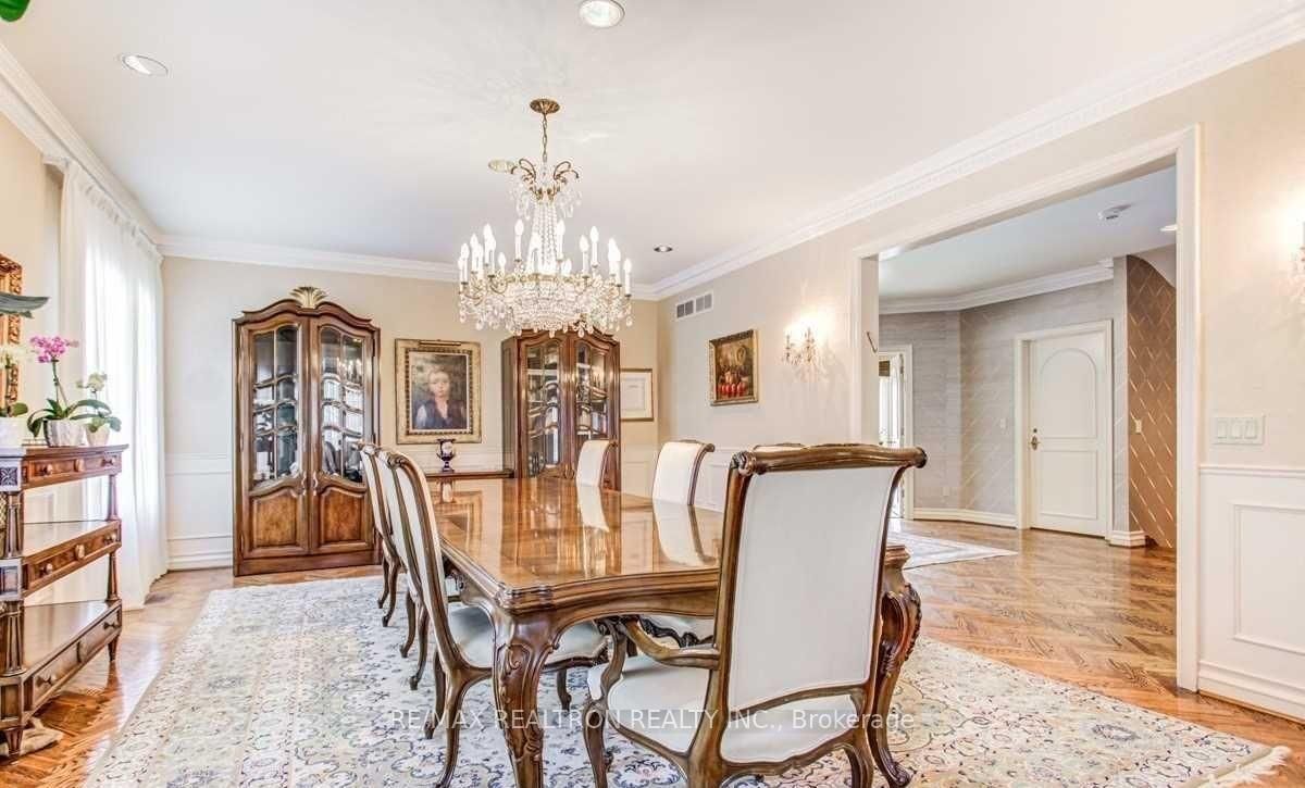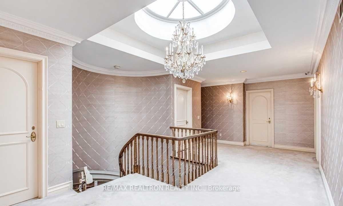 Discover a rare offering on one of the most sought-after streets in lawrence manor. This grand, custom-built residence stands noticeably larger than neighbouring homes, set on a generous 54. 99 x 123 ft lot. Designed with timeless craftsmanship, the home features soaring ceilings, detailed crown mouldings, and expansive principal rooms-an ideal layout for a larger family seeking space, comfort, and presence. Enjoy a spacious gourmet kitchen with a centre island, gleaming hardwood floors, and a luxurious primary suite with an elegant ensuite bath. Additional highlights include multiple family and entertaining areas and a skylight that fills the upper floor with natural light. A rare blend of scale, character, and enduring style-perfect for those looking to live in one of the neighbourhood's most desirable pockets.