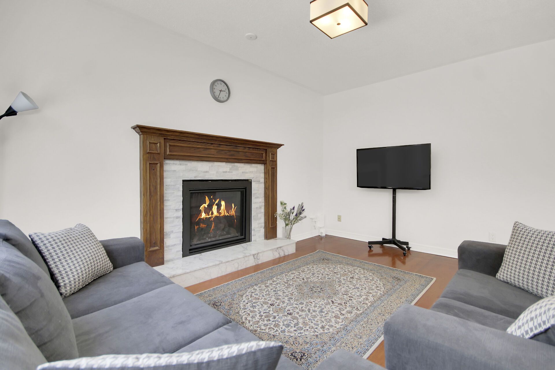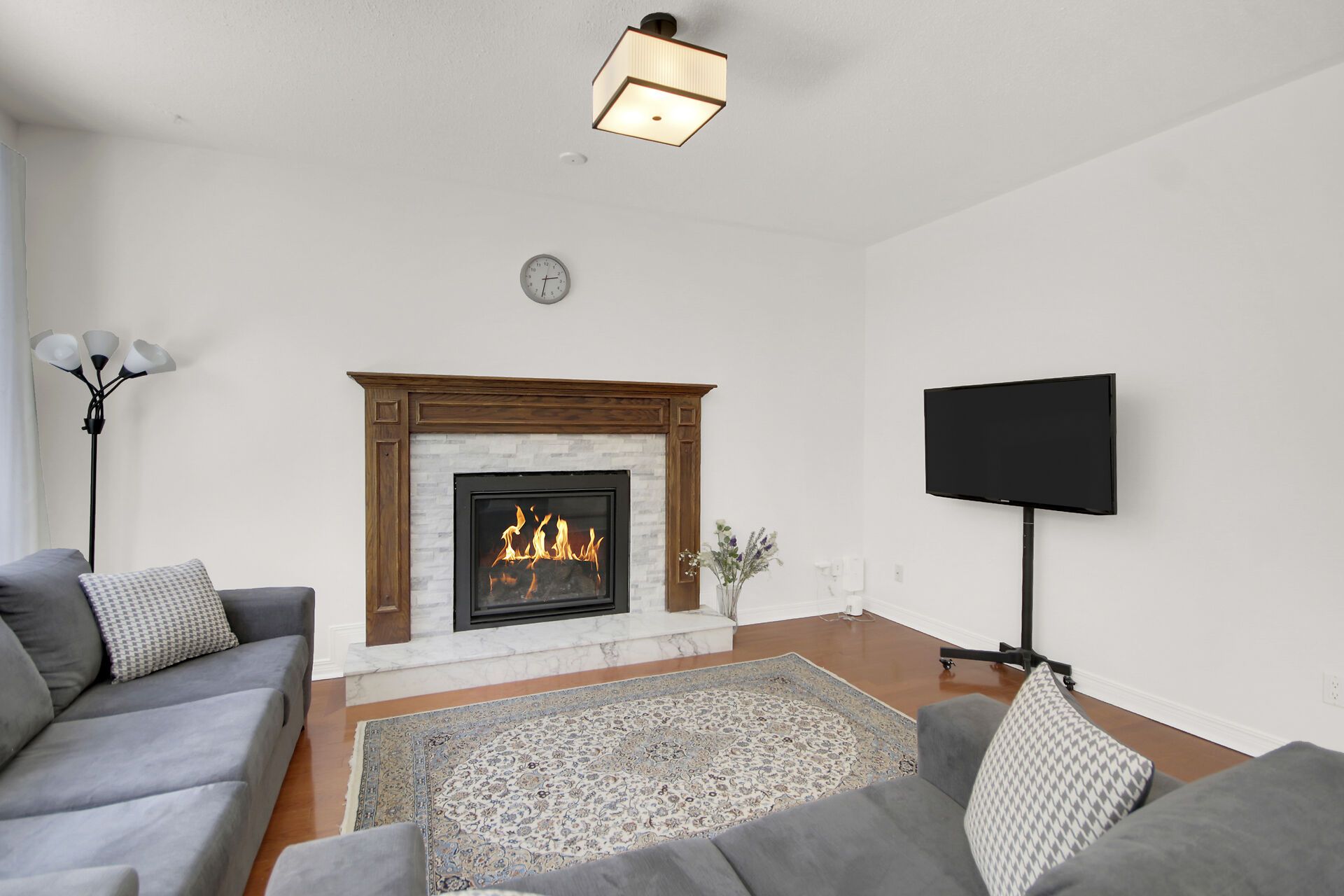 • Sun-filled main floor with a den, mudroom, and gas fireplace for comfort.