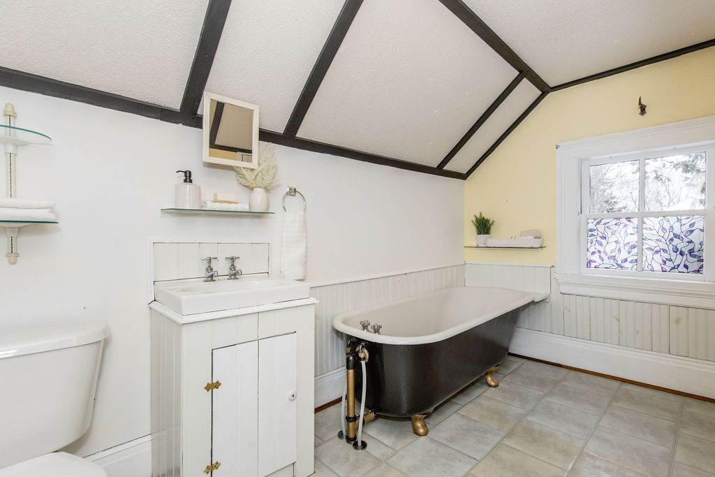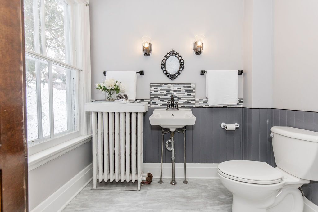 Welcome to 29 tecumseth street in orillia, a distinctive 2 1/2-storey century home where history meets modern updates. Originally built in 1900 just across the street and carefully relocated to its present setting in 1911, this 5-bedroom, 4-bathroom residence blends classic charm with thoughtful improvements. With minimal changes, it could easily be converted back to a 6-bedroom home. Step inside through the welcoming side foyer and you're immediately greeted by warmth and character. The main hallway features the classic original staircase, a timeless focal point. The spacious living room offers a bay window, built-ins, and a marble fireplace surround, while the large formal dining room features a plate rail and electric fireplace, ideal for hosting family gatherings and celebrations. The oversized powder room adds convenience, and the kitchen includes updated appliances, original baker's table and cabinetry, and access to the butler's staircase. A bright 3-season room provides access to the backyard and a separate basement entrance. Upstairs, the second level offers two separate wings encompassing four bedrooms,including a primary suite with a walk-in dressing room thoughtfully converted from a former bedroom. A 4-piece main bath with tiled shower and convenient laundry closet, along with an additional 2-piece bath, complete the level. The third floor features a fifth bedroom with its own ensuite and classic clawfoot tub, plus attic storage. The full unfinished basement offers a rec room area, additional laundry hookups, abundant storage, and a walk-up to the sunroom. Featuring many original architectural details alongside modern mechanical updates, including a boiler (2022) and hot water heater (2026), this home offers the perfect balance of character and functionality.