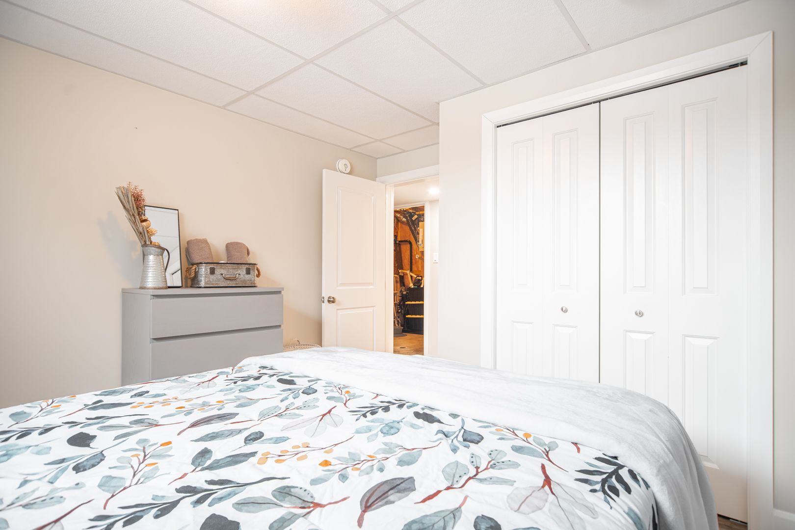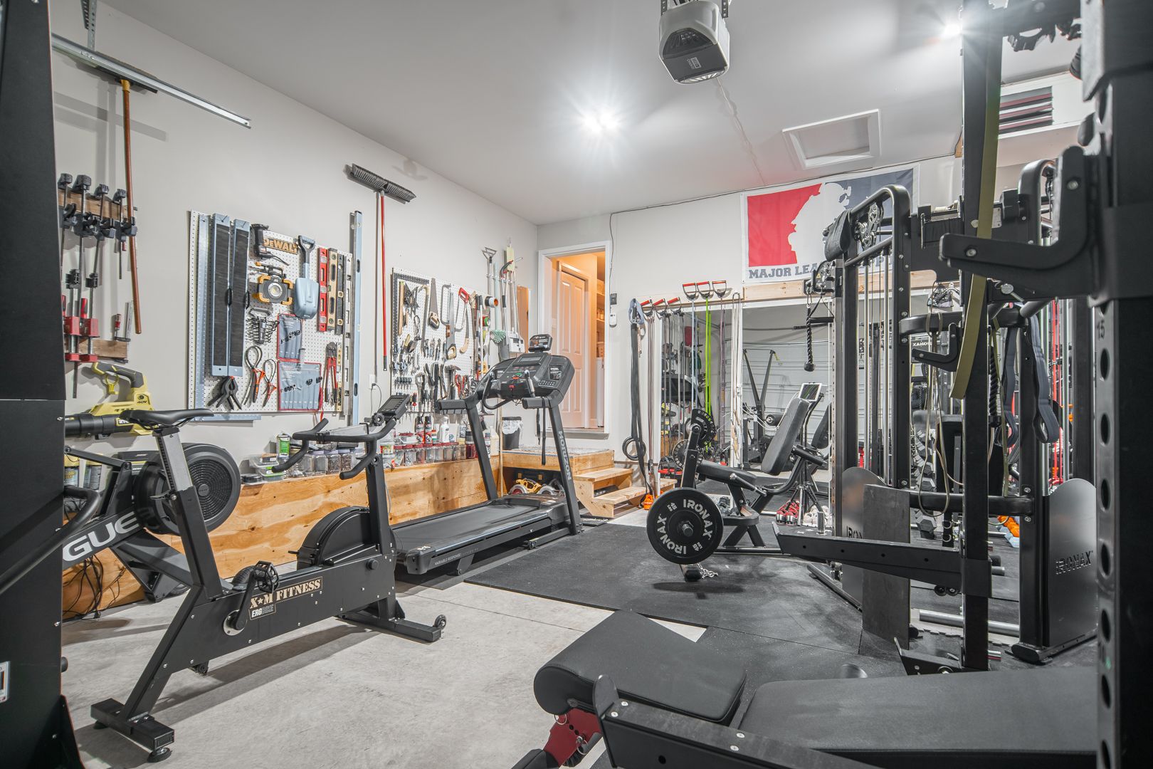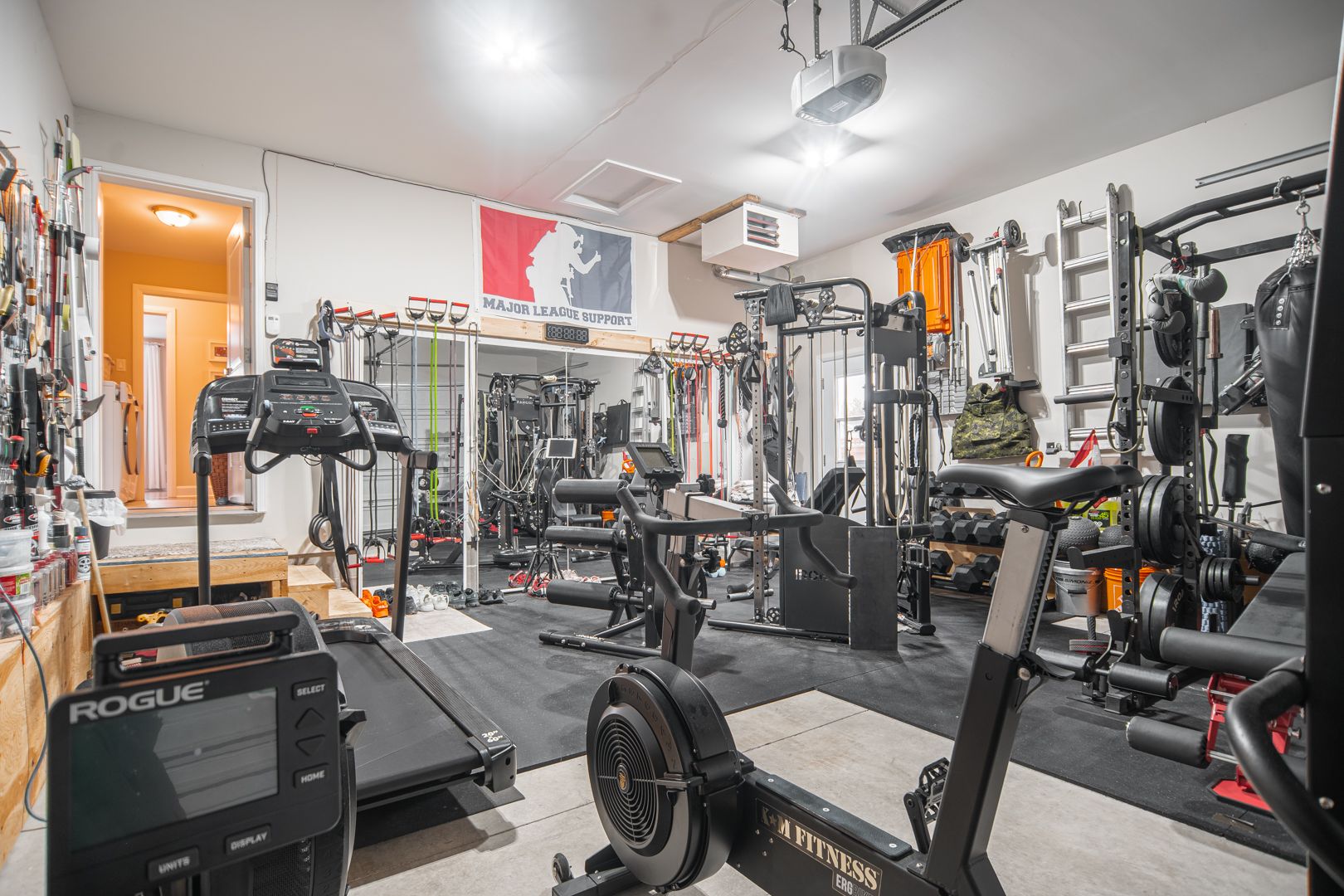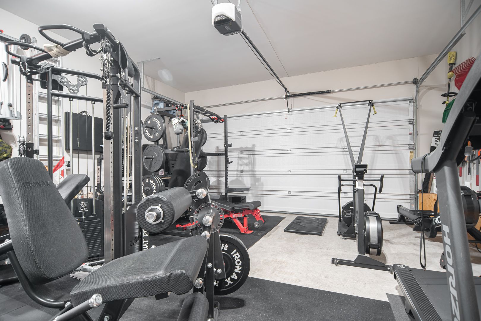 • Oversized garage currently used as a home gym, offering convenience.