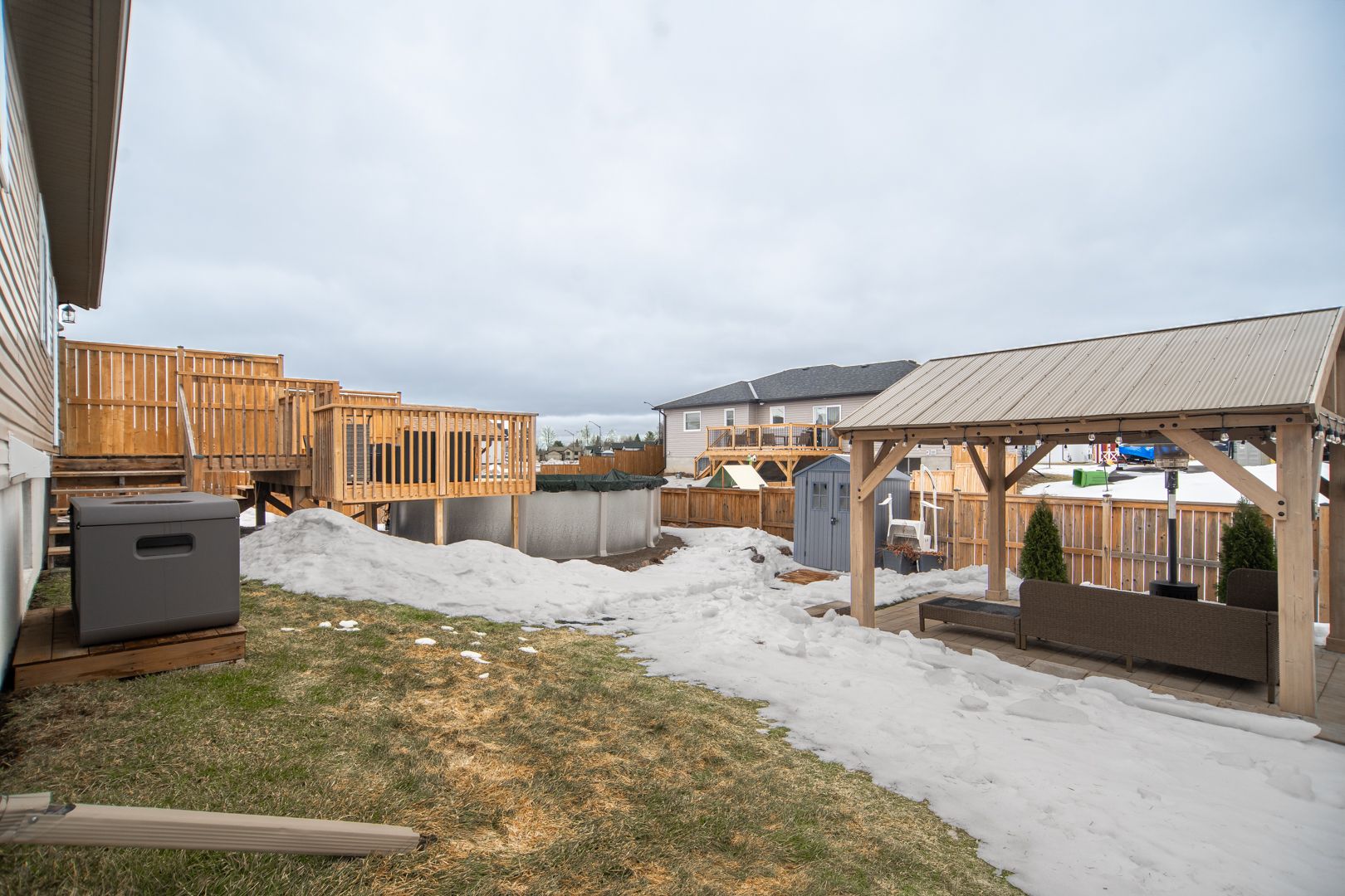 This property represents far more than a home; it offers a complete lifestyle experience, combining privacy, luxury outdoor living, and a deeply connected community setting. Quality built in 2020 by award-winning local builder waito homes. This home is meticulously maintained, enhanced with numerous key features and capital improvements, including a remaining year of tarion warranty. This property presents a rare opportunity to acquire a fully upgraded, move-in-ready home. The backyard is the true centrepiece: a private, resort-style retreat featuring a heated saltwater pool, expansive deck with privacy screening (2025), and a pavilion anchored by extensive hardscaping and landscaping (2023-2025). Every element has been thoughtfully designed to create a peaceful, elevated outdoor living environment ideal for both entertaining and quiet relaxation. A beautifully executed paver stone and decorative rock pathway (2024) winds seamlessly along the side of the home, guiding you into the backyard oasis. A gated side access with additional stonework (2025) provides functional space for storing or parking a recreational vehicle, trailer, boat, or side-by-side. Inside, the home delivers a fully finished executive layout: three bedrooms upstairs, including a primary suite with a walk-in closet, and a 3-piece en-suite bathroom. The open-concept kitchen and living areas are bright and welcoming. Added convenience with main floor laundry with direct garage access to the oversized, insulated, and heated attached double garage (currently serving as the home gym). The fully finished lower level doubles the living space with two additional bedrooms, a 4-piece bathroom, a large entertaining area and a family room with a built-in gas fireplace. Extensive storage (dedicated storage room, pantry overflow, under-stair, utility room). The front porch adds charm and livability, creating a welcoming space to enjoy the surrounding neighbourhood. 24-hour irrevocable on any written offer.