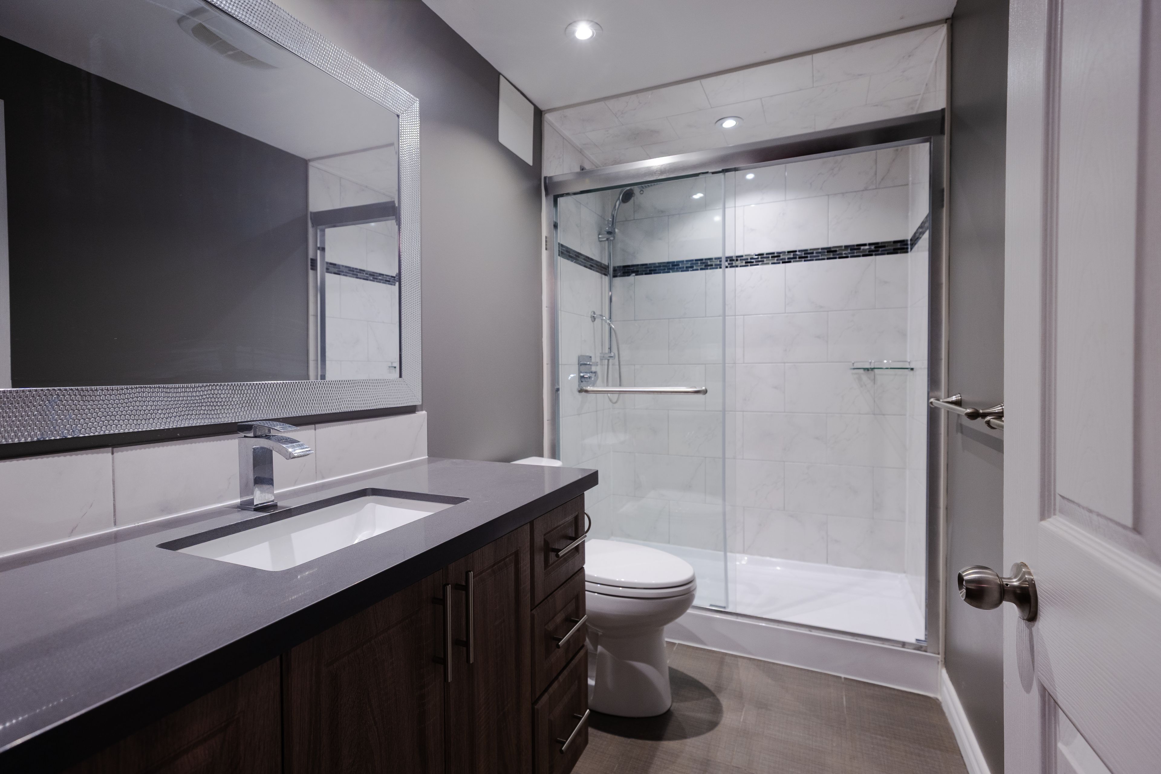 • Finished basement includes recreation room and extra bedroom with bathroom.