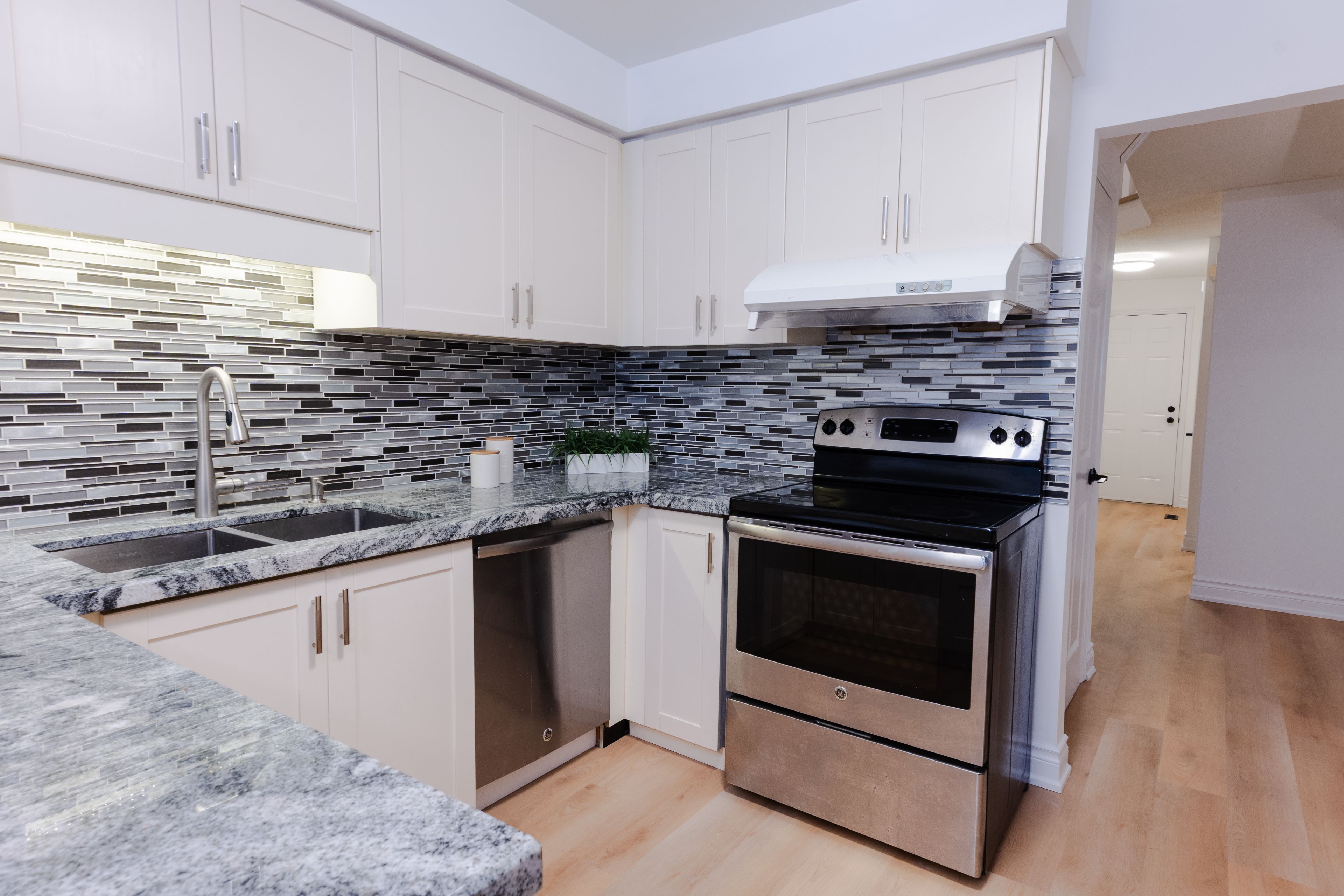 • Updated kitchen features granite counters and stainless steel appliances.