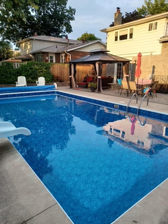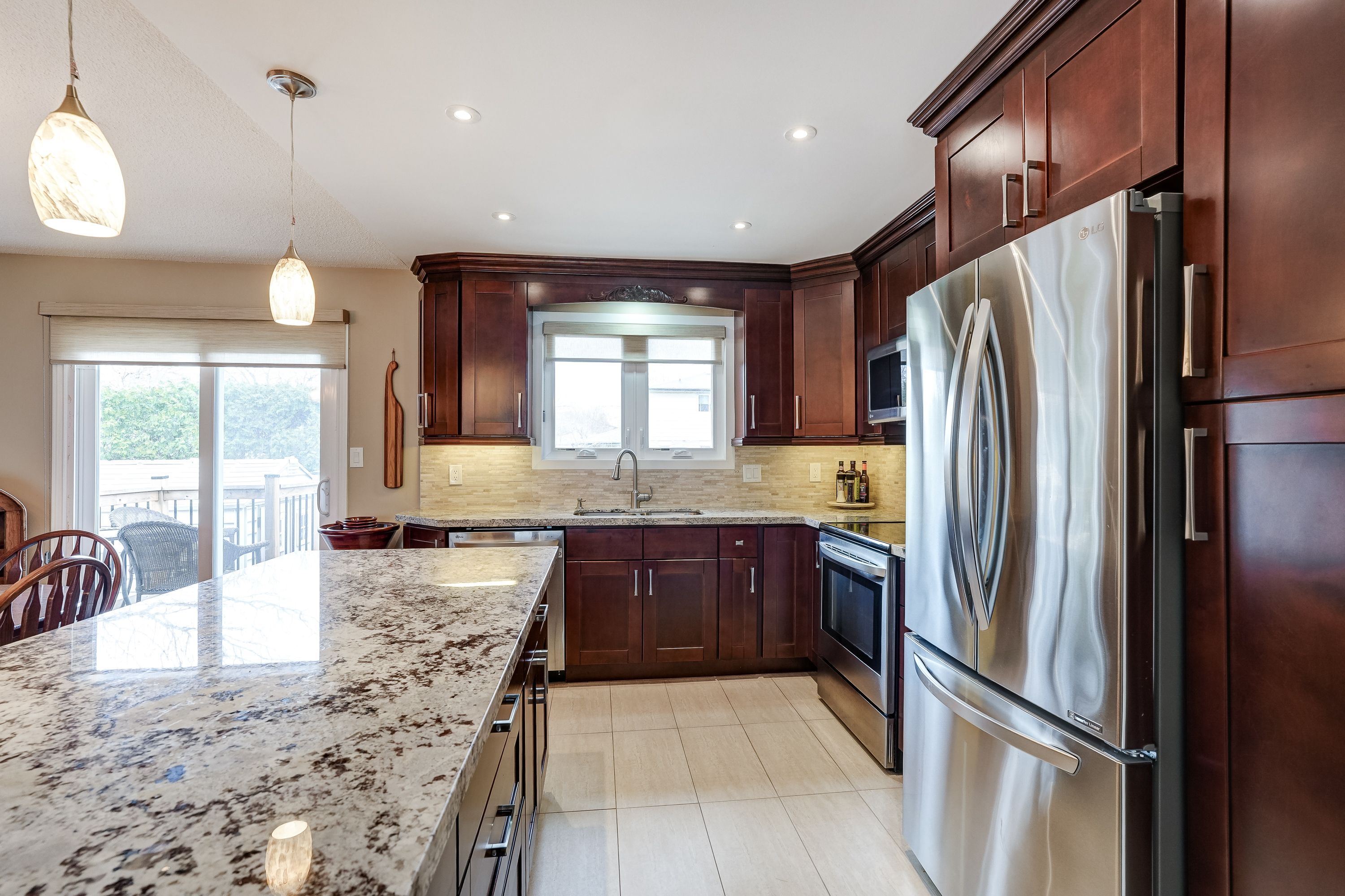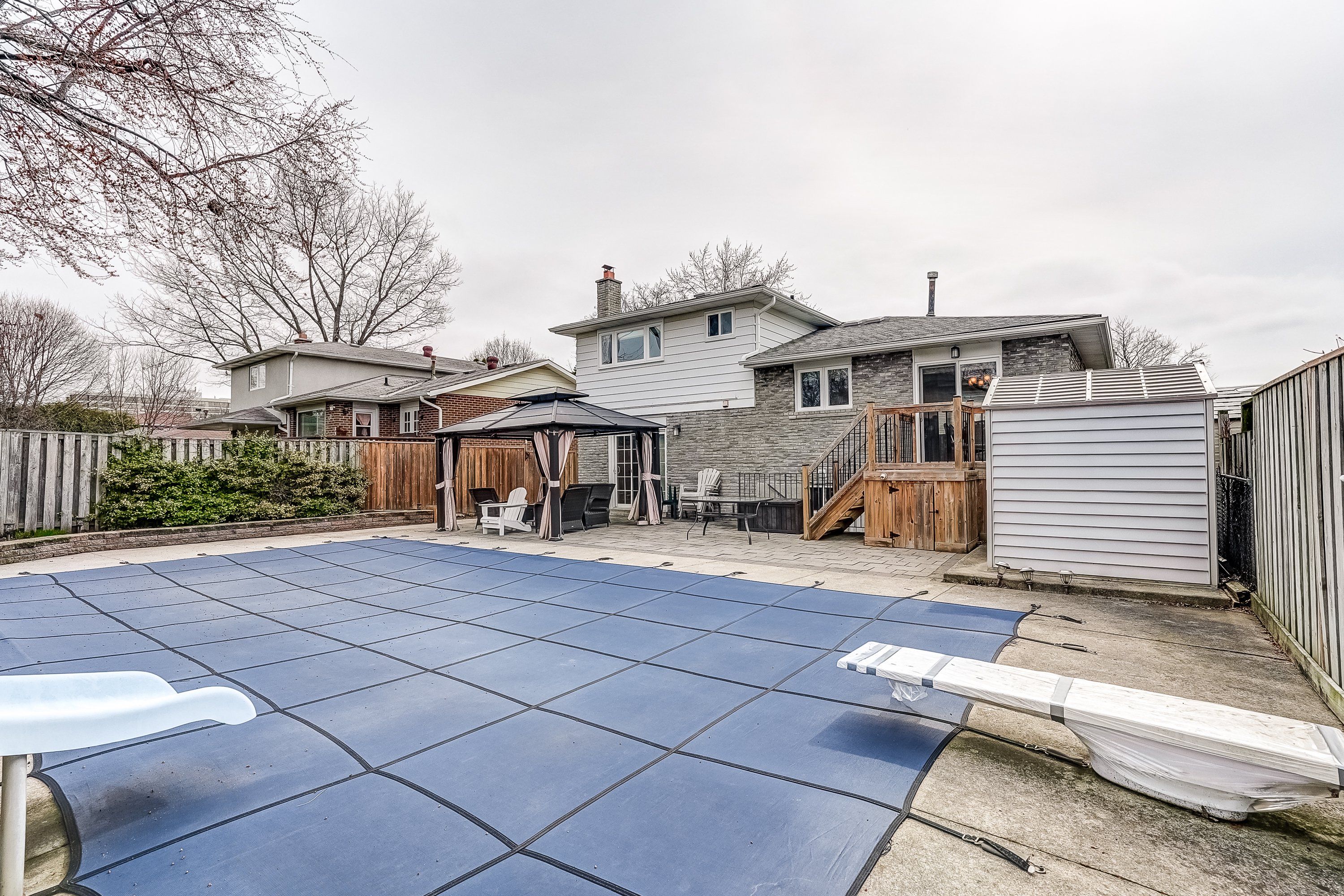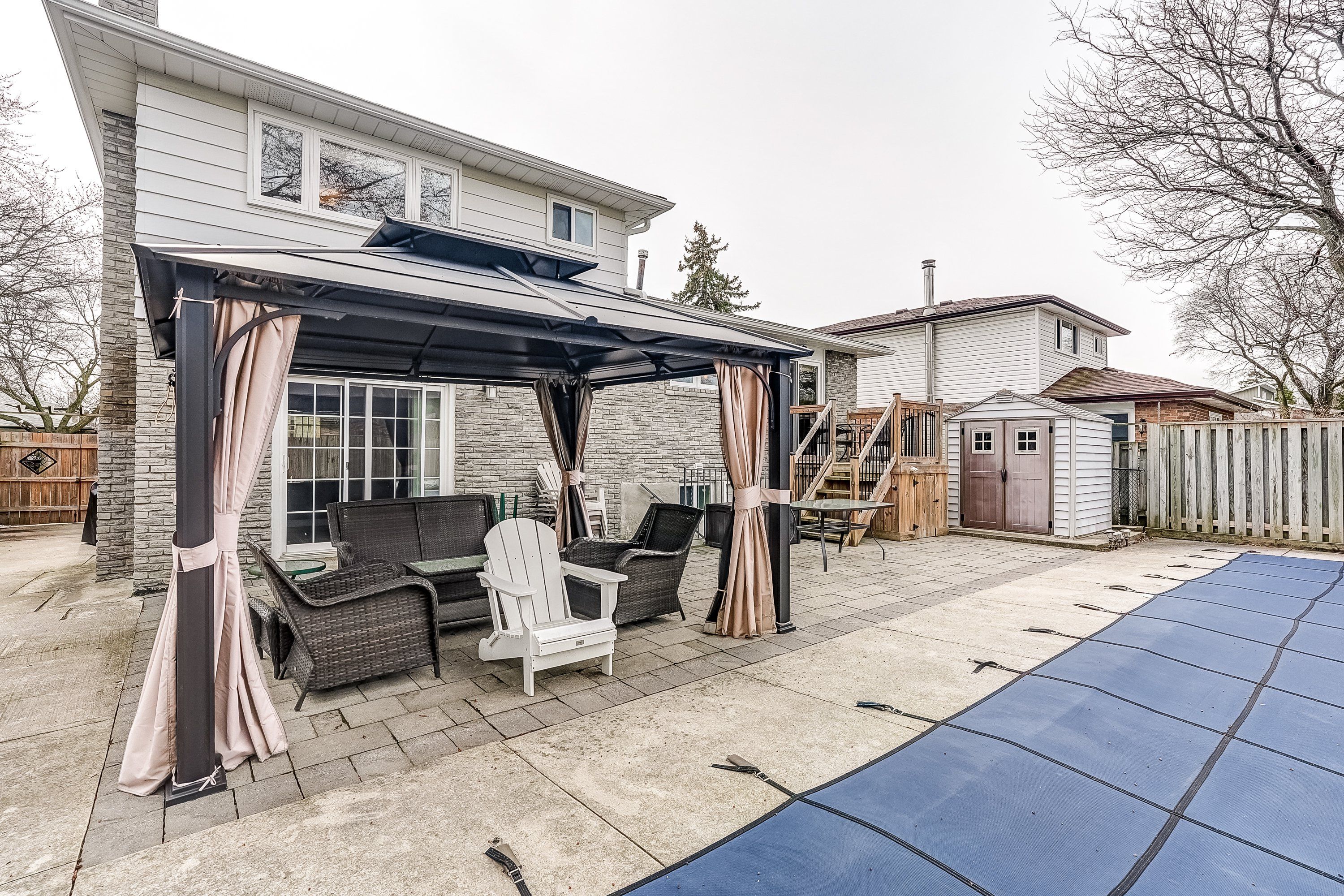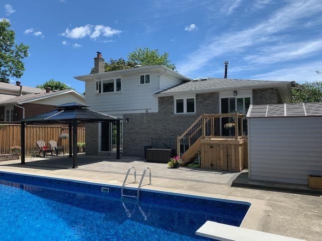 Open house this saturday april 25th 2 pm to 4 pm and sunday april 26th 2 pm to 4 pm. Show stopper ! Tastefully upgraded and renovated into an open concept home in popular "armbro heights" neighbourhood complete with main floor family room and salt water inground pool (16' x 32') situated on a 51' x 100' lot. Family room features a woodburning fireplace, and handy closet, 2pc washroom with pedestal sink, walkout to interlocking stone patio with metal gazebo. Redesigned kitchen with additional cabinets, pot and pendant lights, neutral oversized ceramic tiles and granite countertops. 3 good sized bedrooms, primary bedroom has a semi-ensuite with large windows, hardwood floors. Separate entrance to a finished recreation room with above grade windows, 3pc bathroom with attractive glass shower and pot lights, huge crawl space ideal for extra storage. Central air conditioning, electrical service on breakers, driveway has french curbs, rough-in for central vacuum, windows replaced, jump into the pool this summer!