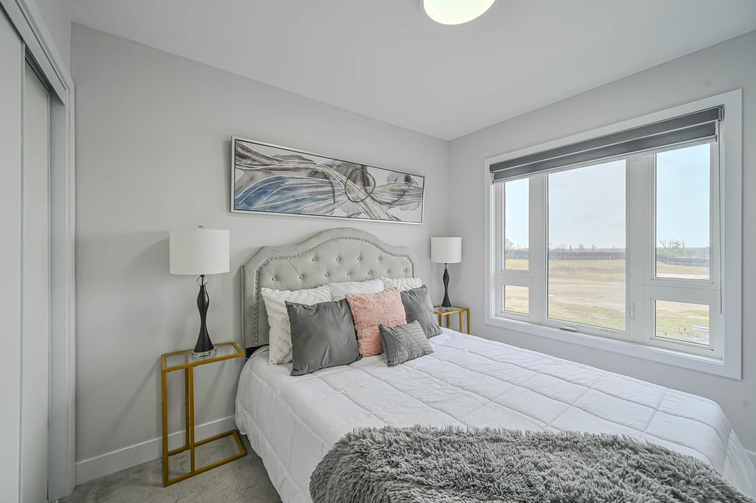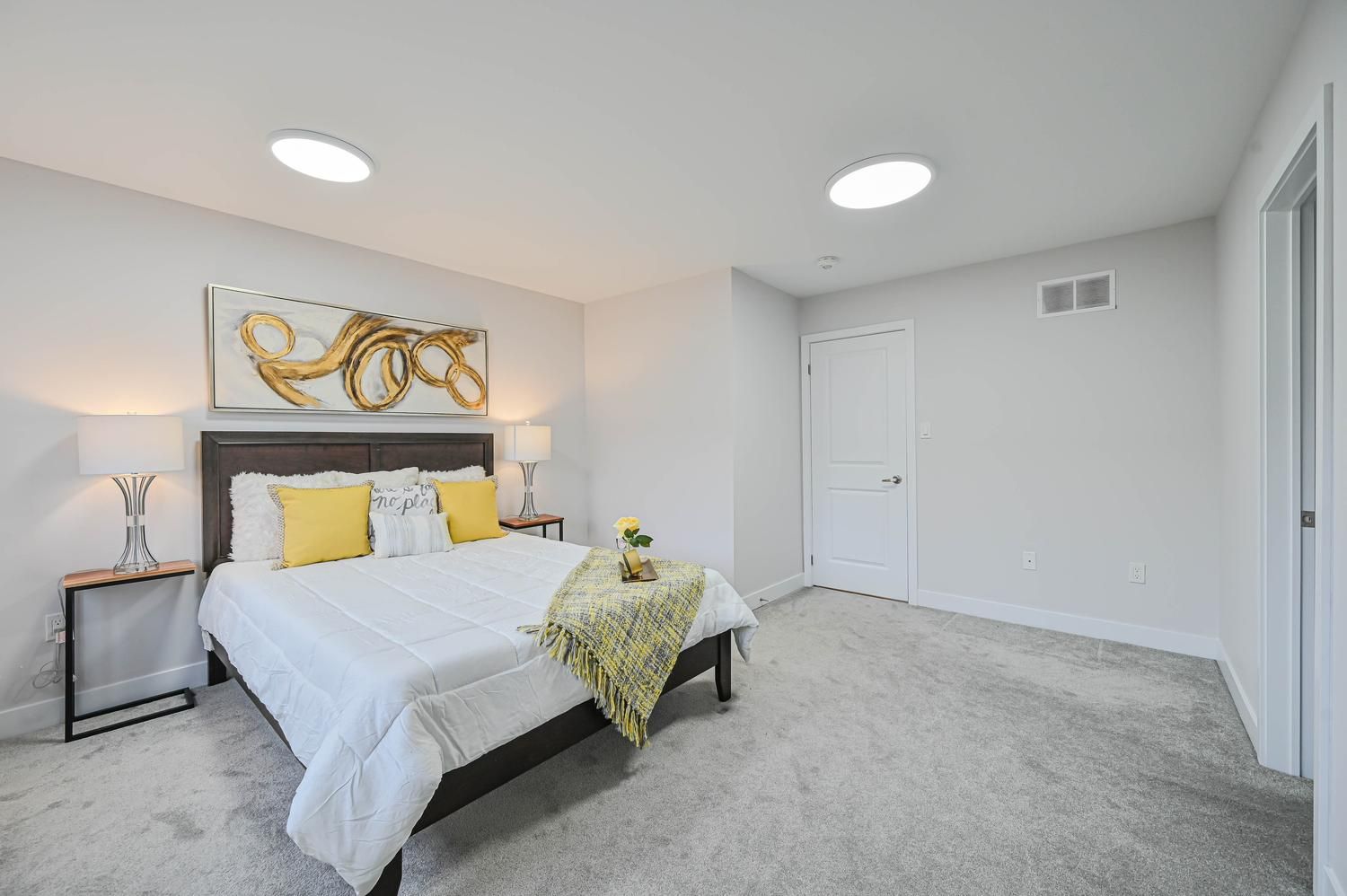 • Spacious primary bedroom fits a king bed, plus a reading nook.