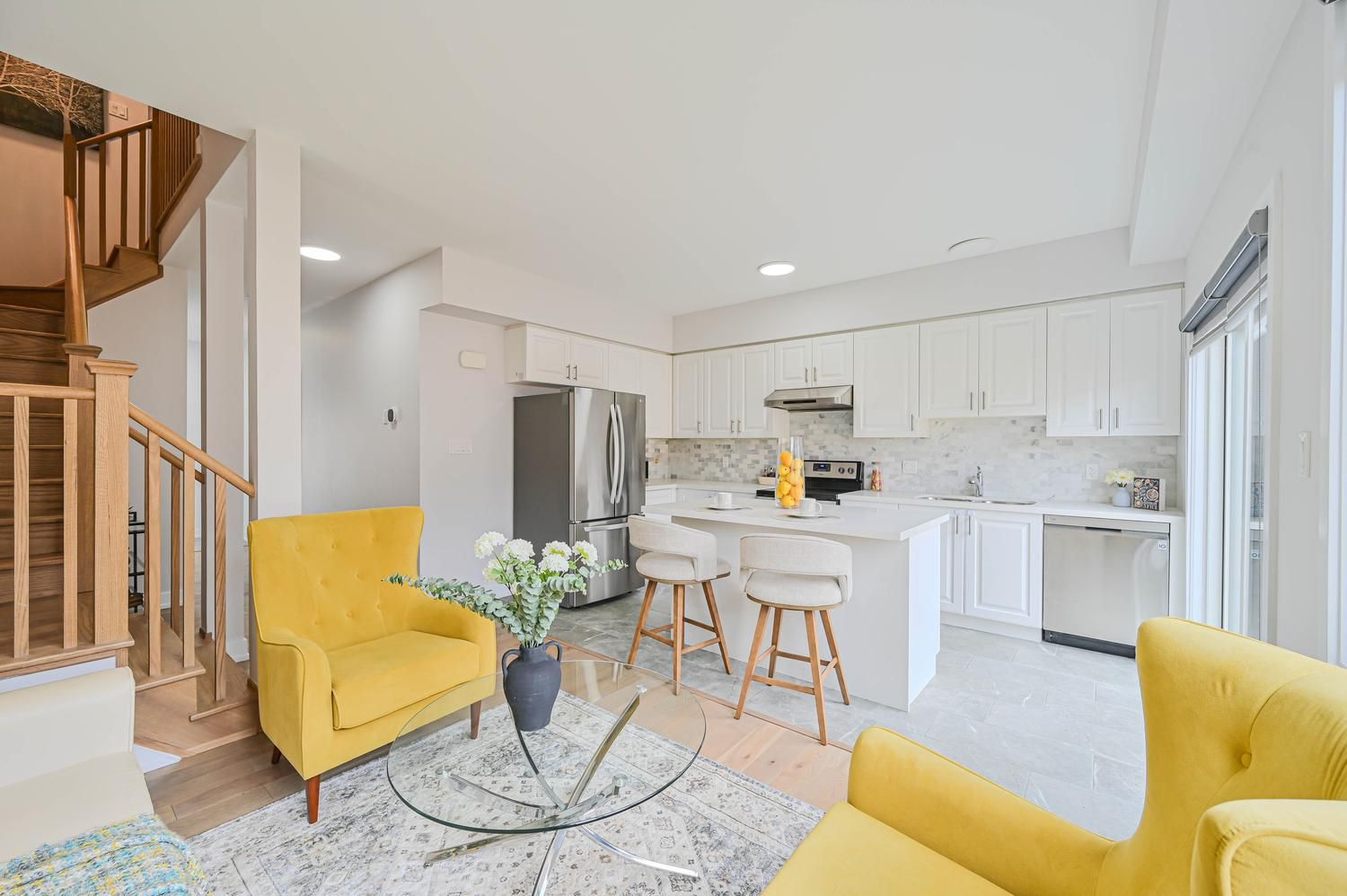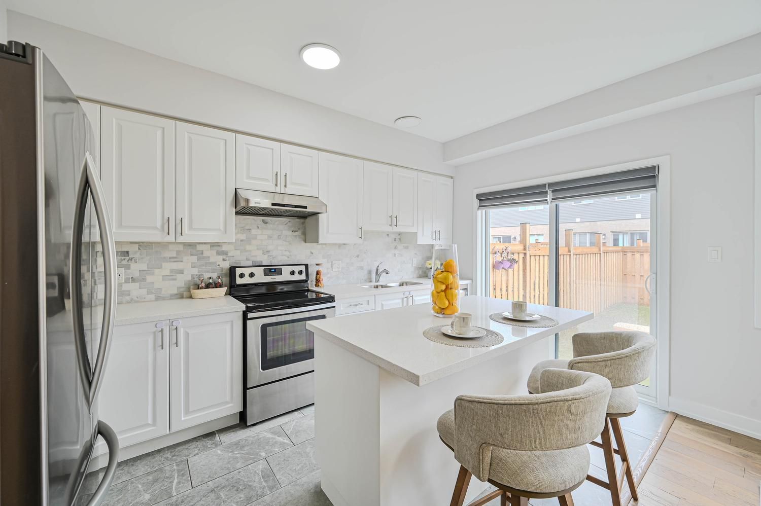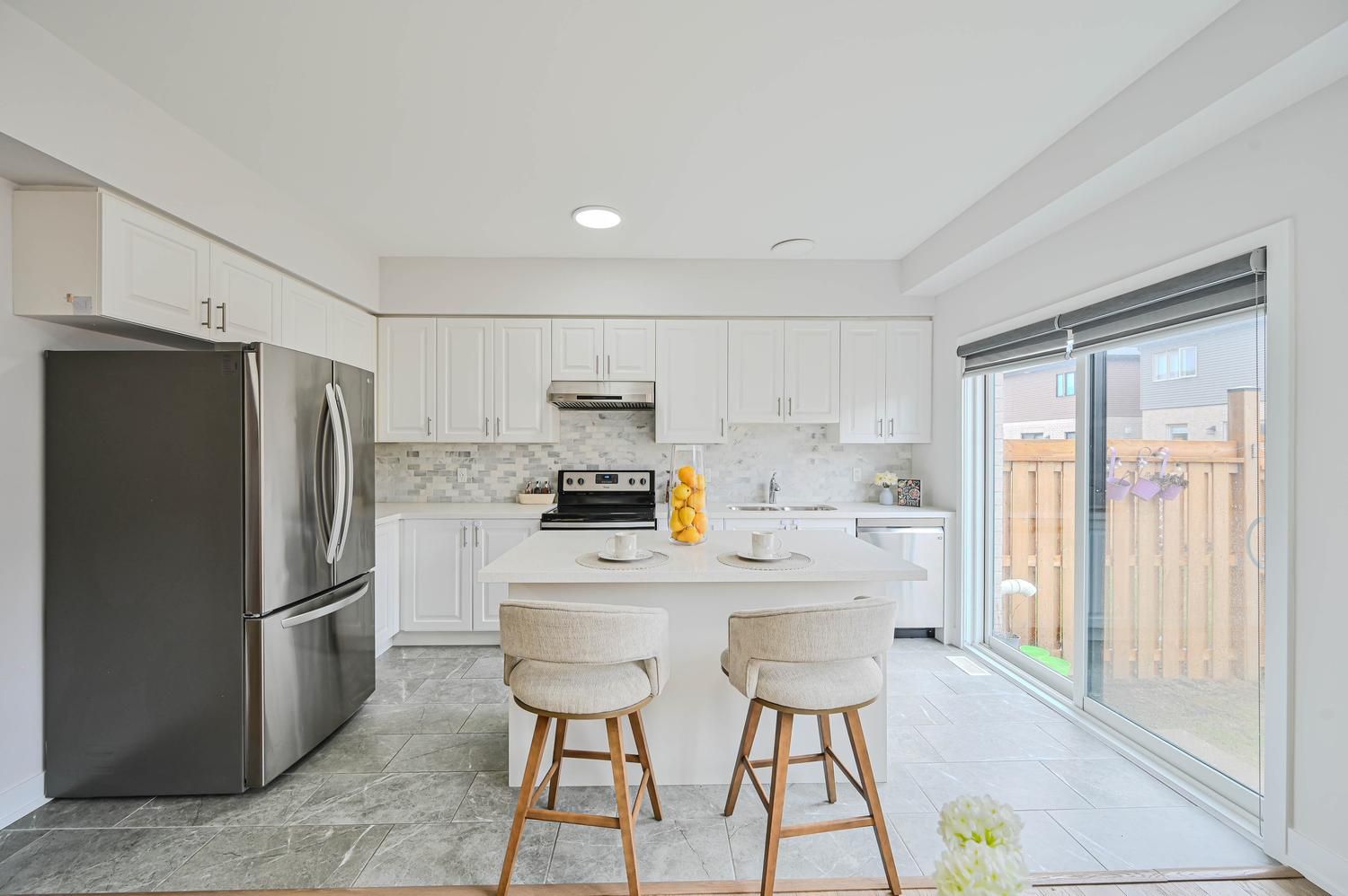 Beautifully maintained stunning 2022 build townhouse located in the highly desirable south-east barrie community. This bright and modern 2 storey freehold home offers 3 bedrooms and 3 bath, thoughtfully designed with stylish natural decor and functional living space throughout. The main floor features 9 ft' ceilings offers big large layout, large window and an open airy layout that feels the home with full of natural light. The contemporary white kitchen is equipped with elegant cabinetry, quartz countertop, matching backsplash and stainless-steel appliances, creating the perfect space for everyday living and entertaining. An upgraded oak staircase adds a refine touch and connects the home's living spaces seamlessly. The upper level provides a private and comfortable retreat. Highlighted by a specious primary bedroom that easily accommodate a king size bed along with a space for a reading nook or home office area, and includes a 3 piece ensuite bathroom. Two additional bedroom and a full 4 piece bathroom completes the level, along with the convenience of second floor laundry. Ideally situated close to excellent schools, parks, playgrounds, shopping, service entertainment, and year round recreation. Public transit and go transit is just steps away, with quick access to major commuter routes to the gta and close proximity to the barrie waterfront. Bright, modern and truly move in ready - a fantastic opportunity in one of barrie's most desirable locations.