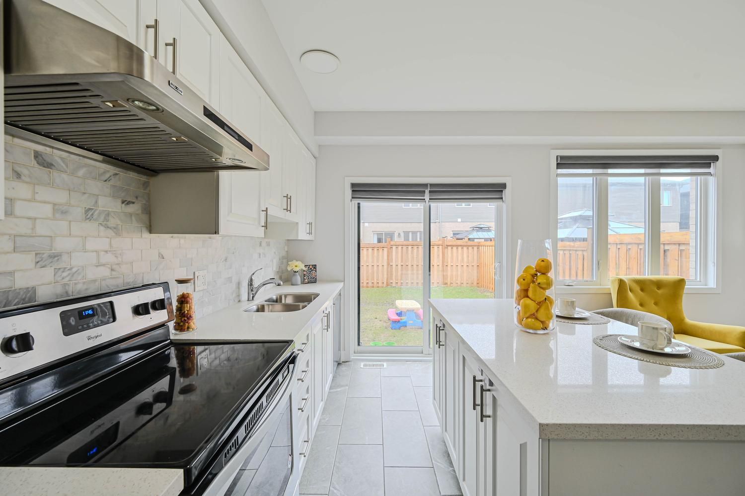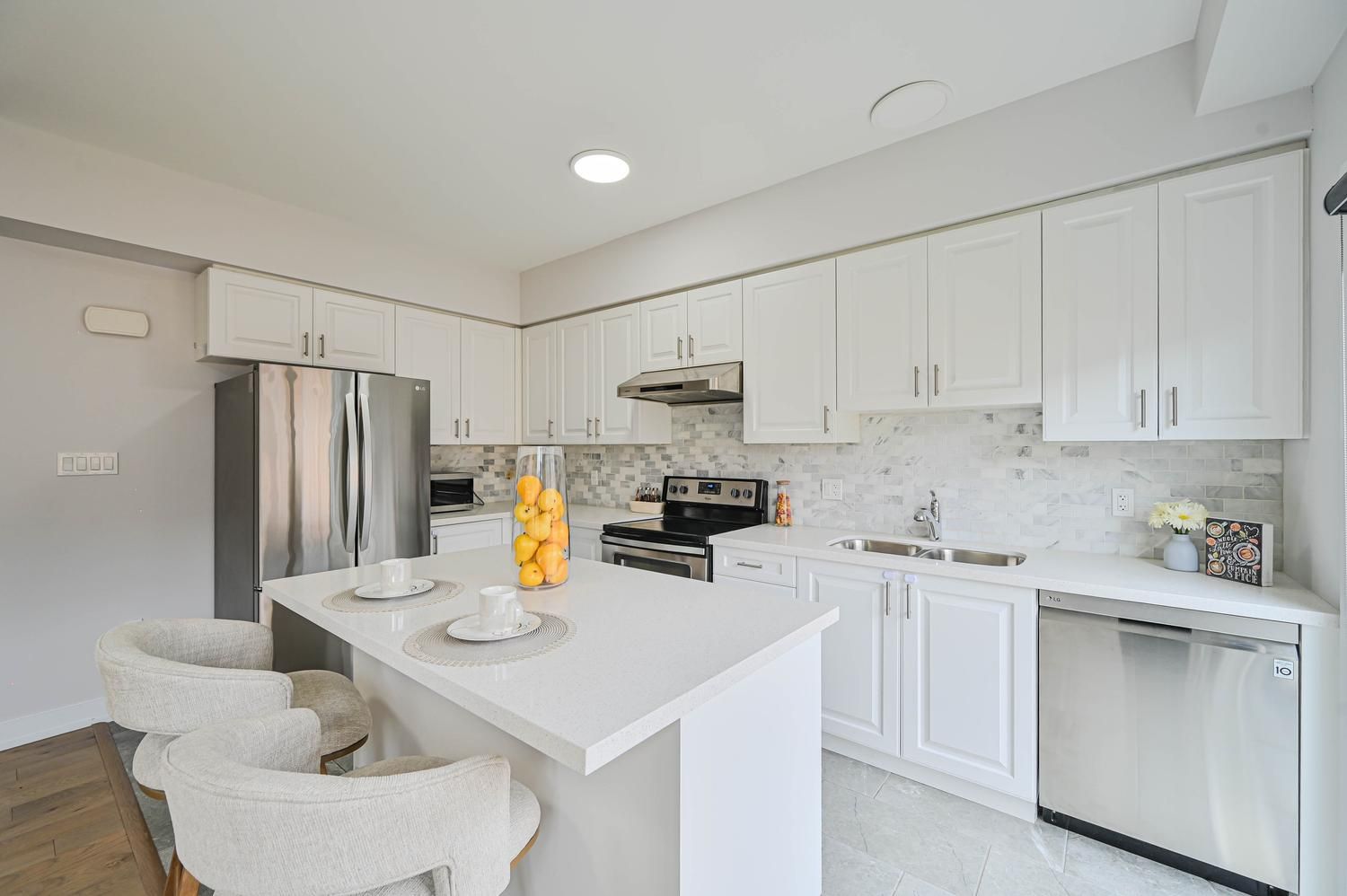 • Stylish kitchen featuring quartz countertops and stainless-steel appliances.