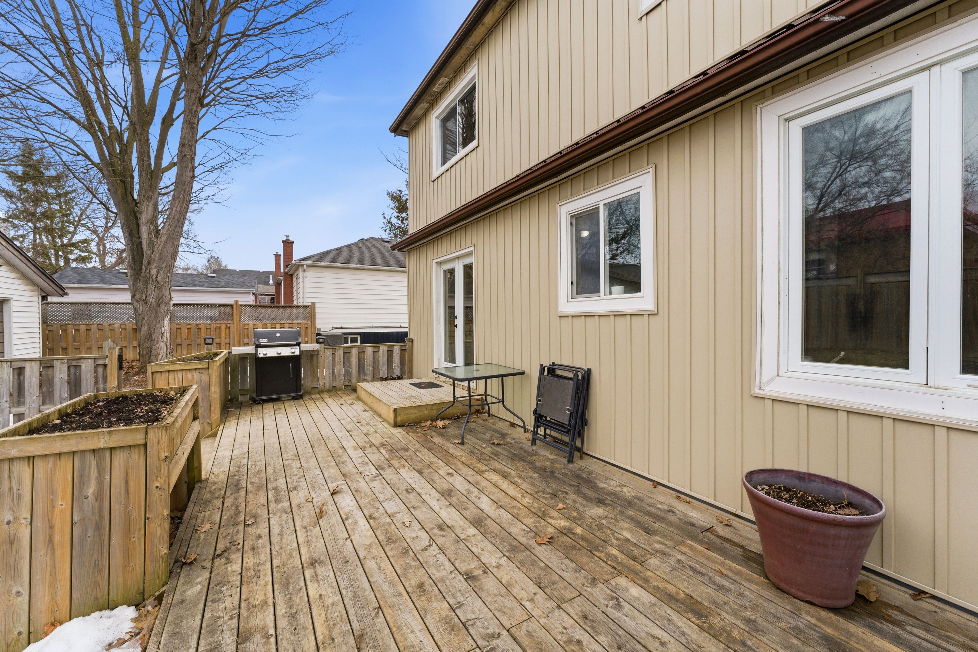 • Fully fenced backyard with a deck and planter boxes for outdoor fun.