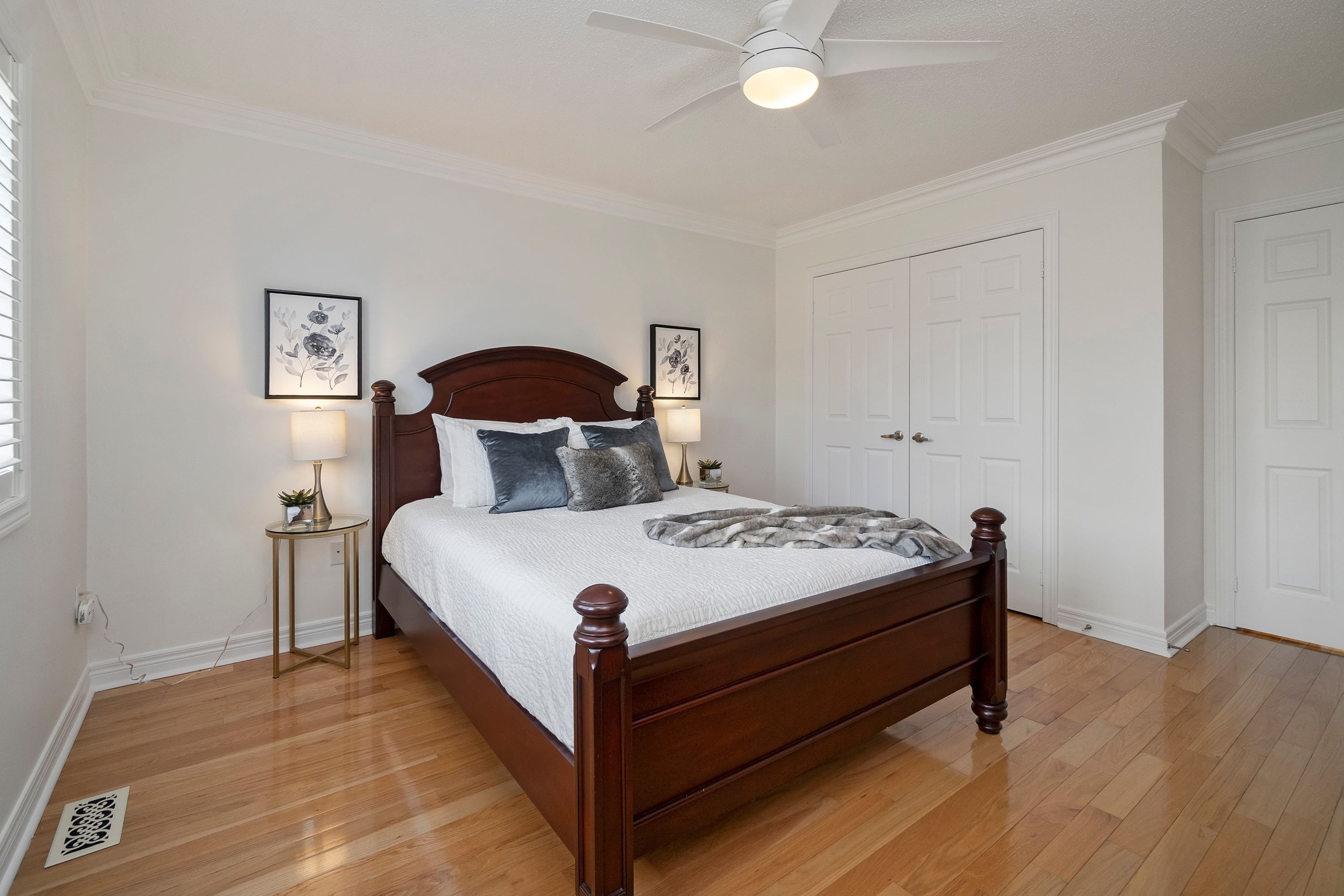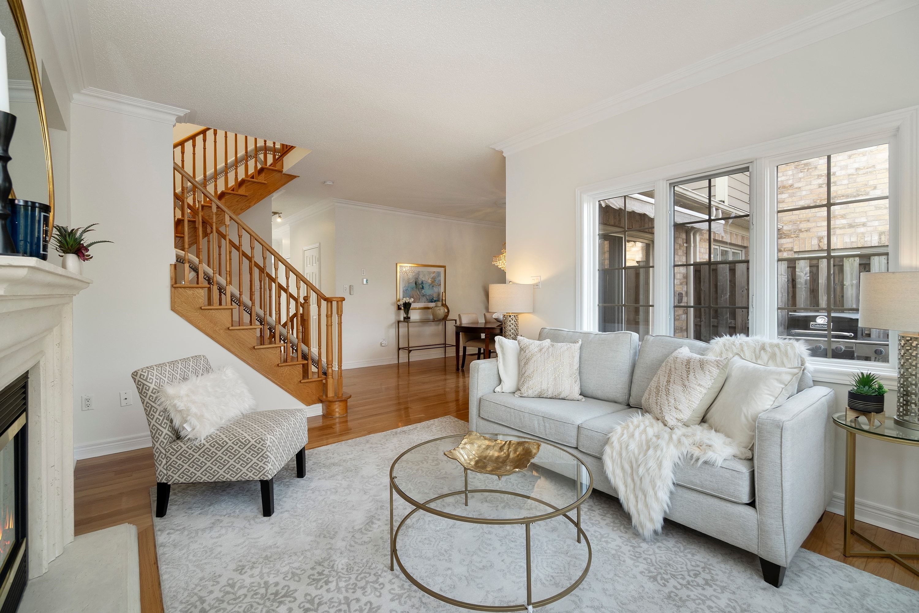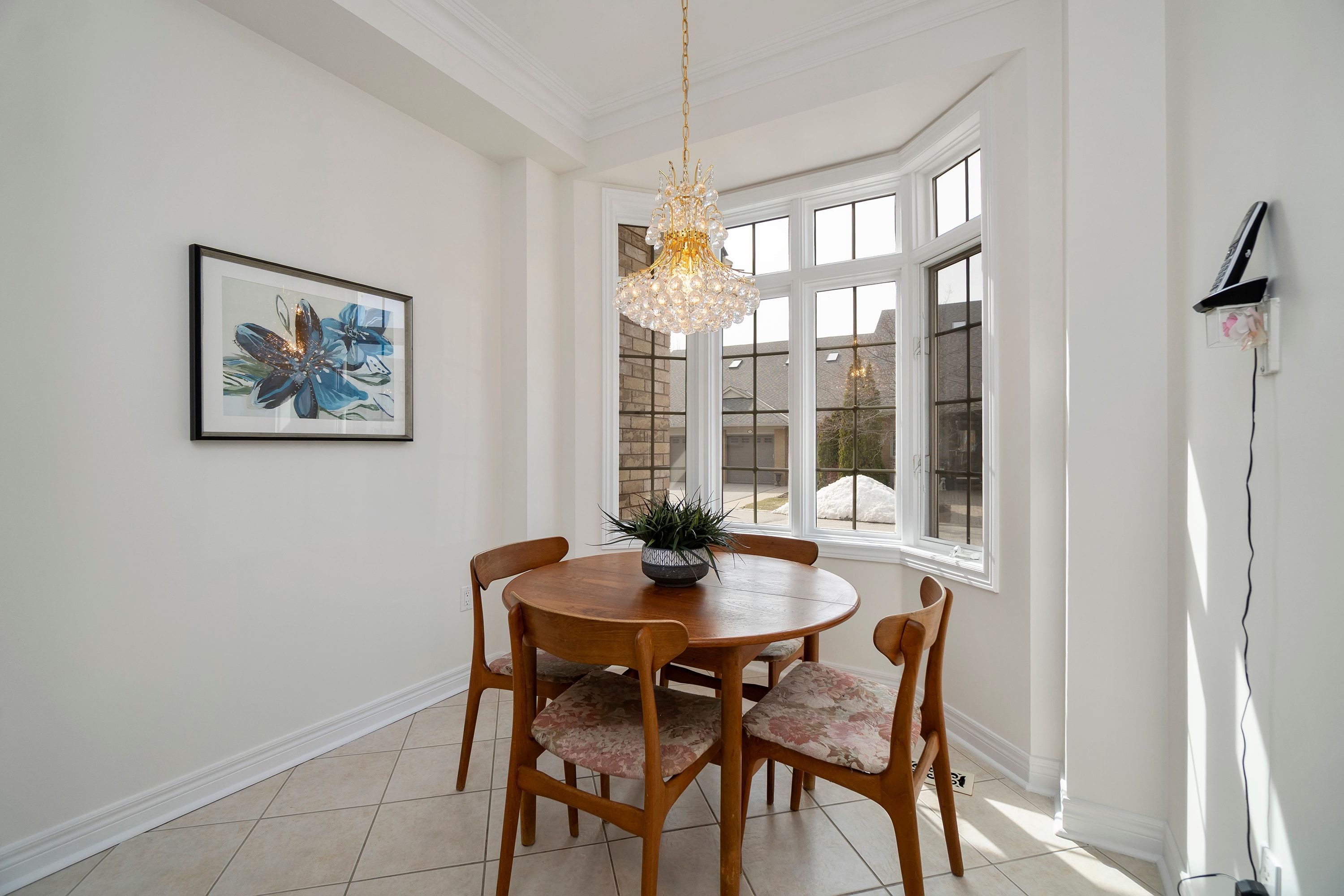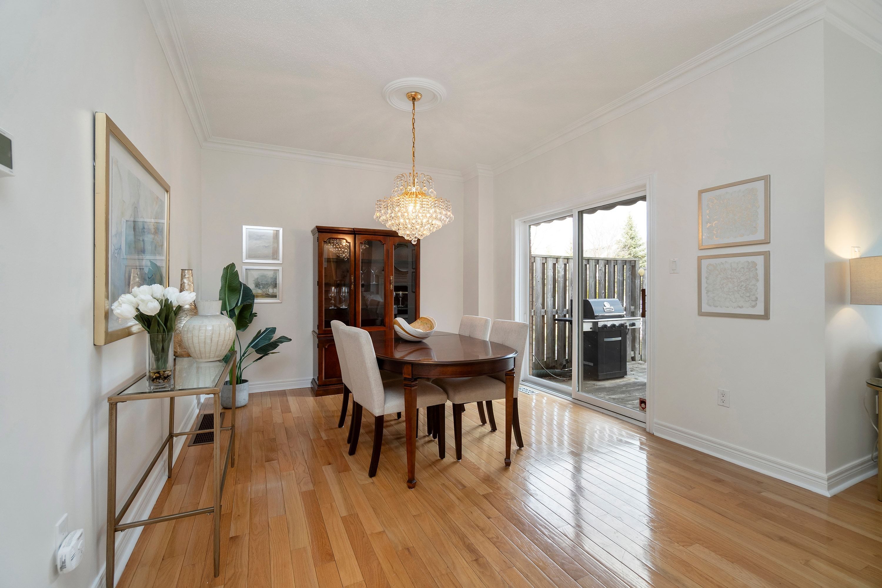 Carefree living, extra sunshine, and exceptional value - welcome to one of swan lake's best opportunities! This bright and spacious 1,624 sq ft two-storey executive townhome (plus finished basement) offers the easy, maintenance-free lifestyle swan lake is known for, while delivering outstanding value per square foot and a surprisingly private backyard. The welcoming foyer offers direct access to the garage and a convenient powder room, then opens to a generous eat-in kitchen with a built-in oven, a sleek backsplash, and a cheerful greenhouse breakfast area. The living and dining rooms flow beautifully for entertaining, featuring hardwood floors, crown mouldings, a cozy gas fireplace and a walk-out to the back deck overlooking peaceful green backyard views. Upstairs, the spacious primary suite feels like a private retreat with an oversized sitting area, walk-in closet and large ensuite with soaker tub and separate shower. The second bedroom overlooks the backyard and enjoys its own 3-piece bath. The finished basement adds valuable bonus space with a rec room, den, additional powder room and excellent storage. A standout feature of this phase of swan lake is the "almost fully fenced" private yard-rare within the community and perfect for relaxing outdoors, entertaining, or accommodating a small pet. Swan lake village is the gta's premier gated lifestyle community, where exterior maintenance, snow clearing to your door, and lawn and garden care are all handled for you. Maintenance fees include high-speed internet, cable tv, water, building insurance, 24-hour gatehouse security, exterior maintenance and full access to resort-style amenities including indoor and outdoor pools, gym, tennis, pickleball, bocce and a vibrant calendar of social events. Lock the door and travel with peace of mind-or stay home and enjoy the lifestyle!