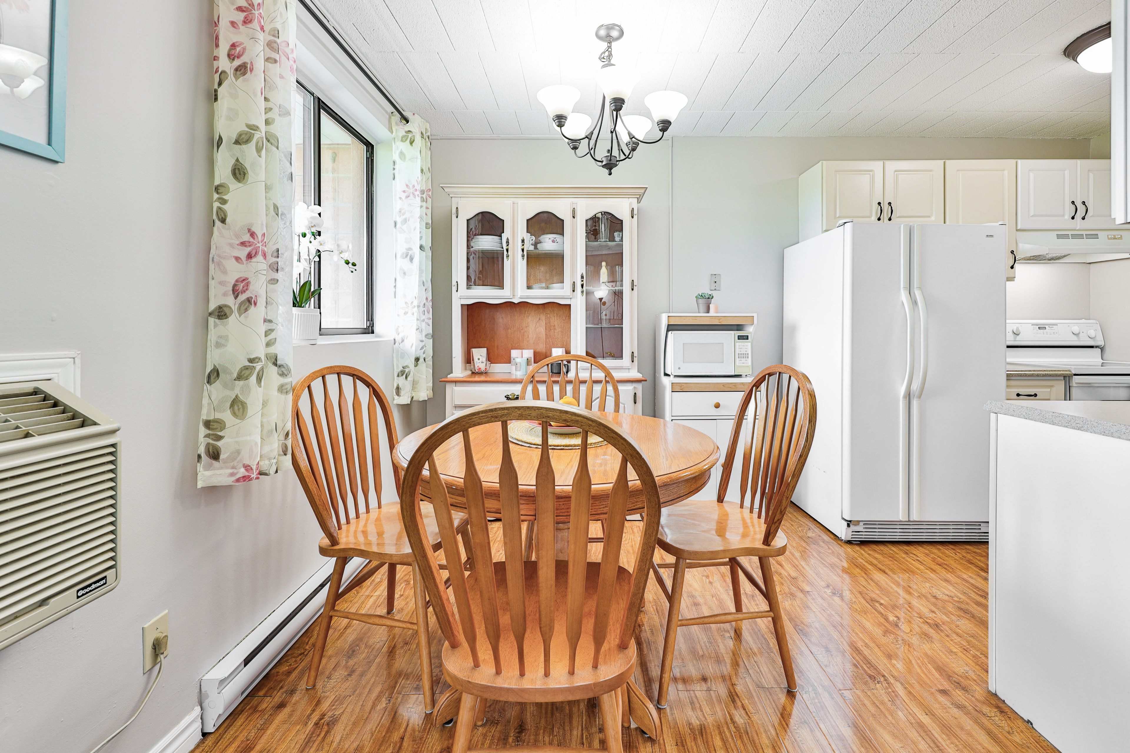 • Cozy dining area and tasteful galley kitchen with hardwood floors.