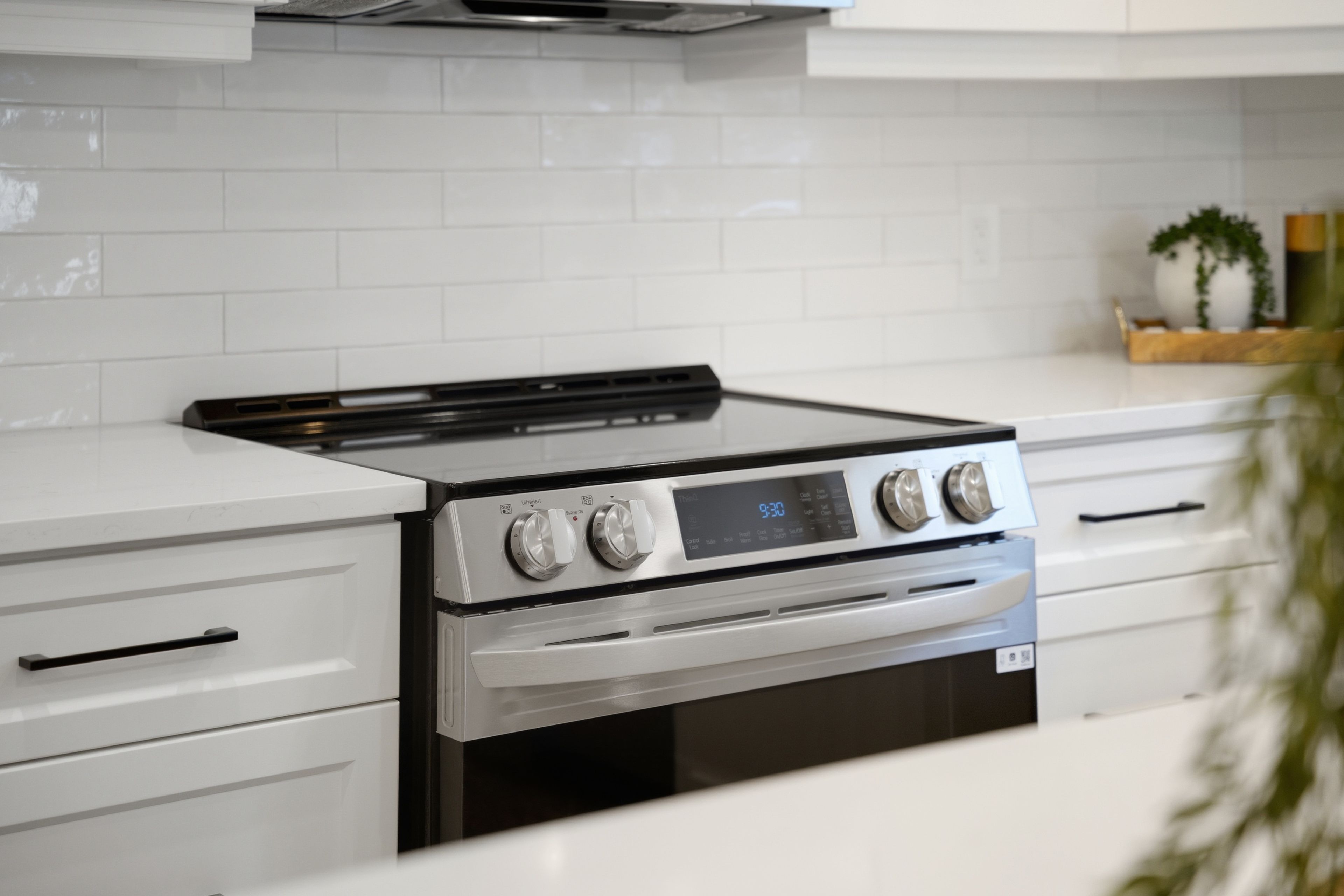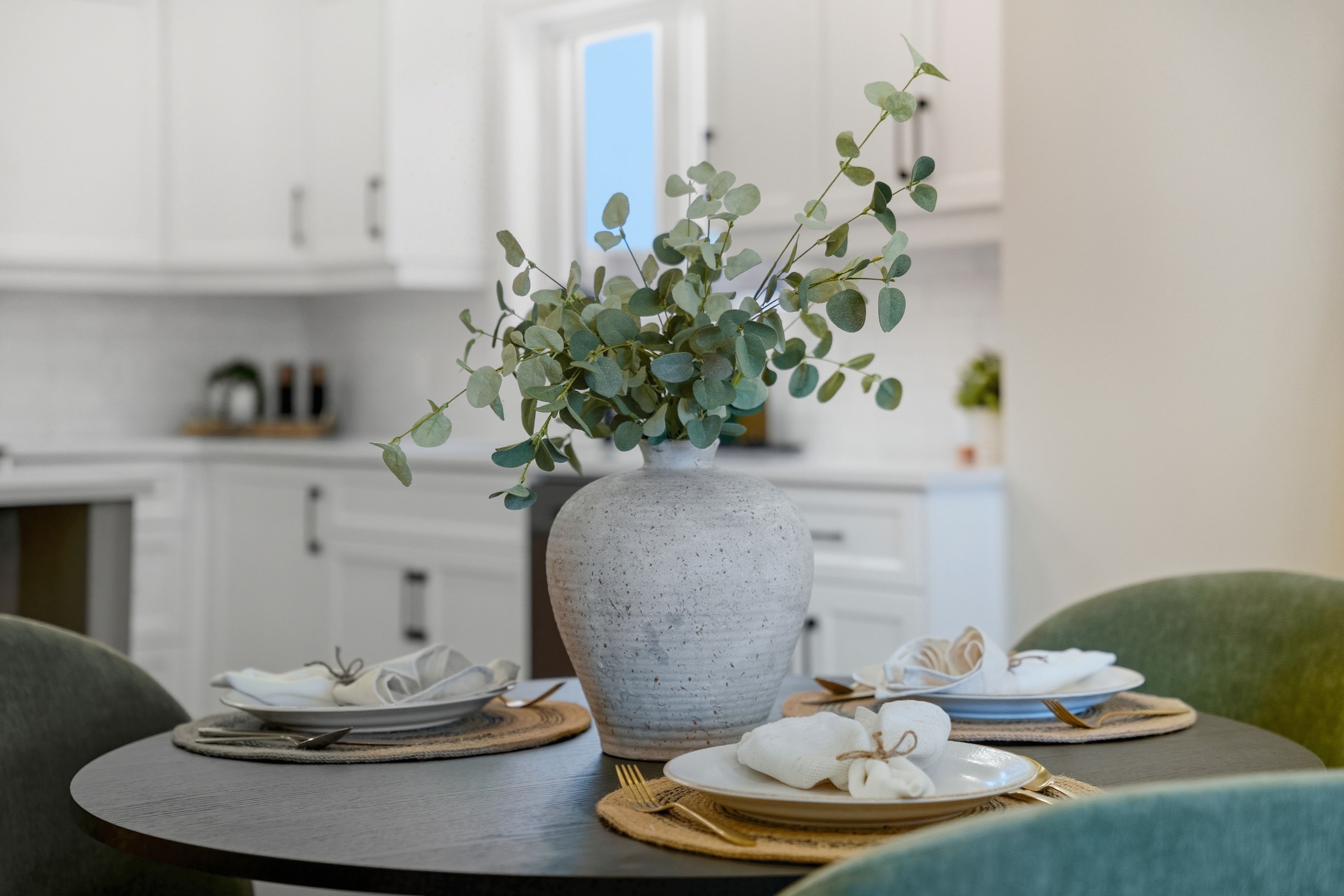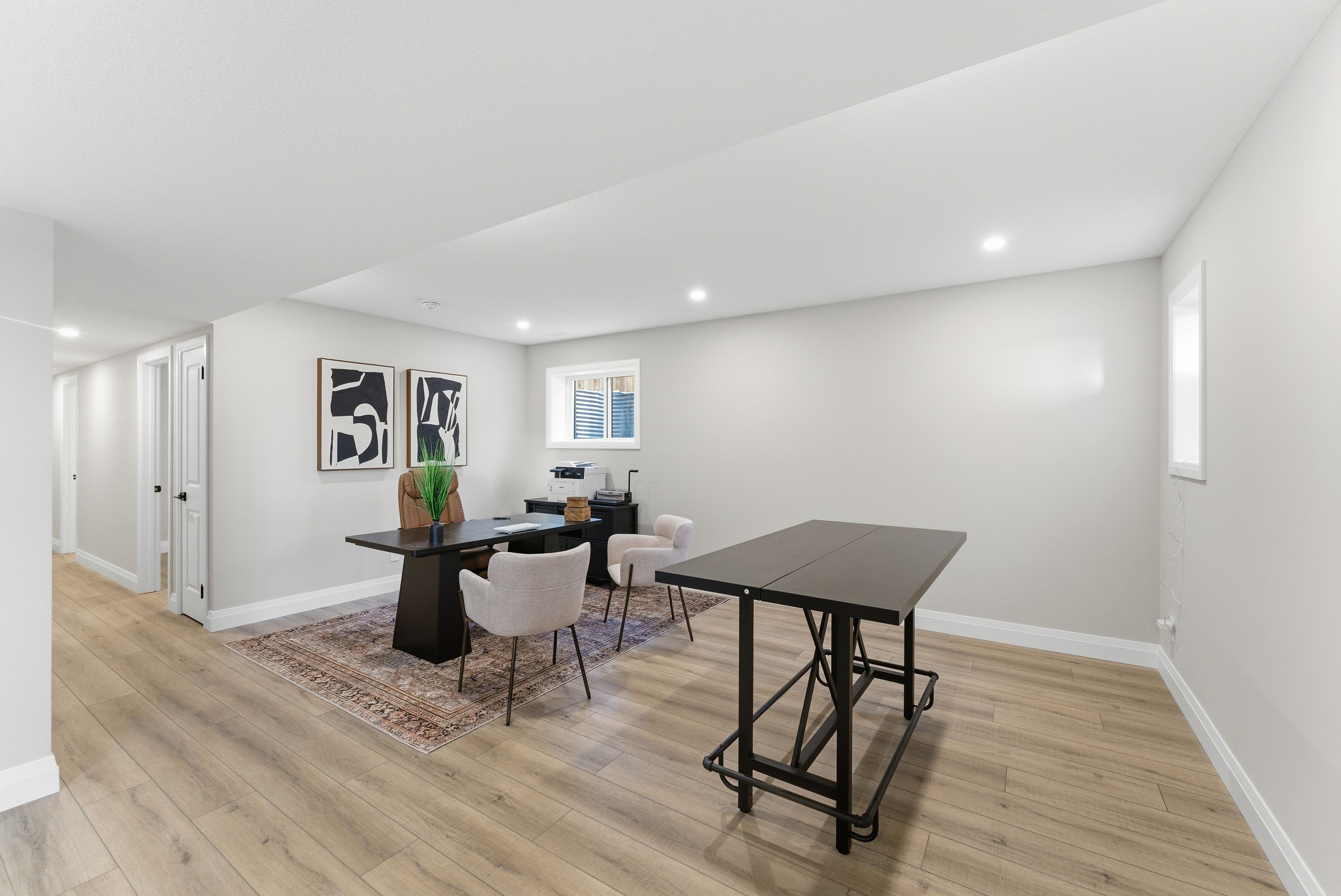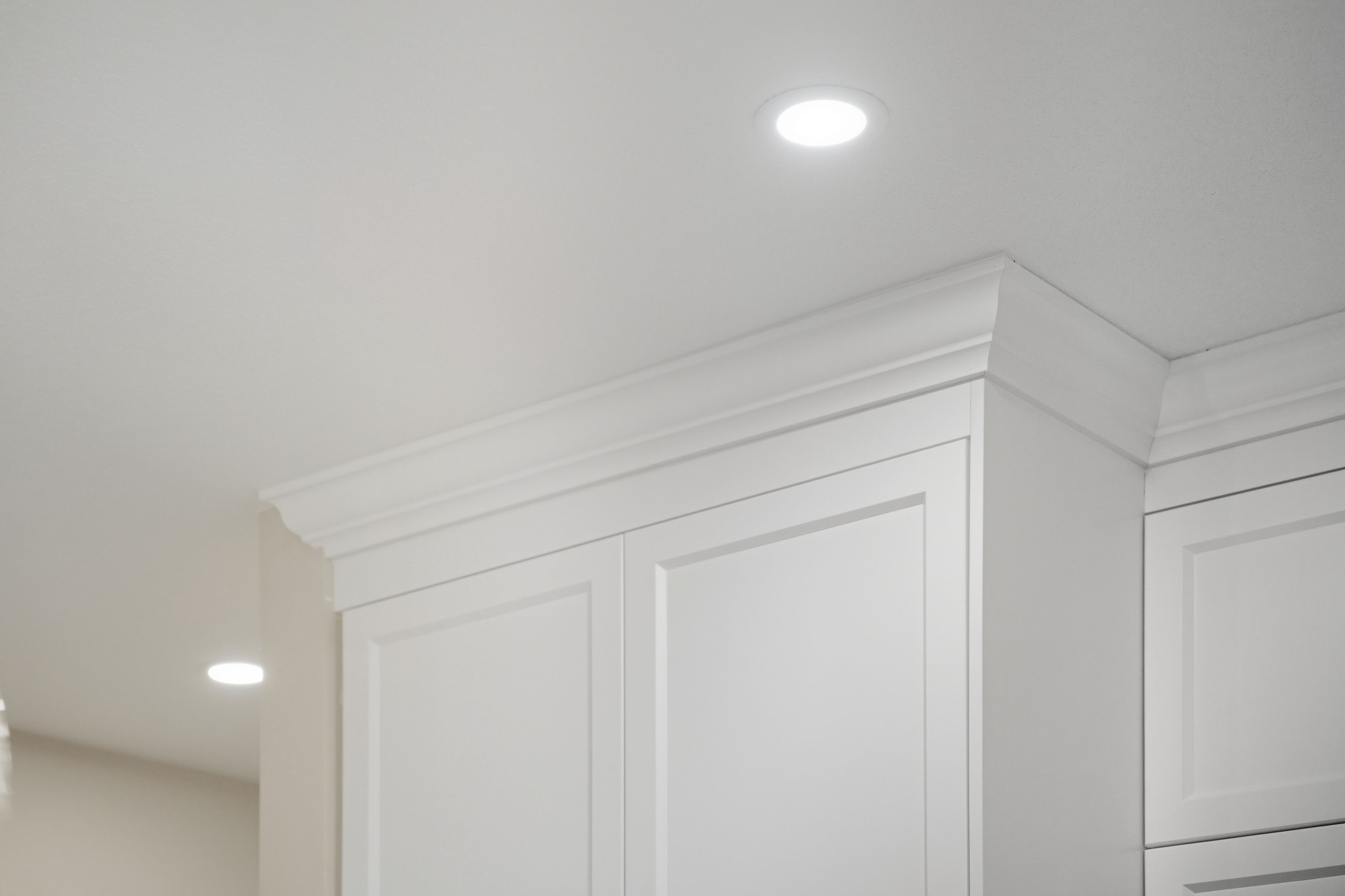 • Open-concept main floor features quartz countertops and custom cabinetry.