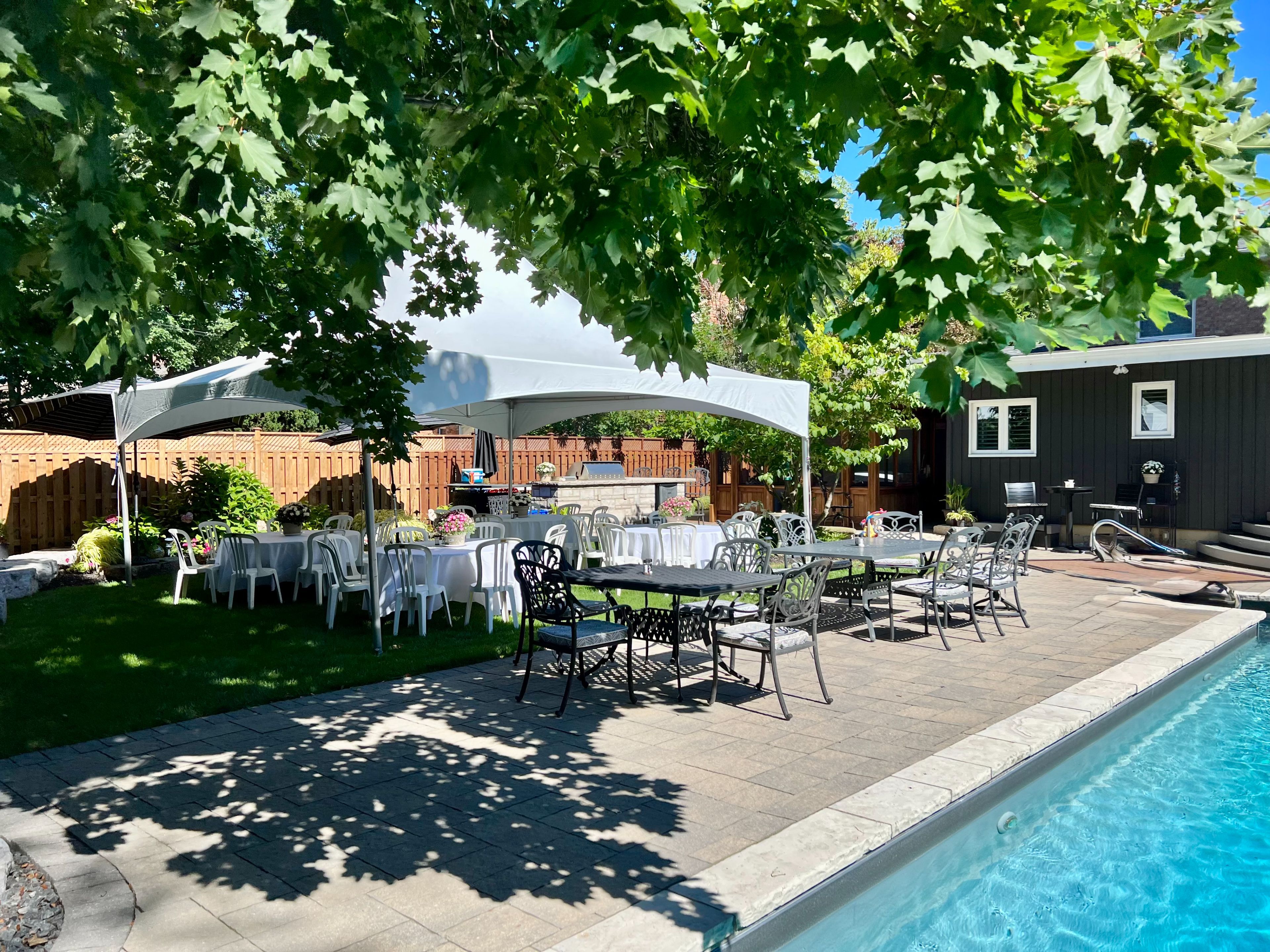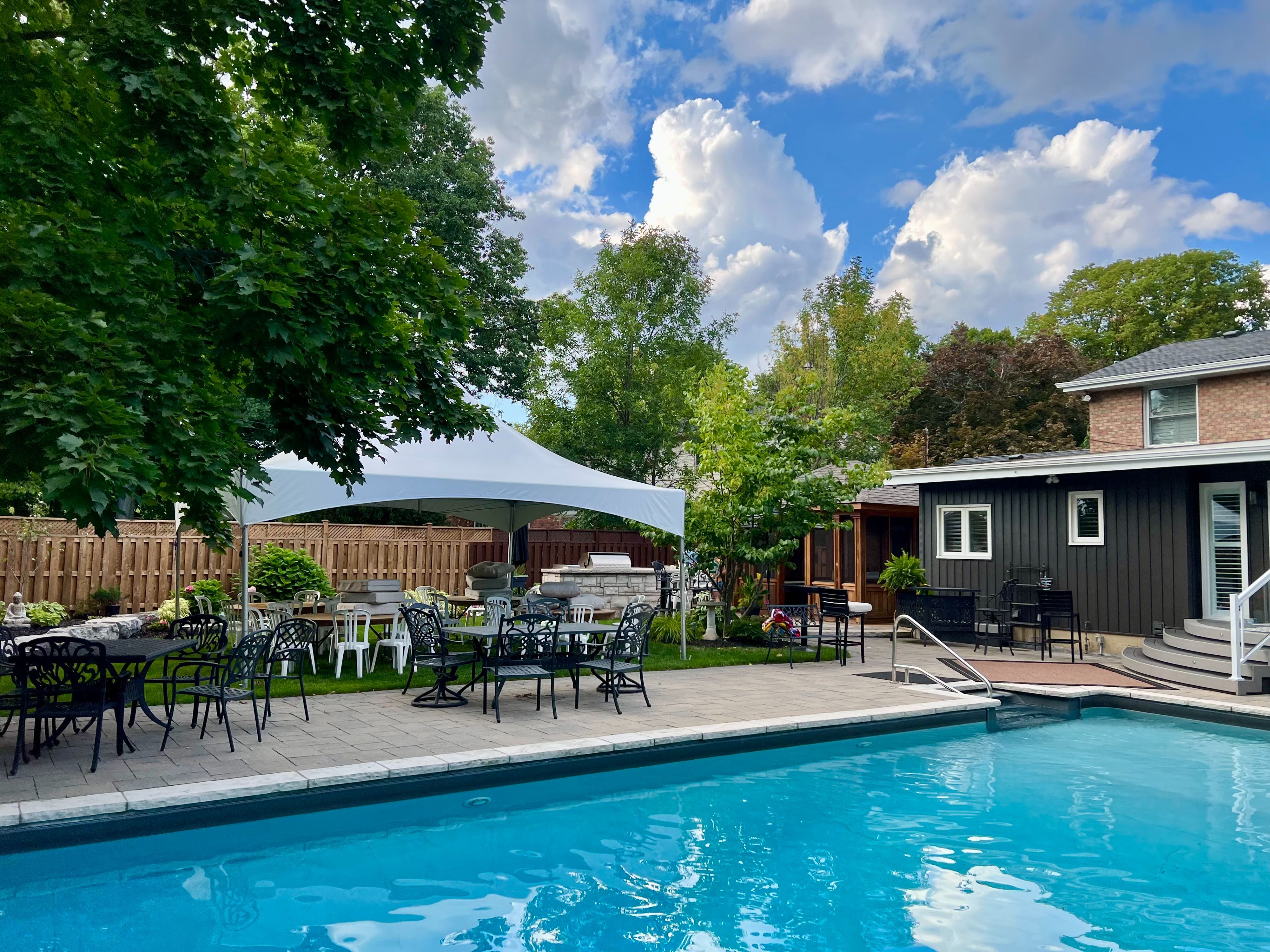 • Resort-style backyard features a heated inground pool and outdoor kitchen.