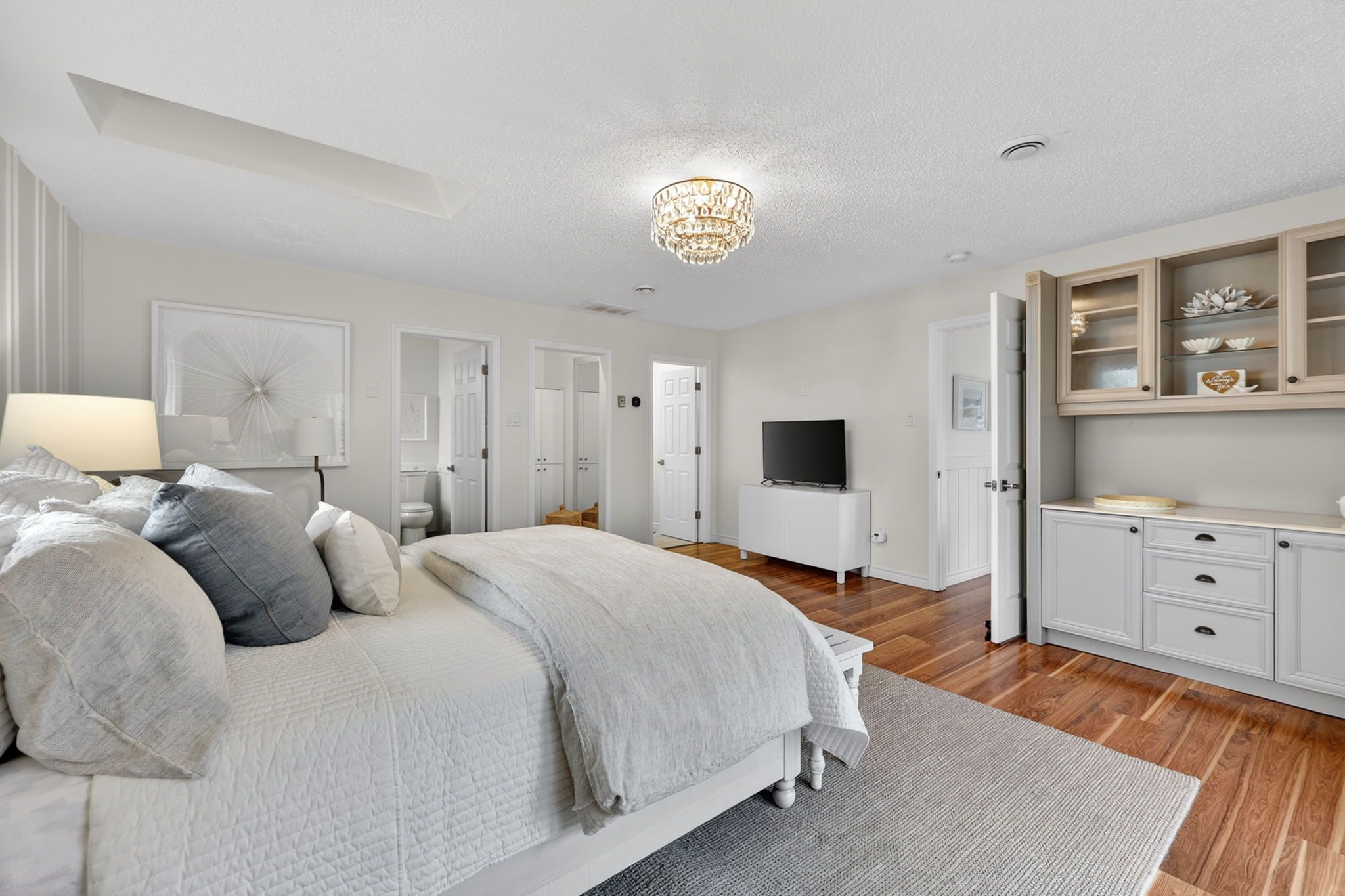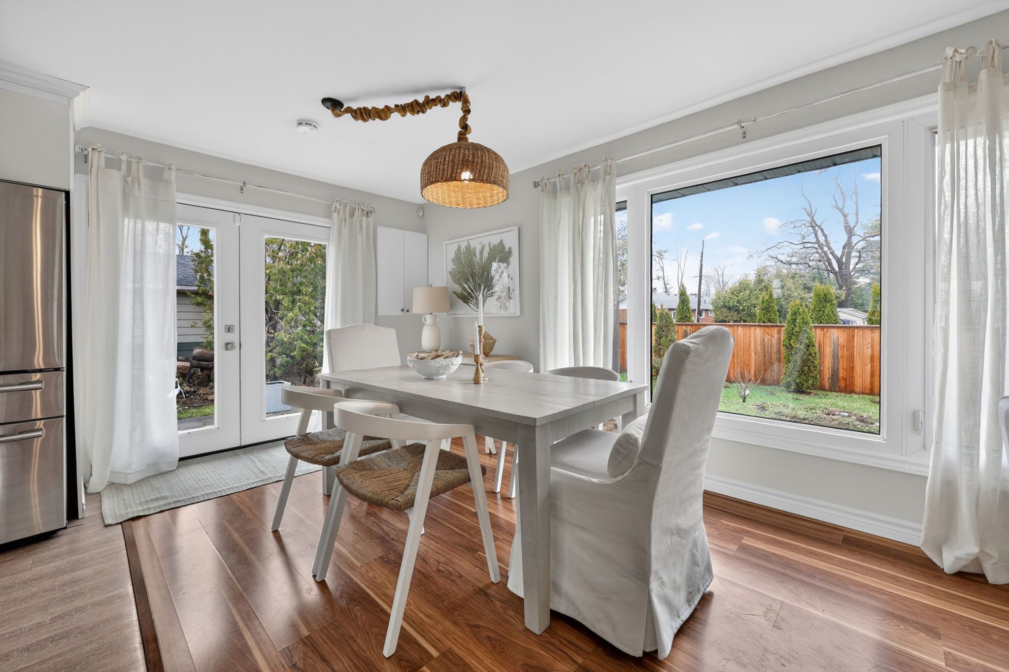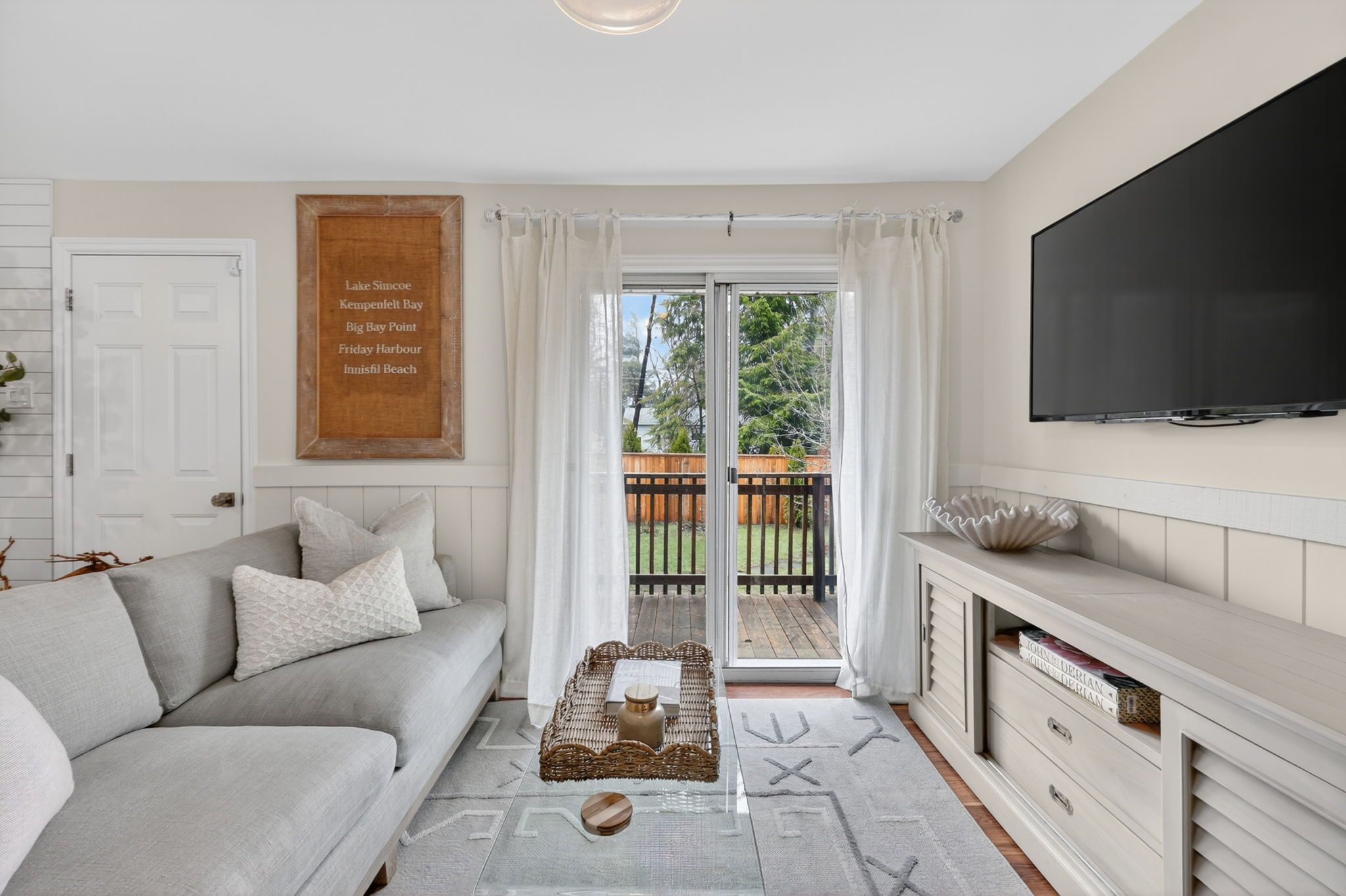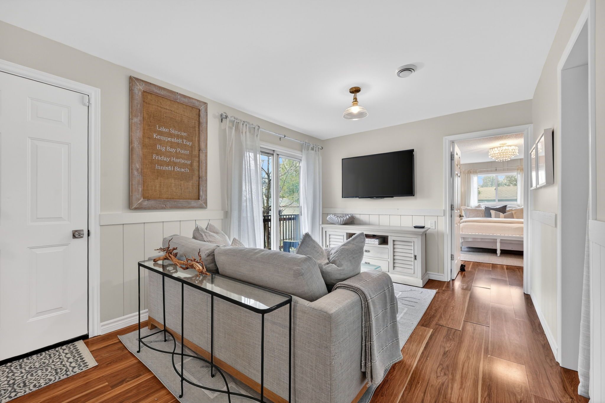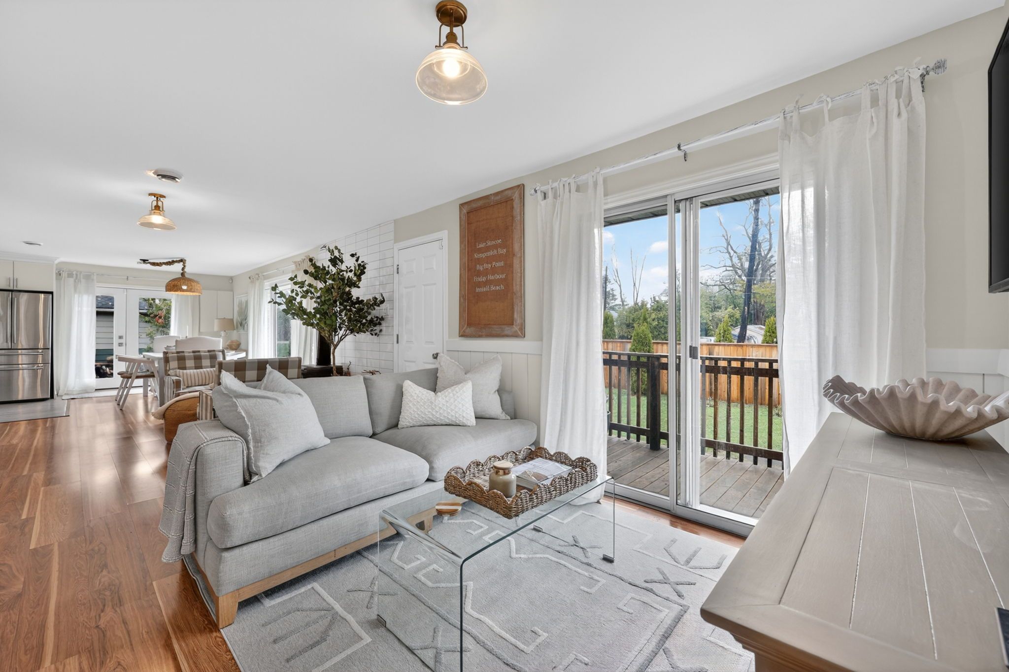 Welcome to an exceptional home in the prestigious big bay point community, ideally located directly across from the renowned friday harbour resort. This beautifully updated 3-bedroom, 2-bathroom bungalow offers a refined lifestyle where nature, leisure, and lakeside living seamlessly converge. Set on an impressive 88 x 142 ft lot, the property is designed for effortless indoor-outdoor living with front and rear decks create the perfect backdrop for elegant entertaining or peaceful moments of relaxation, all surrounded by tranquil, landscaped grounds. A dedicated fire pit area invites you to unwind under the stars, offering endless evenings with a glass of wine in a serene, private setting. Step through your backyard gate and enjoy a short stroll to exclusive deeded access to rockaway beach, where crystal-clear waters, boating, paddle boarding, and breathtaking sunset views become part of your everyday experience. Just moments from friday harbour's upscale dining, full-service marina, golf course, and year-round recreational amenities, this home embodies a lifestyle of convenience and distinction. Thoughtfully upgraded throughout, the residence features a new roof (2025), new furnace and air conditioning (2024), new french doors and professionally finished patio interlocking (2024), along with a water softener and stackable washer and dryer-ensuring modern comfort and peace of mind. A rare opportunity to experience elevated lakeside living in one of innisfil's most coveted enclaves.