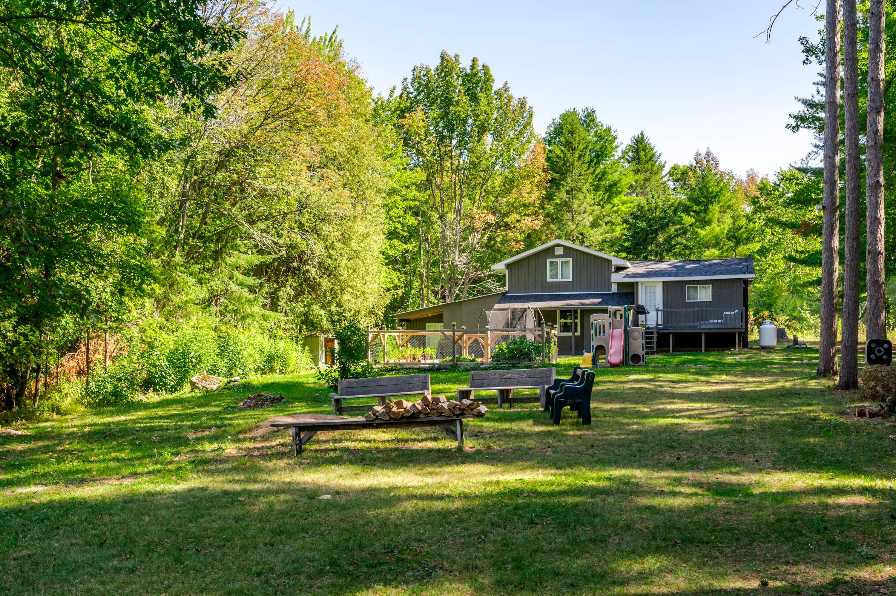 • Private retreat on a level 1-acre lot surrounded by nature.