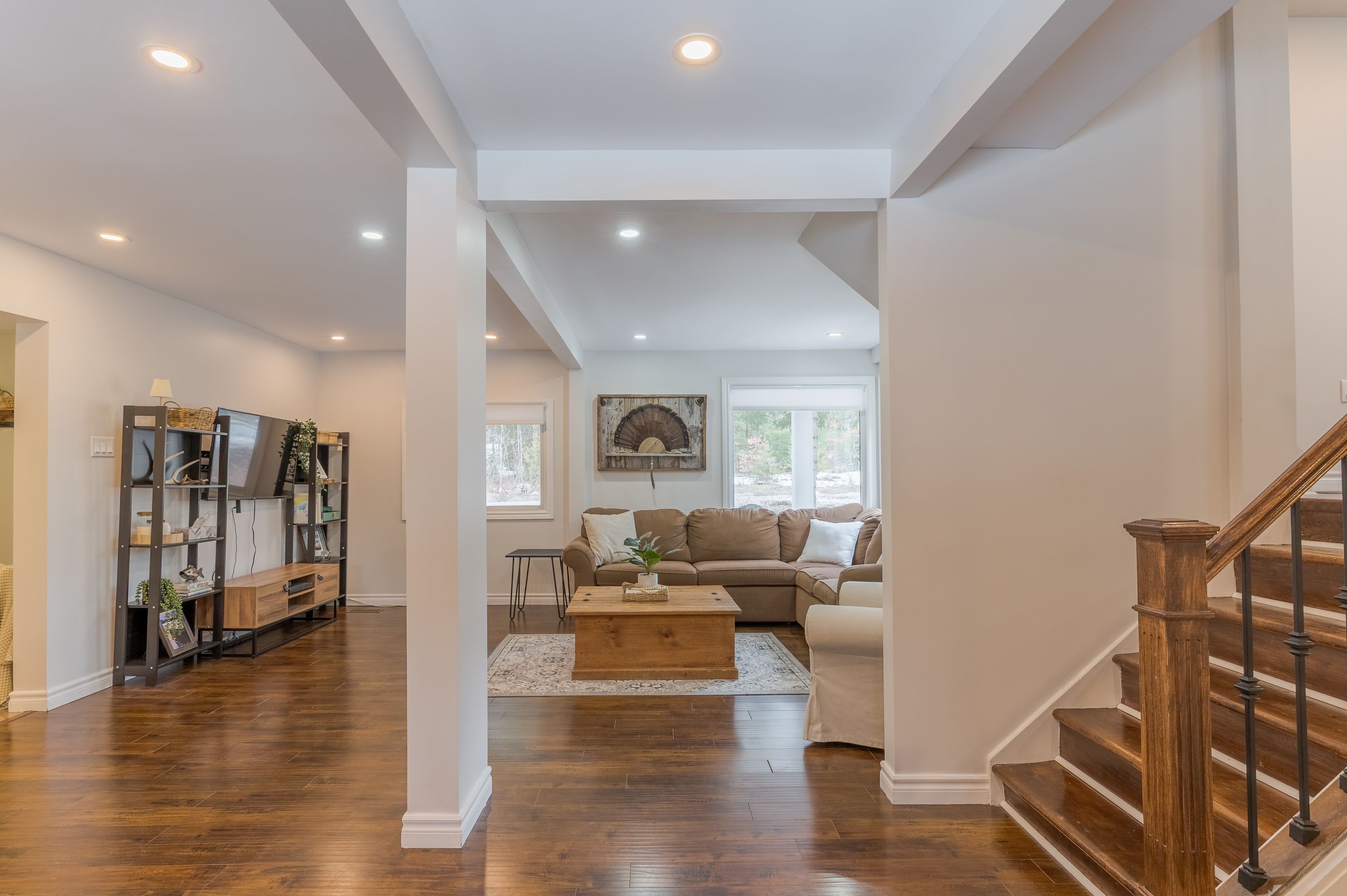 • Bright open-concept living, dining, and kitchen areas filled with natural light.