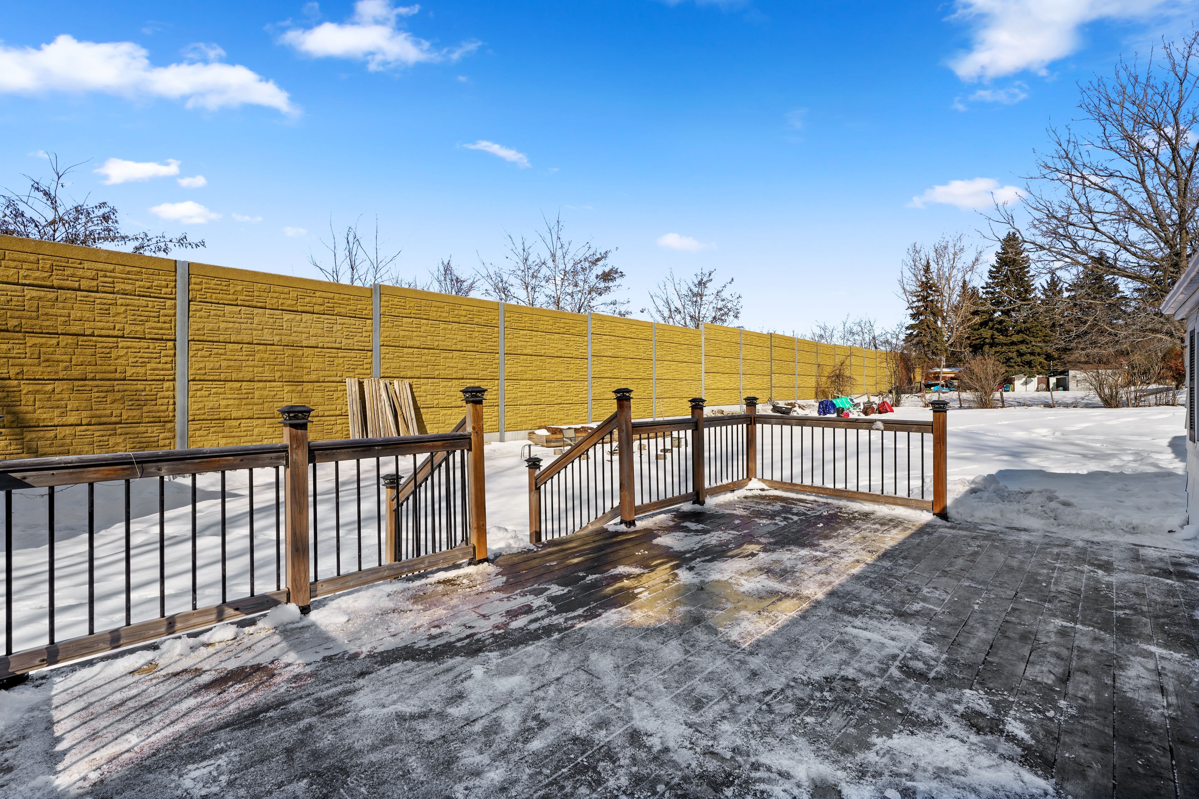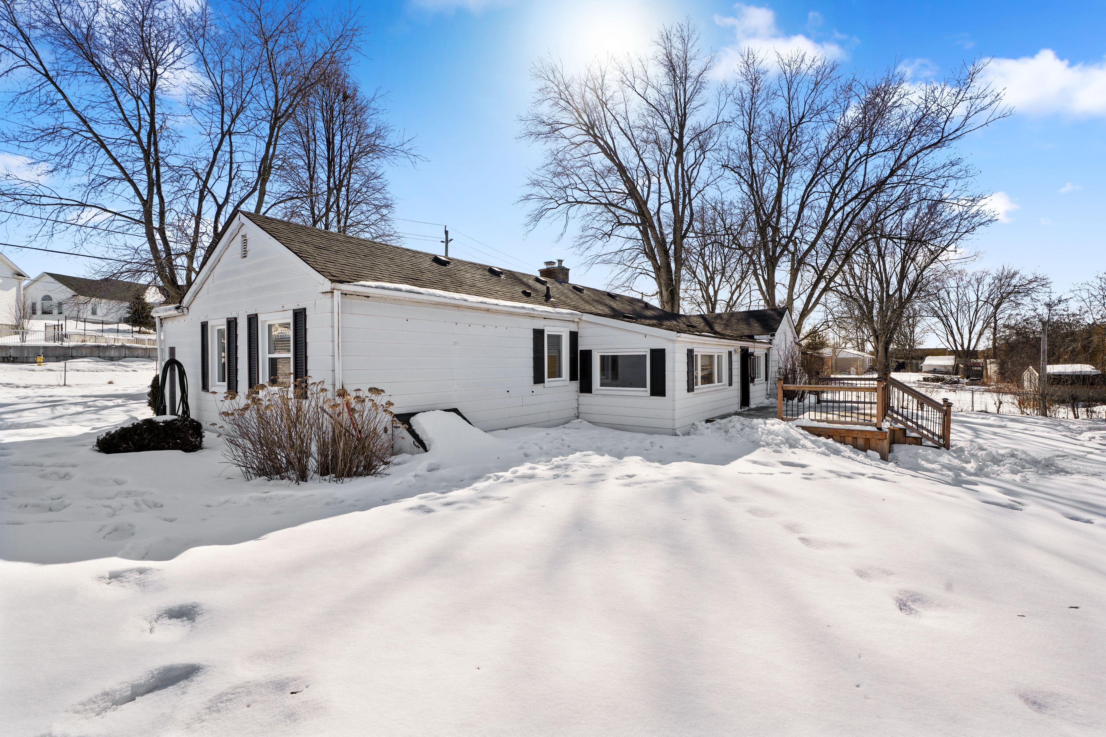 • Large back deck and patio, great for relaxing outdoors.