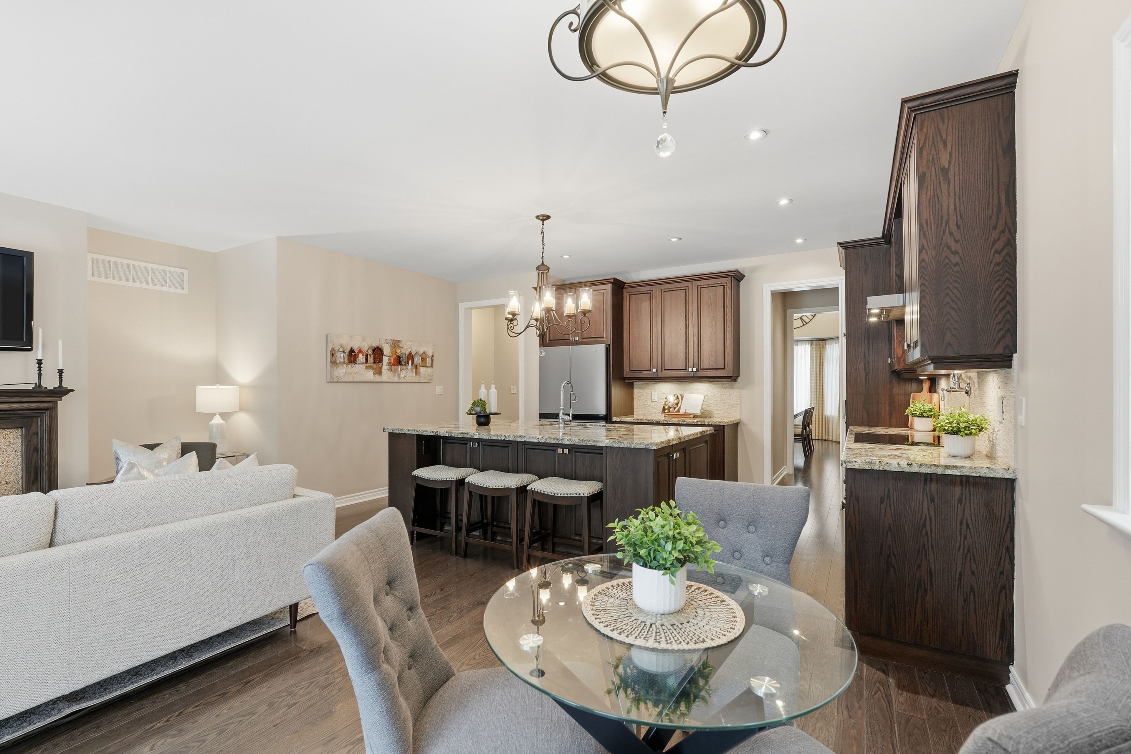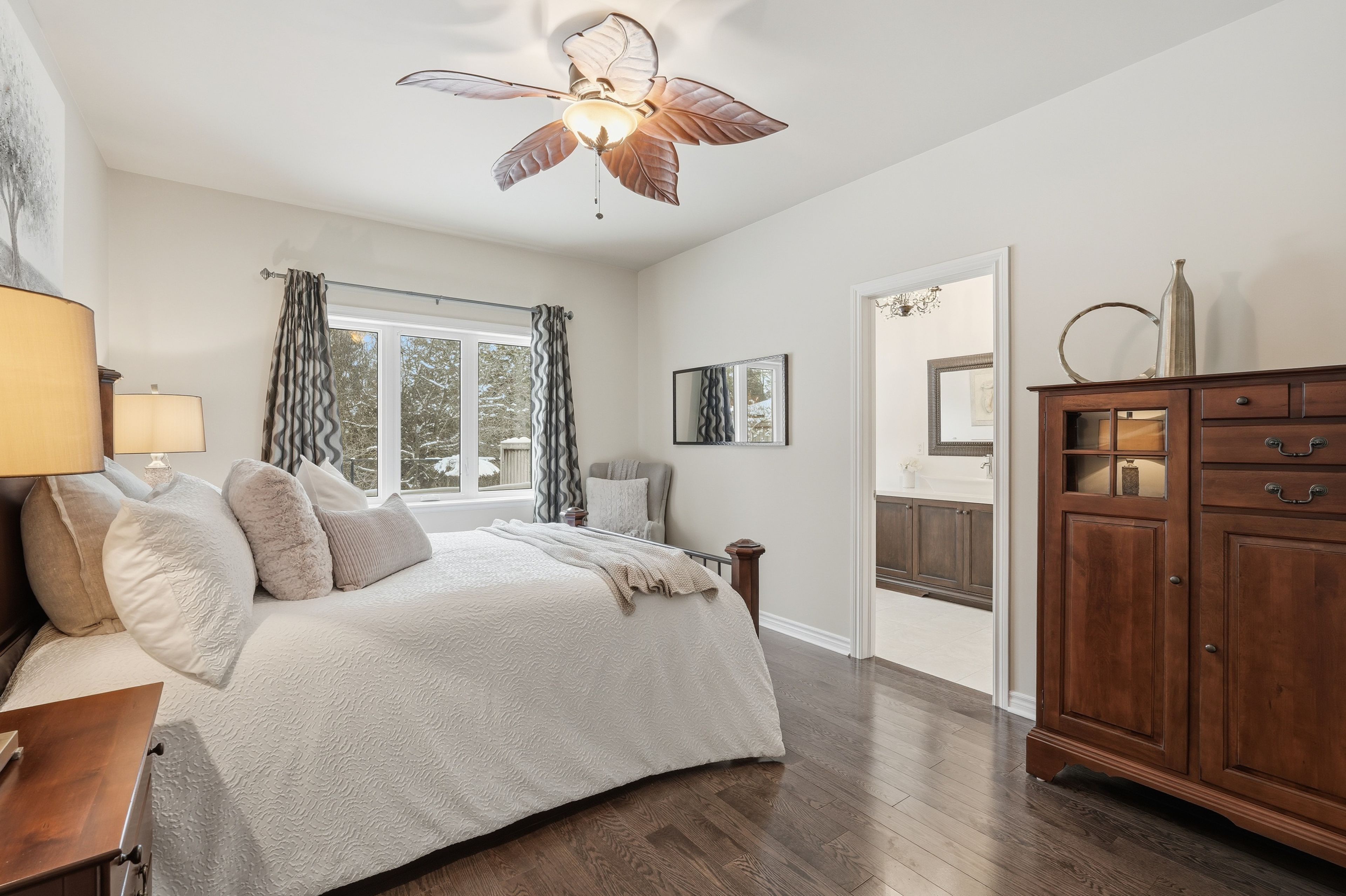 Welcome to 290 eaton street. A truly exceptional 4-bedroom bungaloft built by double oak homes, a builder renowned for quality craftsmanship, thoughtful design, and timeless finishes. Set on a beautiful ravine lot, this home offers the perfect blend of elevated living and everyday comfort in one of georgetown's most sought-after streets. From the moment you enter, you'll feel the attention to detail. Rich hardwood flooring, a spacious and functional layout, and a stunning dining room with soaring 13. 5' ceilings create an unforgettable first impression. Designed with entertaining in mind, a convenient servery connects the dining space to the kitchen, making hosting effortless. At the heart of the home, the bright eat-in kitchen offers solid wood cabinetry, upgraded stainless steel appliances, a statement granite island open to the living area, a pot filler, and picturesque views overlooking the peaceful green space where the occasional deer can be spotted. The living room is warm and inviting, featuring a gas fireplace and oversized windows that frame the natural backdrop, the kind of setting that feels private and serene, while still being minutes to everything you need. One of the most desirable features of this home is the main-floor living, making it ideal for families, downsizers, or multi-generational living. The main floor offers a spacious primary bedroom with ensuite, plus a second bedroom perfect for guests, kids, or a home office. Upstairs, you'll find two additional generously sized bedrooms and a 4-piece bath, completing the ideal bungaloft layout. Thoughtfully designed with exceptional storage, smart flow, and unmistakable quality throughout, 290 eaton street is a rare opportunity to enjoy luxury, comfort, and nature in one of georgetown's best locations. Steps to trails, shopping, and everyday amenities, this home truly checks every box.