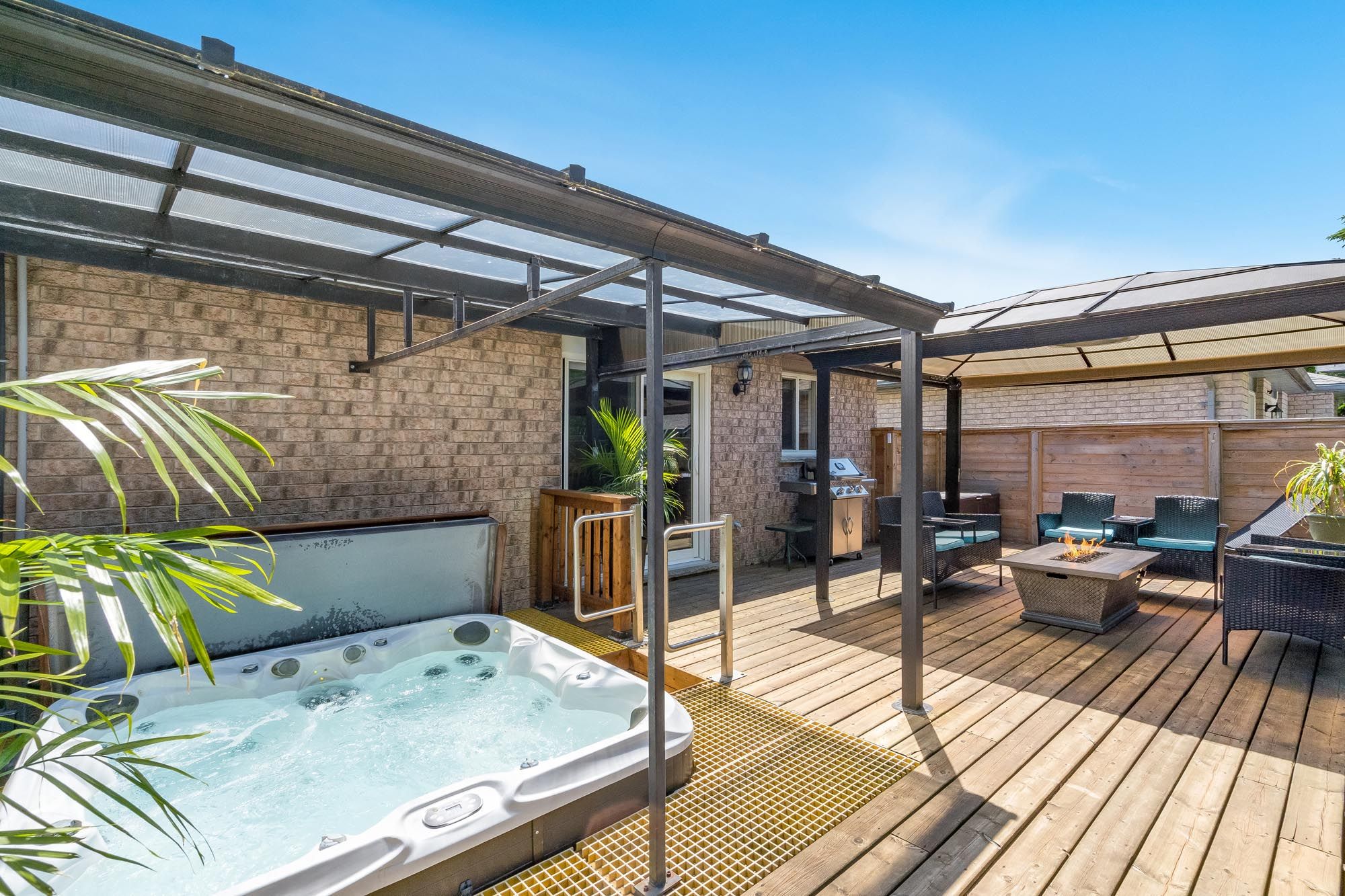 Top 5 reasons you will love this home: 1) beautifully landscaped and complete with an irrigation system, this home boasts a spacious back deck featuring a gazebo with a gas fire table, a sunken hot tub under an awning, and stylish privacy fencing, all backing onto a tranquil forest backdrop 2) enjoy a large eat-in kitchen with a walkout to the deck, perfect for indoor-outdoor living, along with a grand living room filled with natural light from oversized windows and a primary bedroom presenting a convenient semi-ensuite 3) the basement impresses with a generous games or recreation area, an additional bedroom or office space, a full bathroom, and a finished laundry room, adding both comfort and flexibility 4) benefit from an extra-wide single-car garage that offers plenty of room for storage or hobbies, with the convenience of direct access into the home 5) meticulously maintained and move-in ready, this property truly shines from top-to-bottom, prepared for you to call home. 1,121 above grade sq. Ft plus a finished basement.