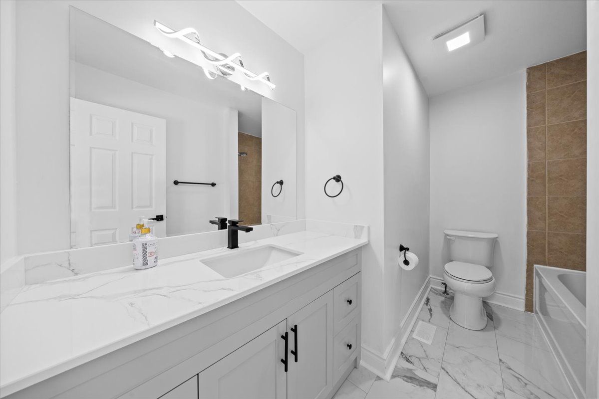 • Stylish kitchen with quartz countertops and new stainless steel appliances.