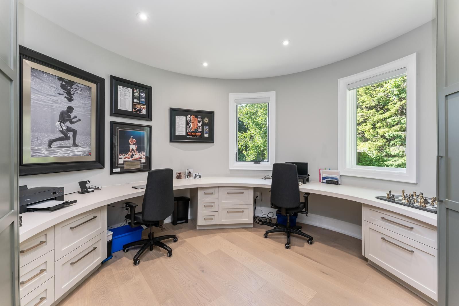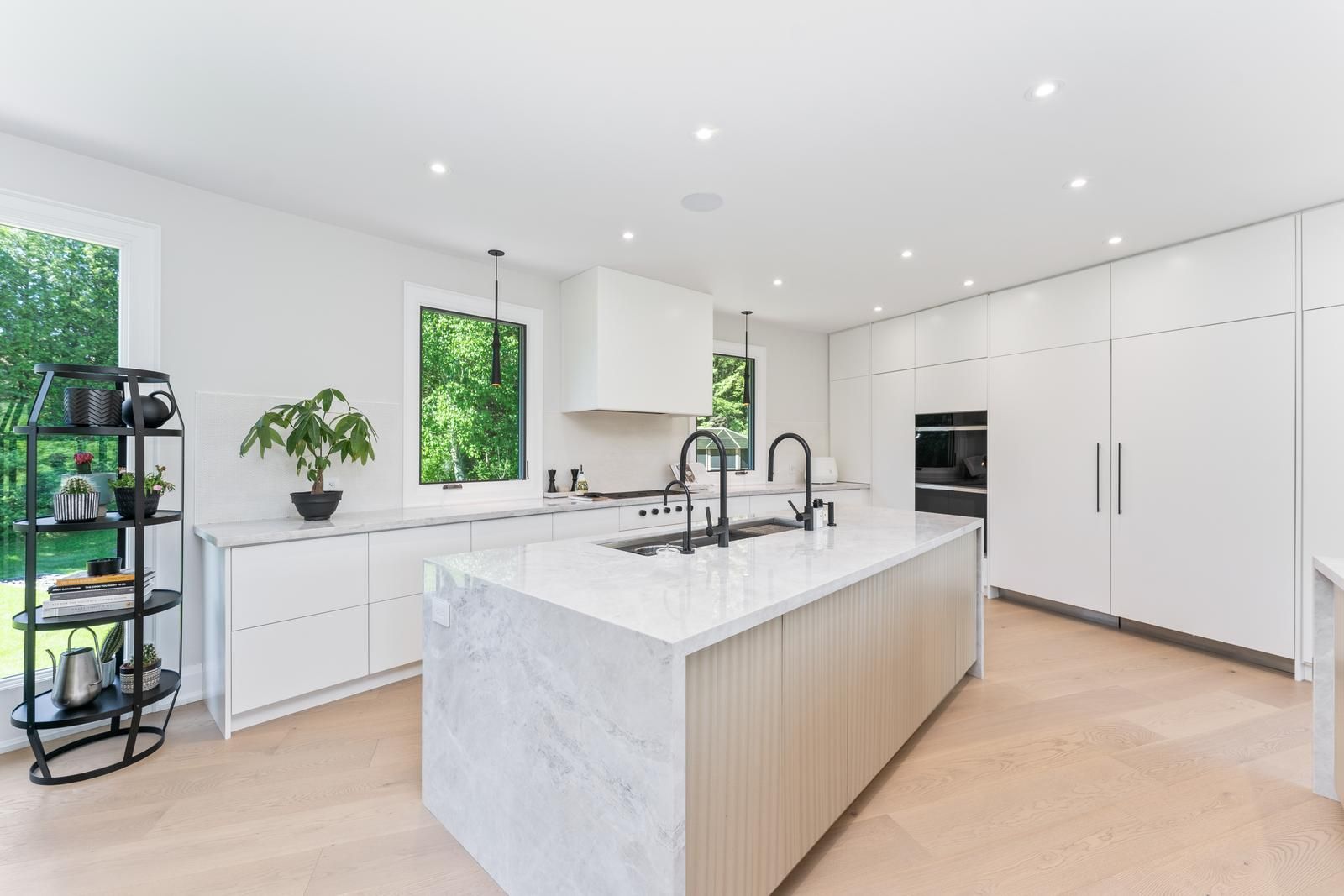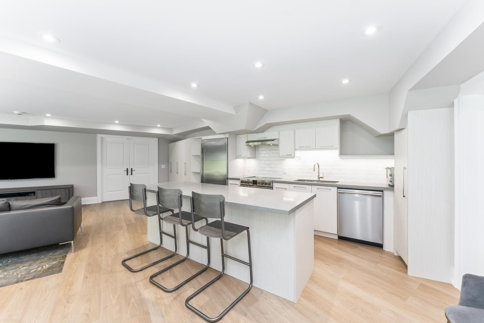 • Features modern amenities like sauna, steam room, and two kitchens.