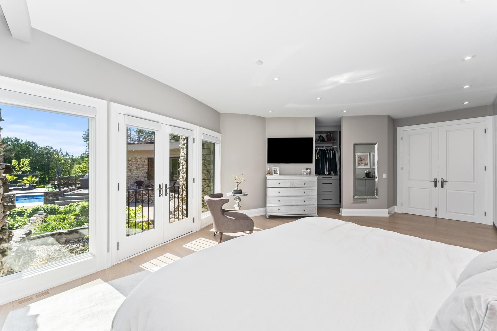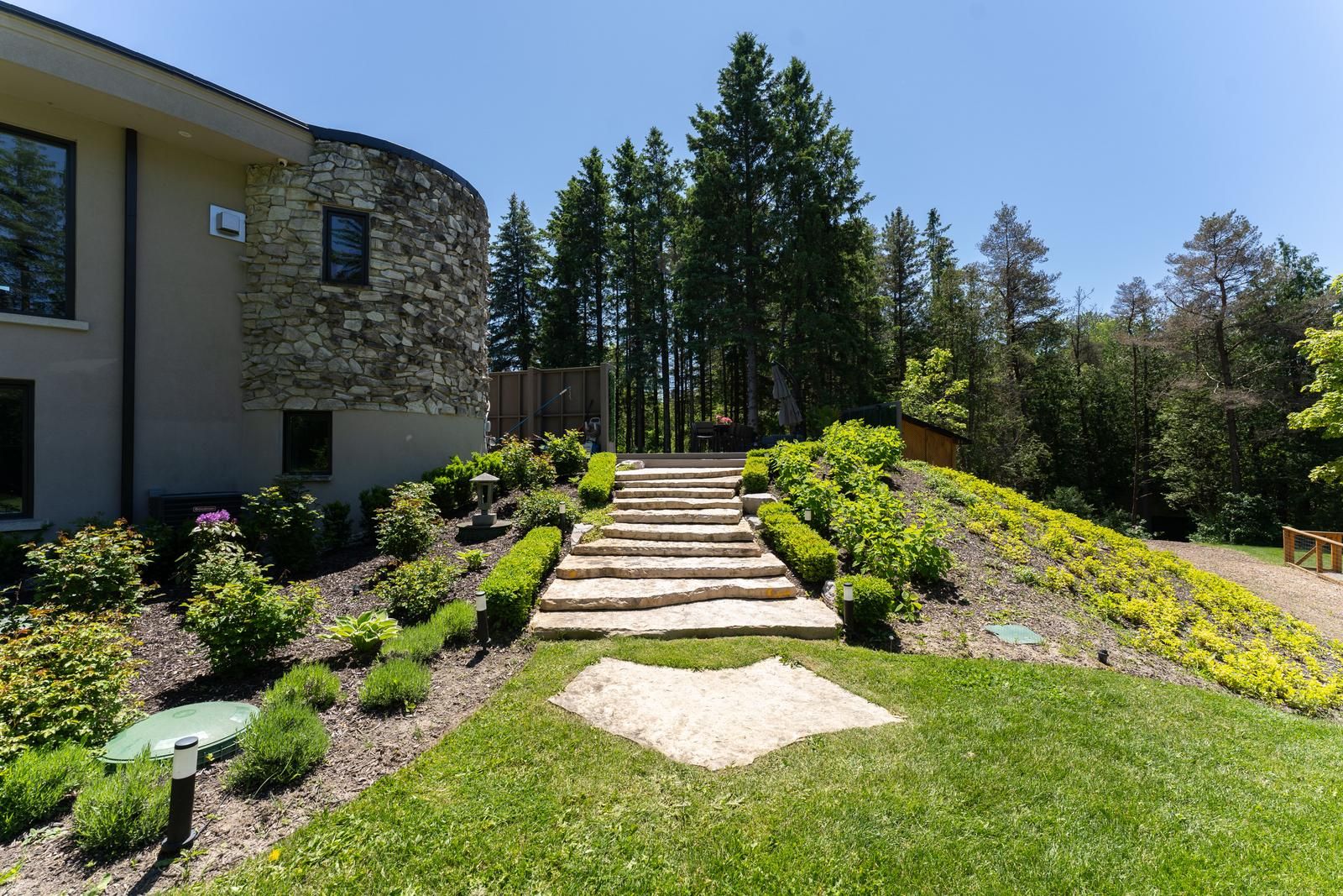 Welcome to your very own private oasis in the trees. This uniquely designed bungalow is nestled perfectly at the top of a hill surrounded by just under 4 acres of your own personal forest. The grounds of this property are professionally landscaped & manicured to maintain a fairy tale like setting where you can enjoy your own personal pond, tree lined driveway, walking path in the forest, out door concrete pool, pool deck with outdoor bathroom, outdoor shower, & out door kitchen, jaw dropping vegetable garden & fruit trees, detached garage garden shed and much much more. The interior of this home is recently renovated entirely and tastefully finished by an interior designer. Approx 7000 sqft of living space comes equipped with 3+1 bedrooms, 6 bathrooms total, 2 full kitchens, a walk out basement, indoor sauna, steam room, & much more. A must see!