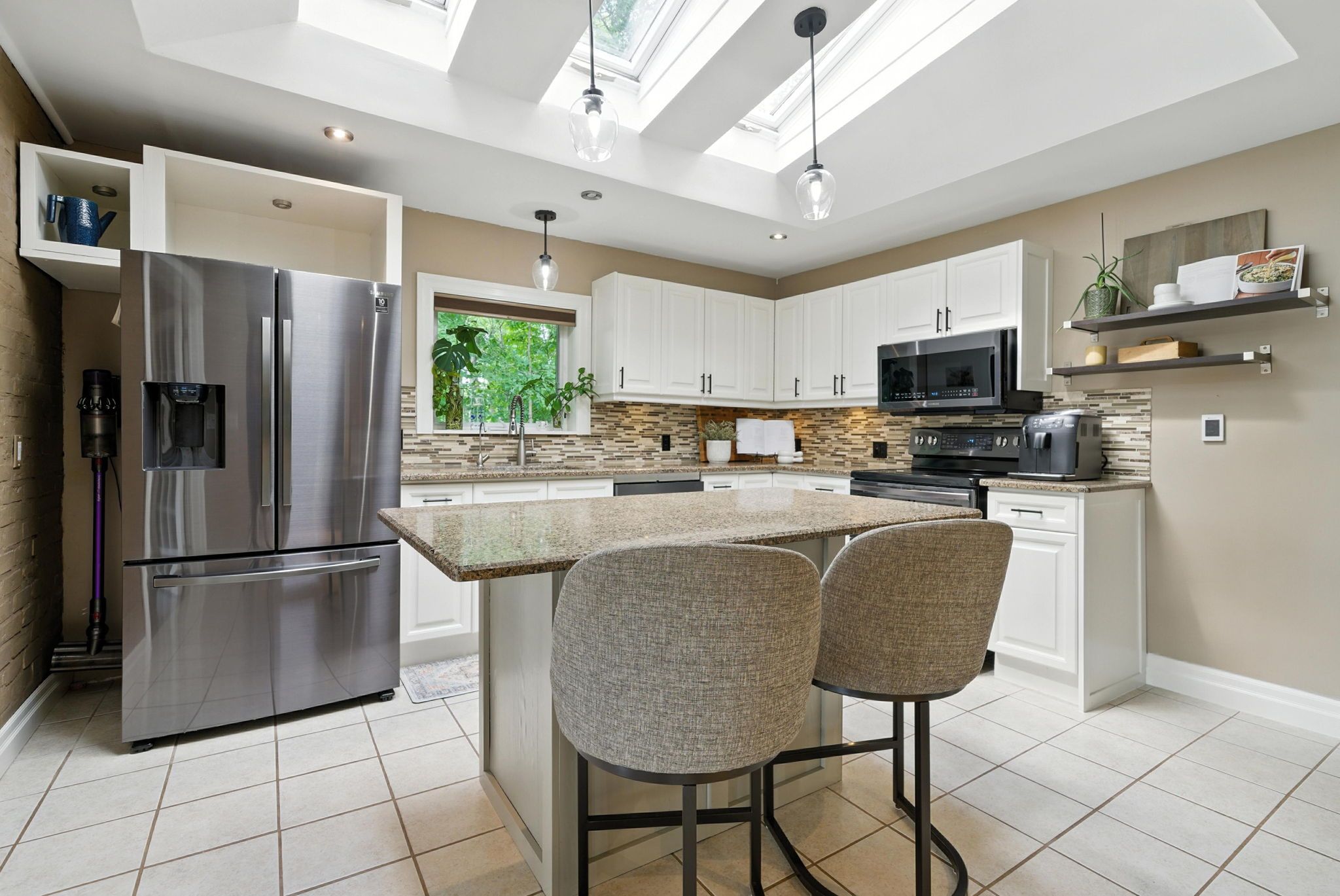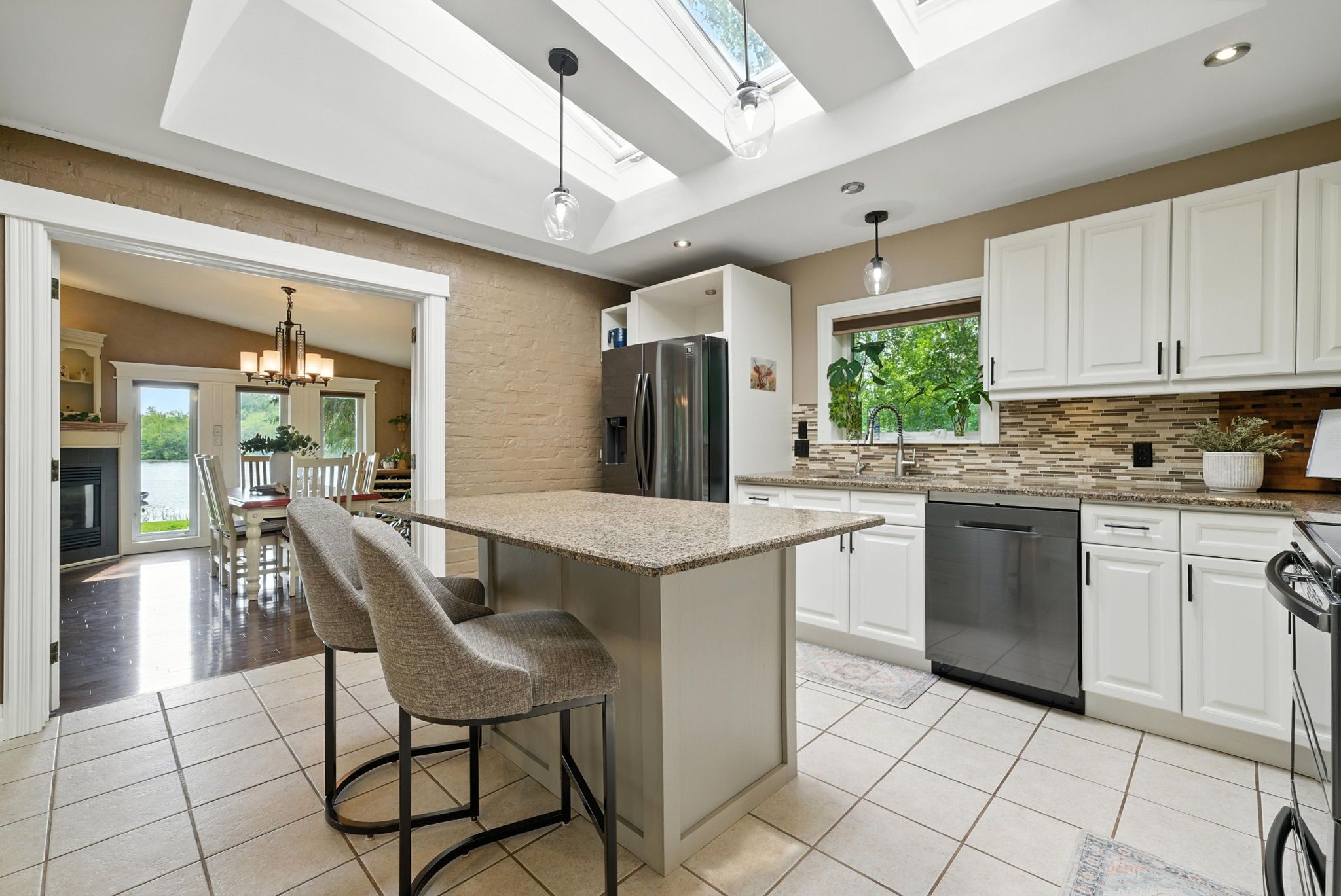 • Updated kitchen with an eat-at island and wet bar for entertaining.
