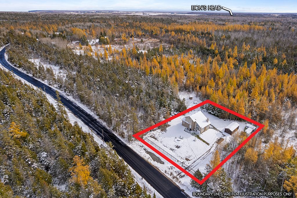 Welcome to 290 myles bay shore road - a beautifully crafted custom-built home set on a peaceful, private lot just minutes from the vibrant community of lion's head. This high-quality residence features 2x6 construction, exceptional craftsmanship, and thoughtful design throughout, offering a warm and inviting retreat in a picturesque natural setting. Inside, the bright and open living room is highlighted by soaring vaulted ceilings and a wall of oversized windows that fill the space with natural light and frame the surrounding treescape. The main level provides a comfortable flow between the living room, dining area, and well-maintained kitchen, making it ideal for everyday living and entertaining. With 3 bedrooms and 2 full bathrooms, this home offers ample space for families, guests, or a peaceful work-from-home setup. The upper-level bedrooms enjoy serene forest views, while the main-floor bedroom provides added flexibility. Both bathrooms are clean, functional, and well cared for, with the upper bath conveniently combined with laundry. Outside, the property shines with its expansive yard, multiple storage sheds, and plenty of room for outdoor enjoyment year-round. Whether you're gathering around the firepit, relaxing among the trees, or appreciating the quiet of rural living, this home offers a calm and comfortable lifestyle. Located near bruce peninsula attractions, hiking trails, and the crystal-clear waters of lake huron, this property offers the perfect blend of comfort, quality, and natural beauty. A wonderful opportunity to own a solid, well-built home in one of the region's most sought-after settings.