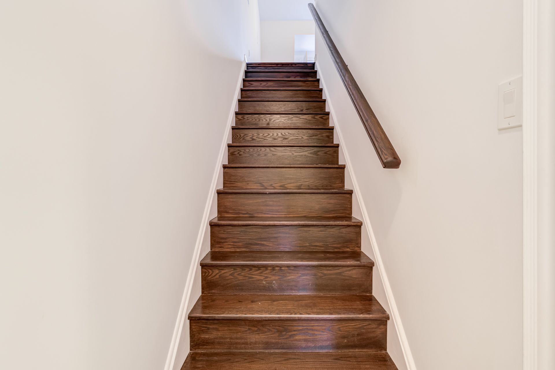 Well maintained and freshly painted, this sun-filled townhouse includes hardwood throughout, a private garage with 2 car tandem parking(including direct entry to ground floor of the home), a balcony off the kitchen, and a primary suite on the 3rd floor with an over-sized walk-in closet and a 5 piece ensuite washroom, including an over-sized separate shower stall and soaker tub. 2 bedrooms, 4 pc bath and separate laundry room on second floor. Gas fireplace in the living room.
