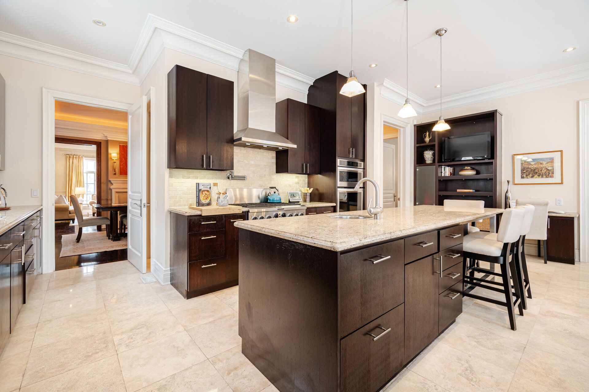 • Main floor features a private office and elegant living and dining areas.