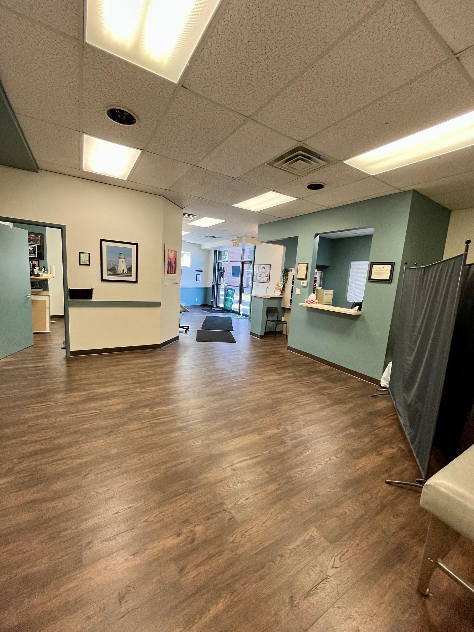 • Features large reception area, open kitchen, and three exam rooms.