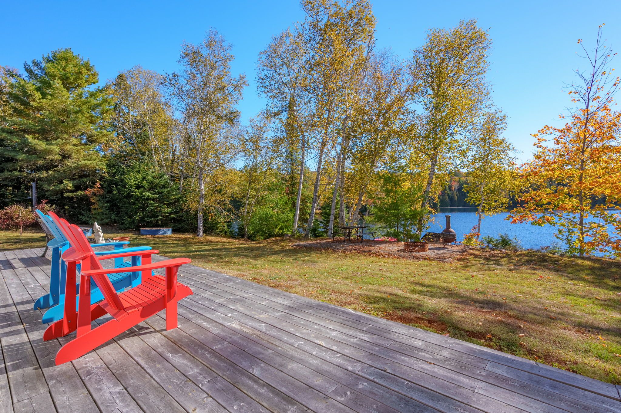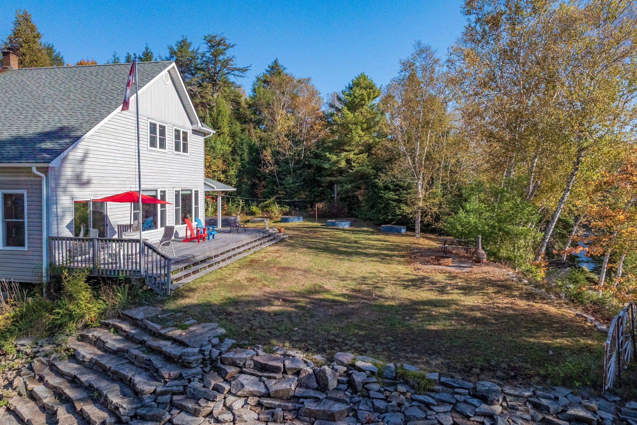 • Large yard with a wrap-around deck, perfect for outdoor activities.