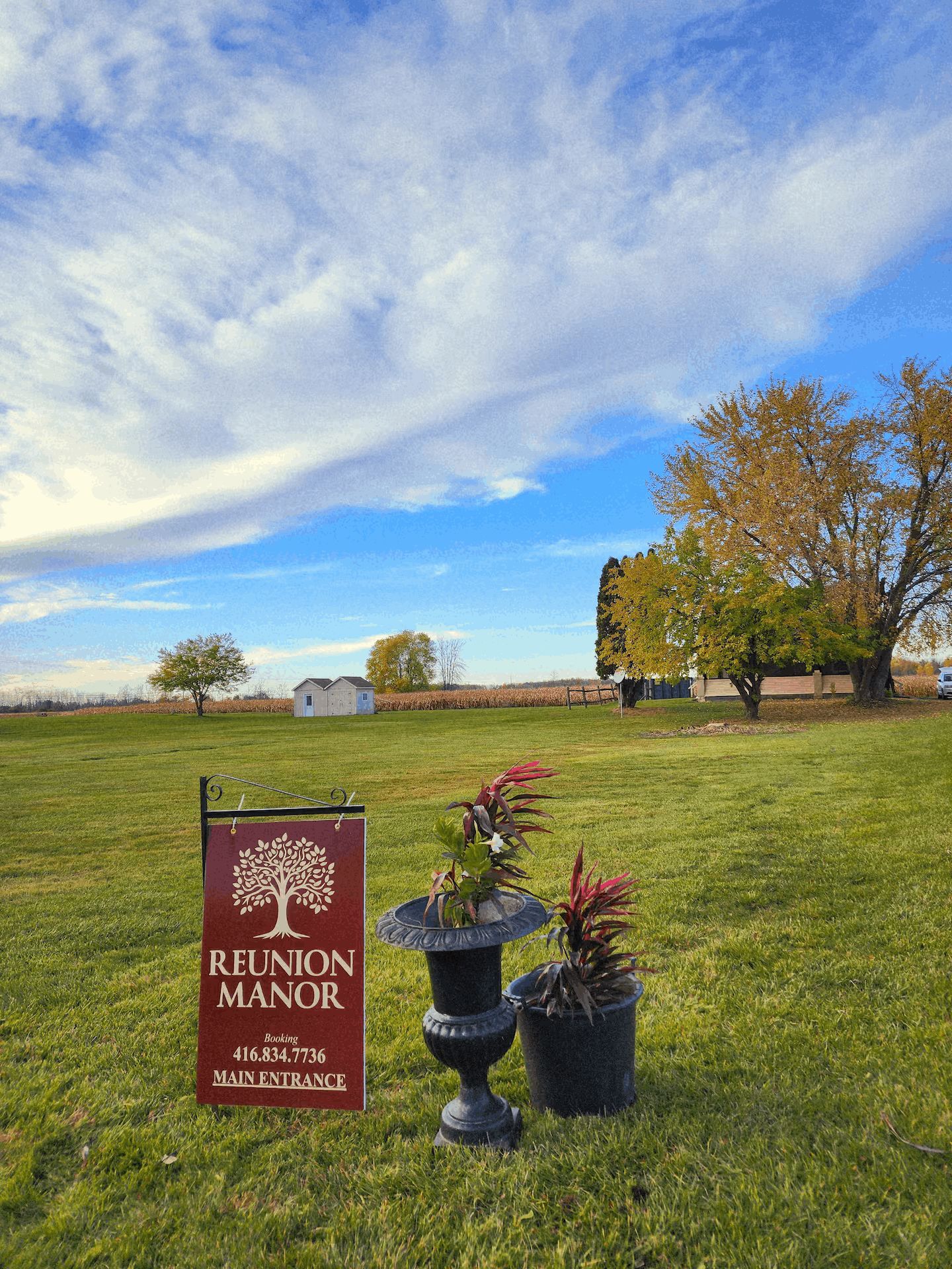 • 5 acres of manicured grounds featuring a fire pit and BBQ grill.