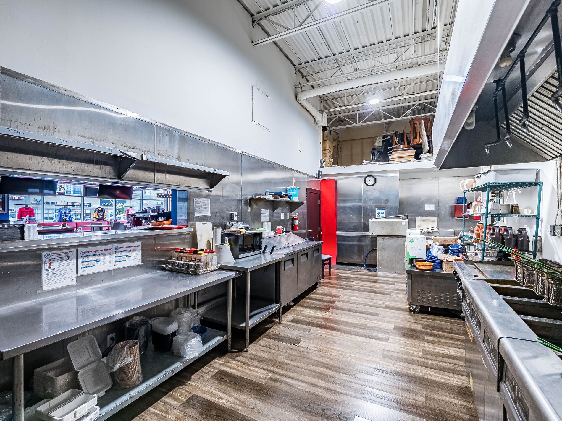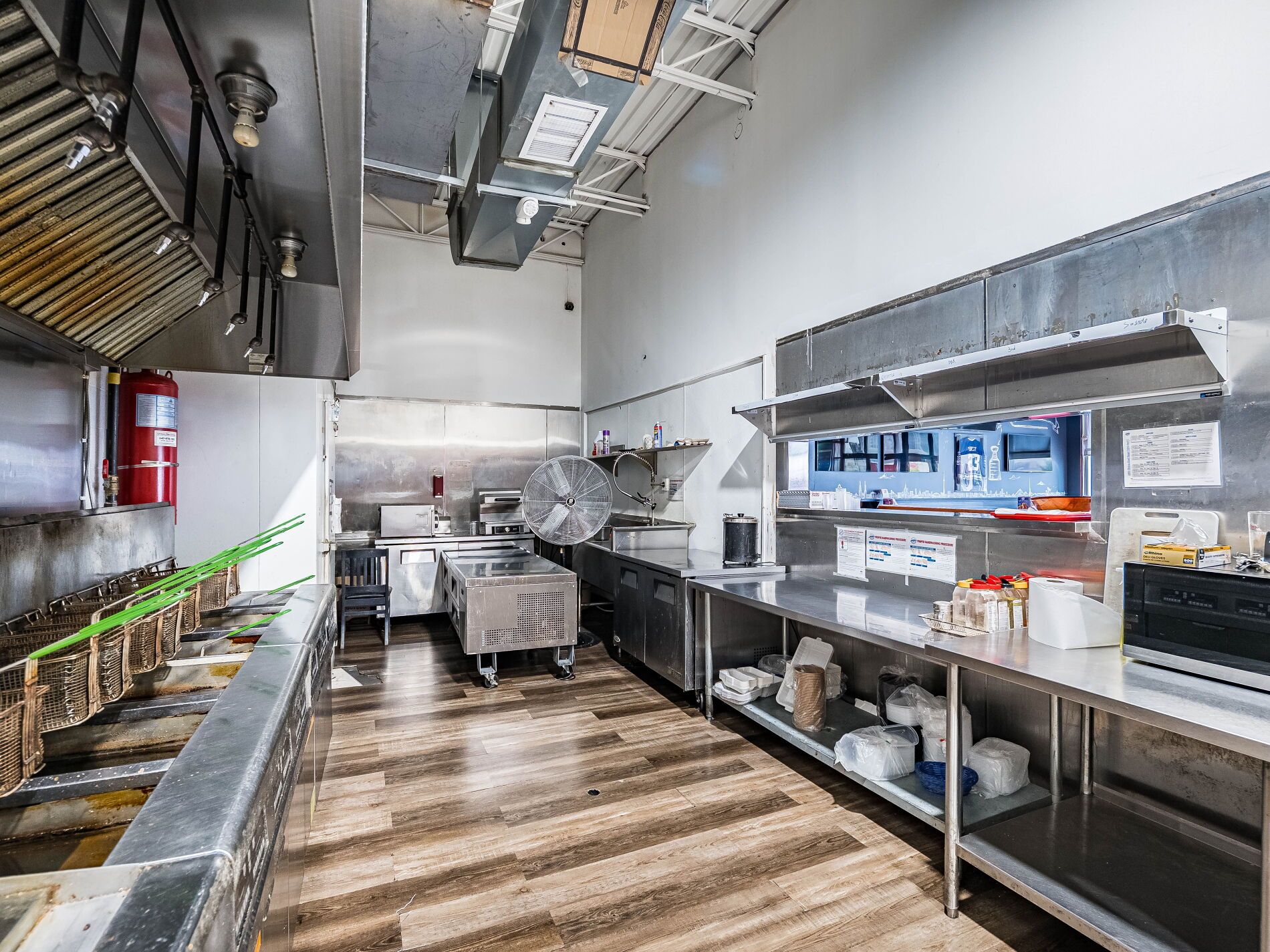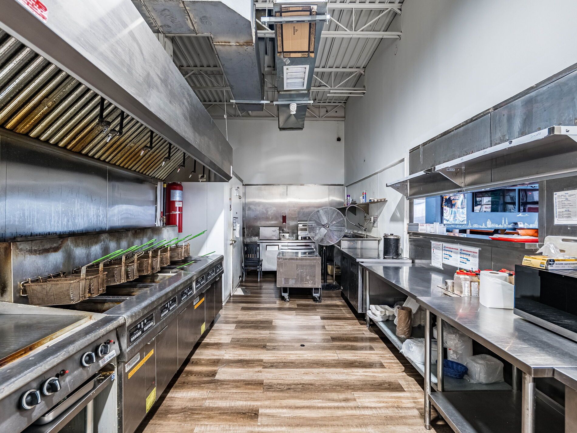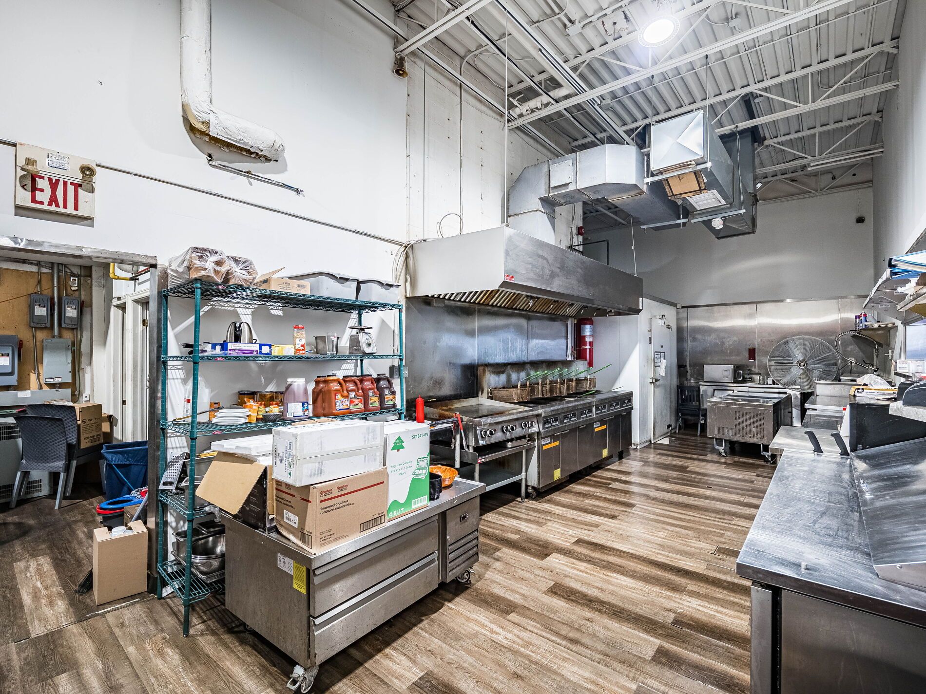 • Spacious interior with a fully equipped commercial kitchen and ample seating.