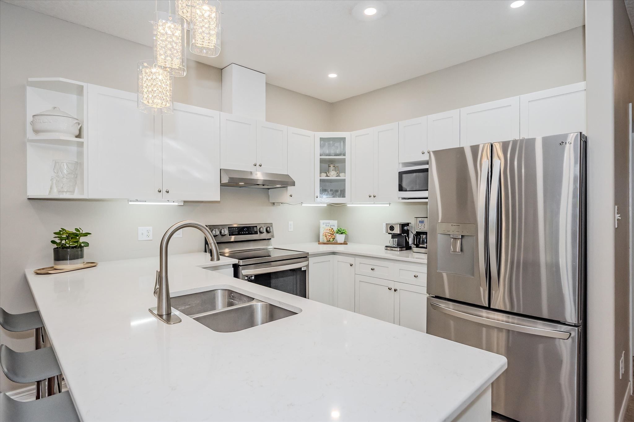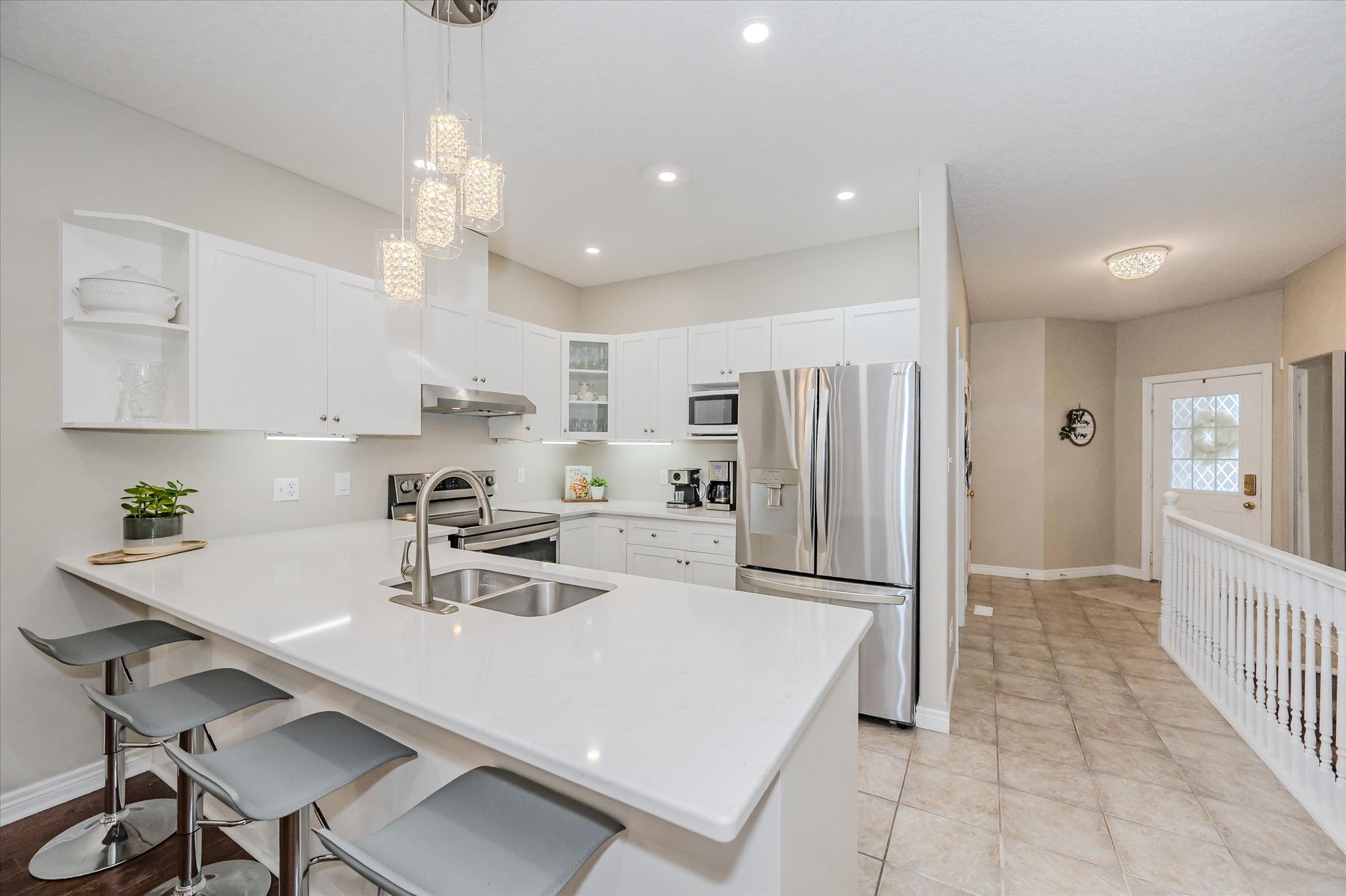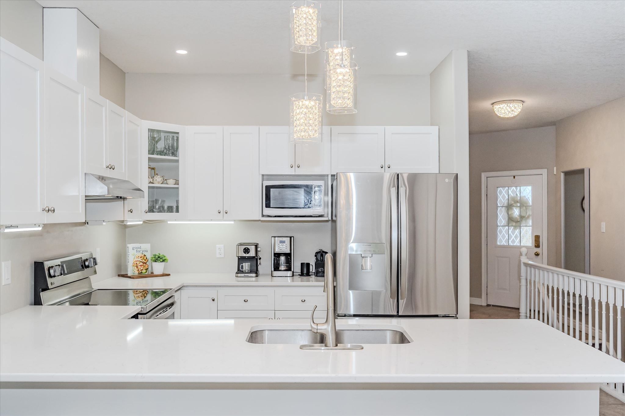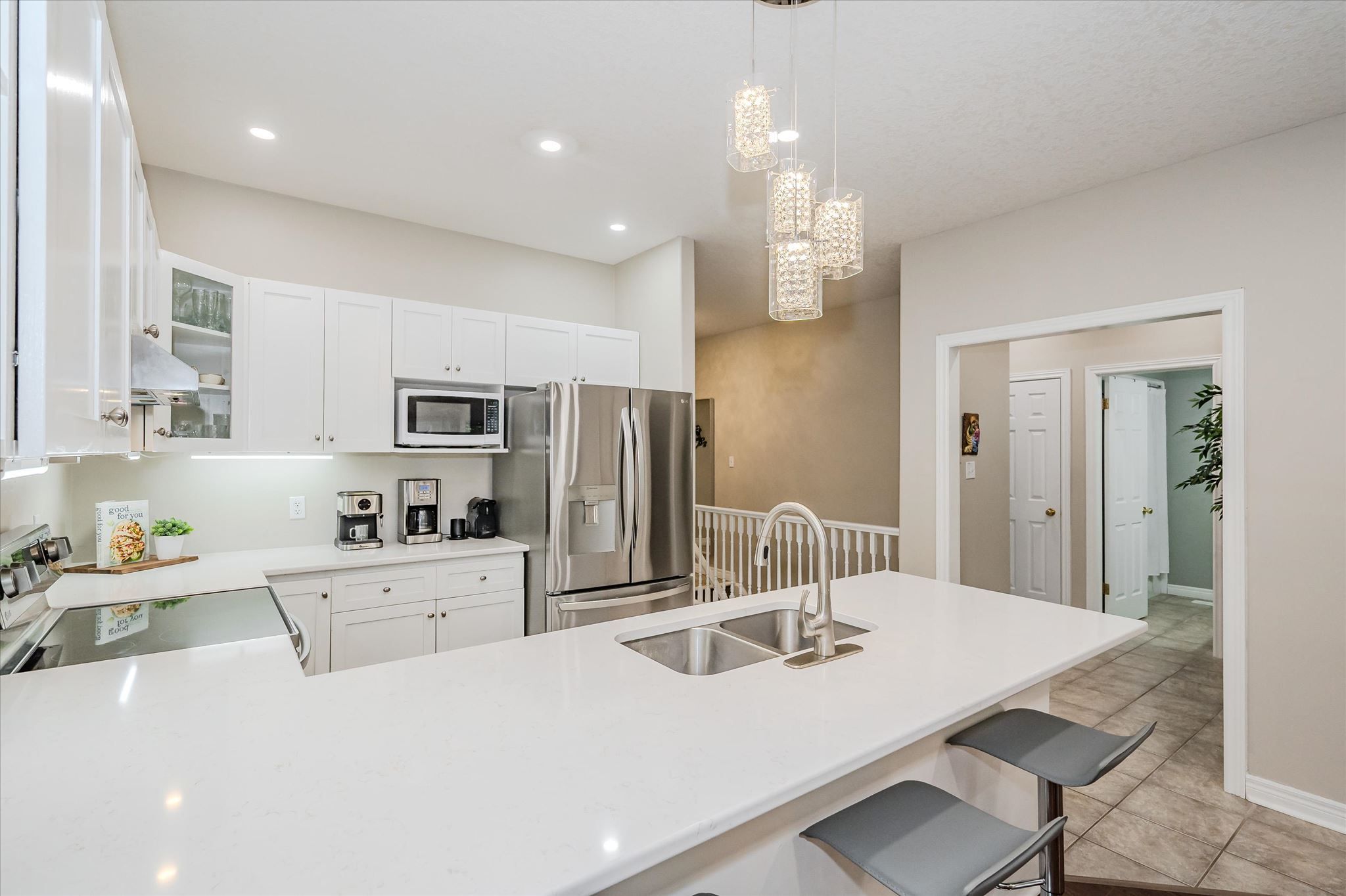 • Updated kitchen features quartz countertops and stainless steel appliances.