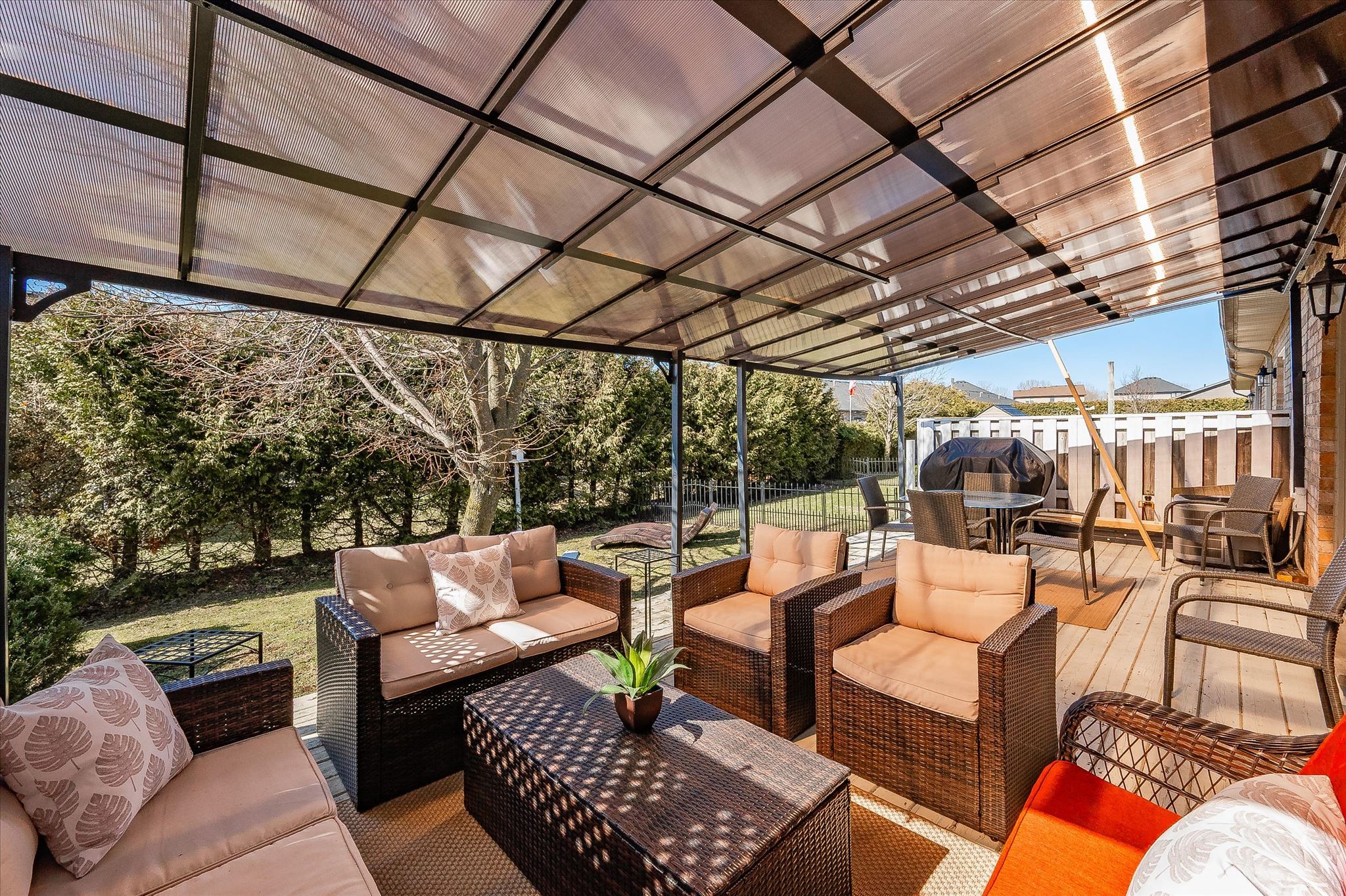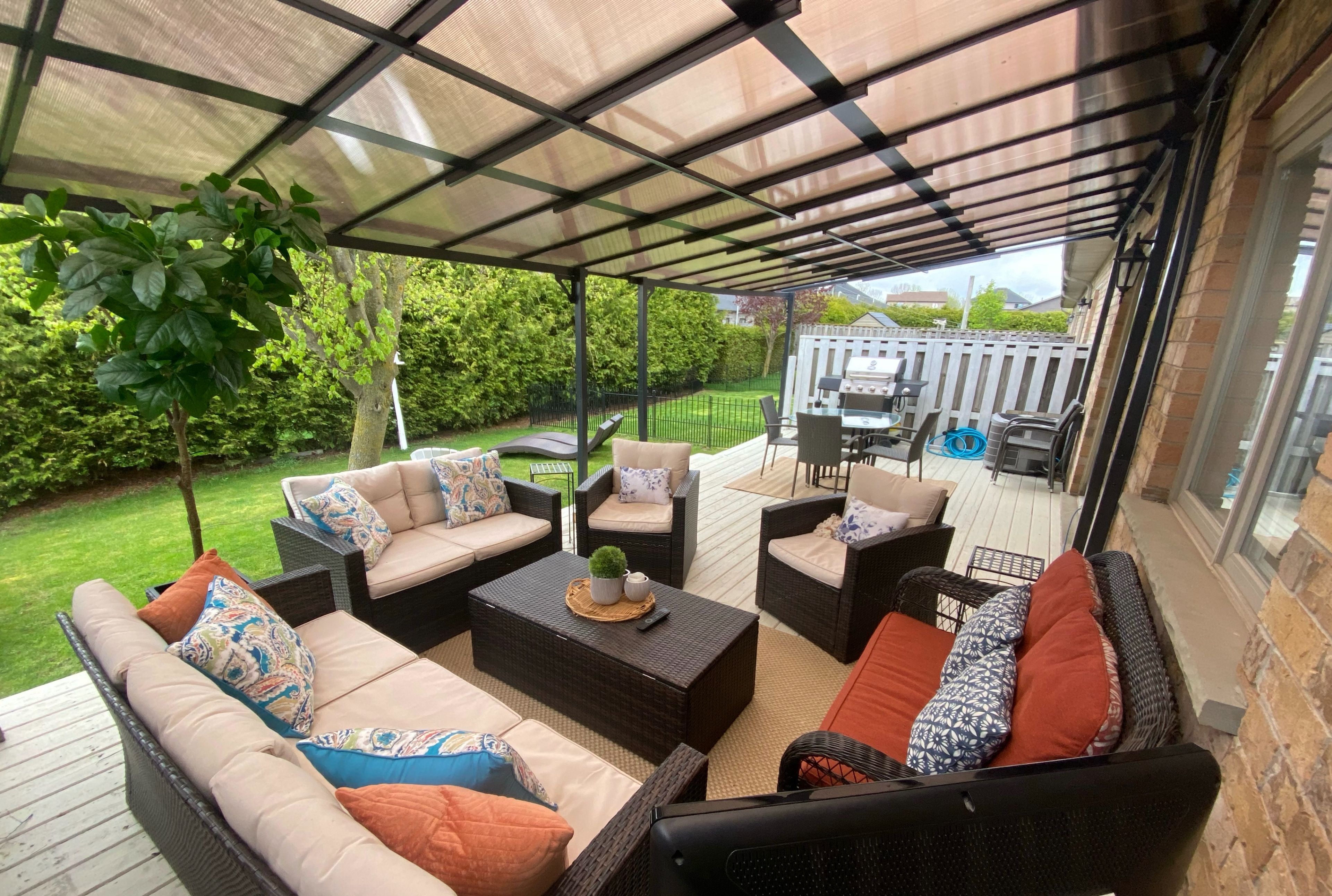 • Private backyard oasis with a large deck and space for gardens or pets.