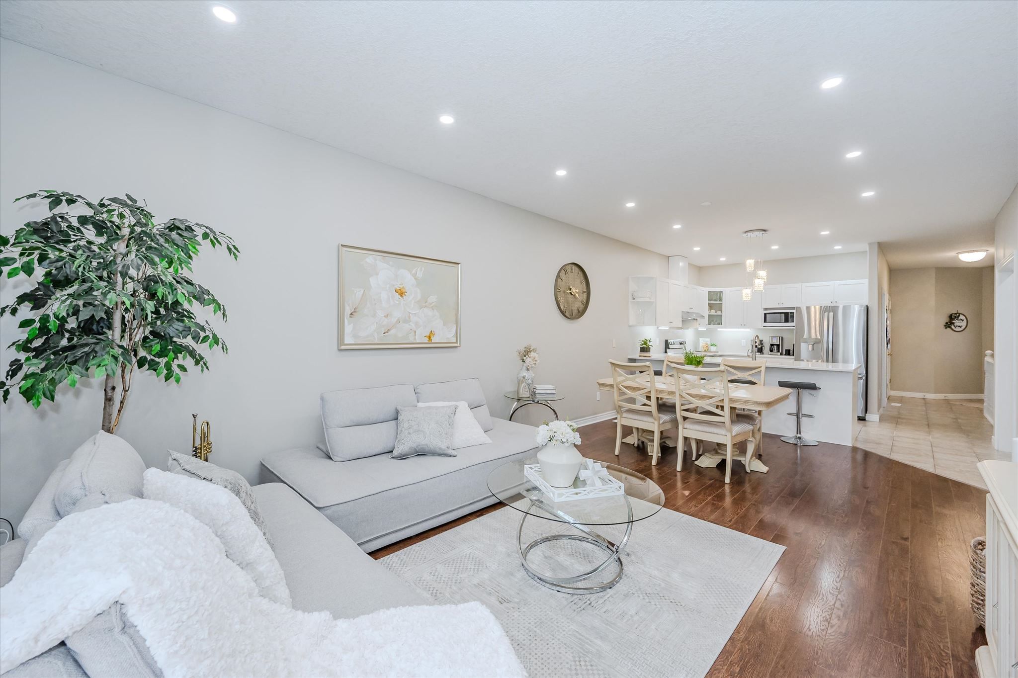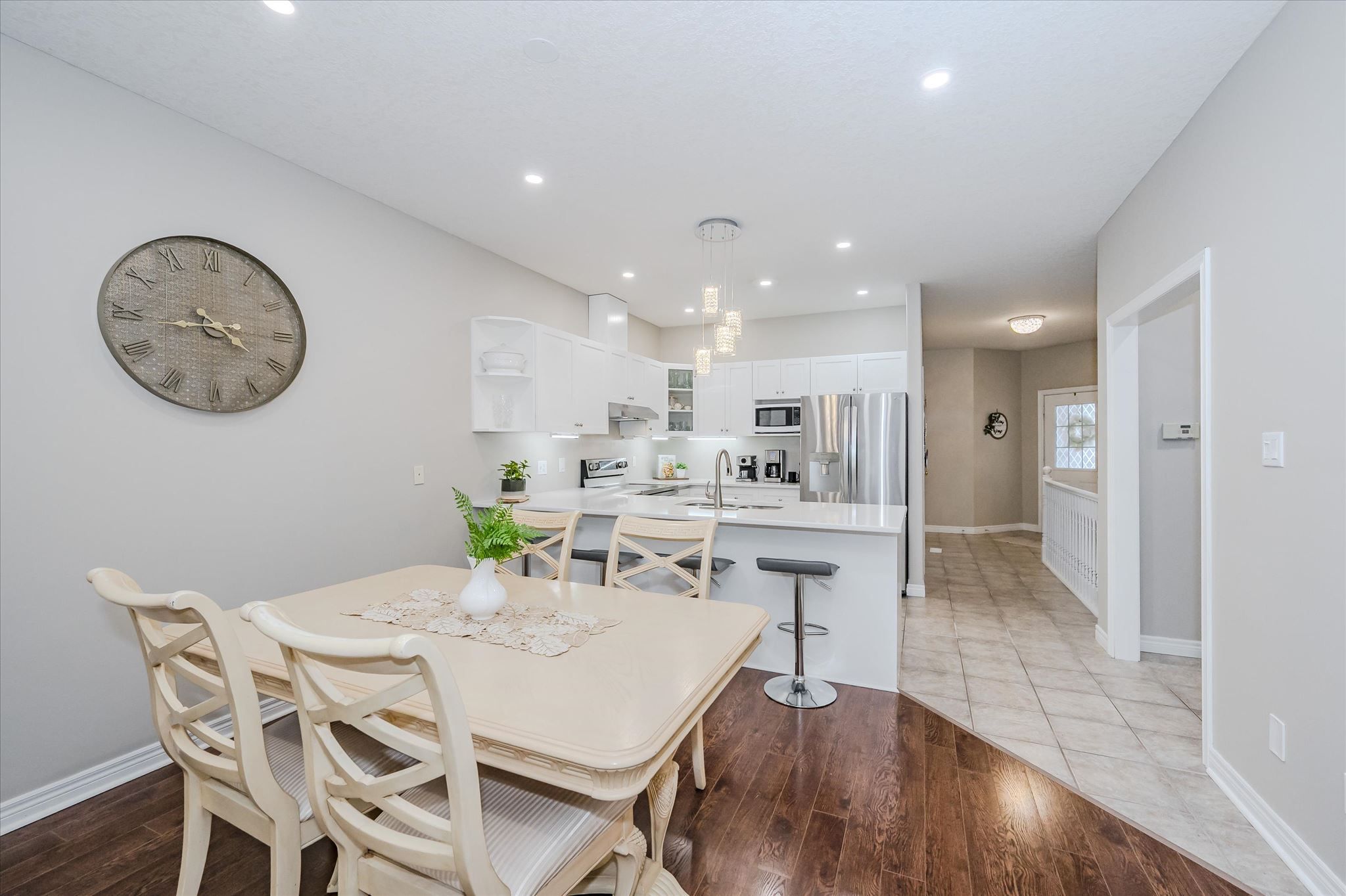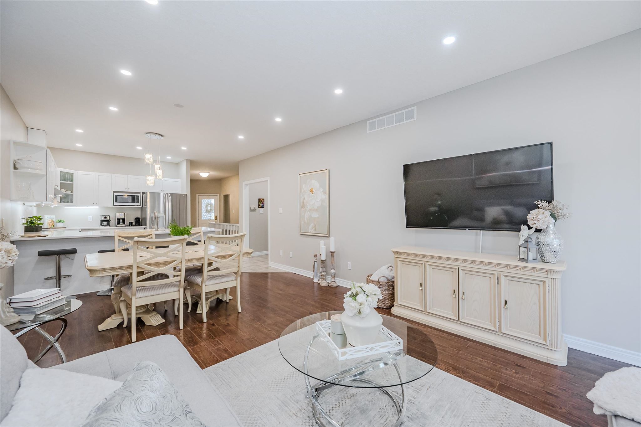 • Open-concept layout with 9-foot ceilings and beautiful hardwood floors.