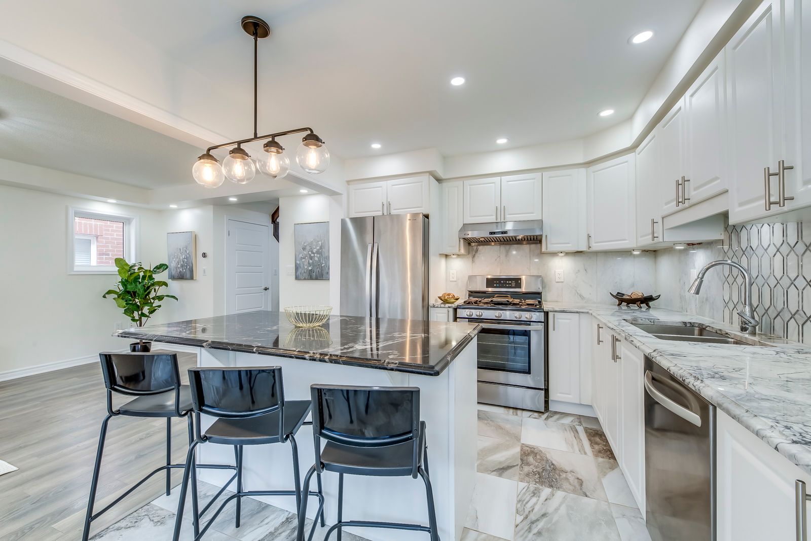 Welcome to this stunning mattamy end-unit townhome over 2800 sqft of living space, nestled on a quiet street in milton desirable ford neighborhood. With over almost 2000 sqft above grade, this home is spacious and functional! Fresh paint for all of house, offering 4 bedrooms, 3. 5 baths, and a thoughtful layout, featuring pot lights throughout, a new wood staircase with elegant iron pickets, and convenient interior garage access. The heart of the home is the extra size kitchen, marble countertops and backsplash, stainless steel appliances, and a large island with breakfast bar, flowing seamlessly into the eat-in area with direct access to the fully fenced backyard. The main level offers open-concept living with upgraded flooring and a separate formal front living/dining room, perfect for entertaining. 2nd floor presented a spacious primary suite with walk-in closet and ensuite, second-floor laundry, 3 good size bedrooms and an oversized linen closet and upgraded baths. The separate entrance basement features full separate living space with living area with large windows, bedroom, den, kitchen, full washroom and secondary laundry & dryer. The house has efficient with gas stove, gas dryer and backyard barbeque connection. This home has everything you need, combines comfort, style, and functionality, located on a quiet street in milton's sought-after ford neighborhood, you're just steps to boyne public school, st. Scholastica catholic, st. Fx catholic high, and the milton indoor turf centre. Communities.