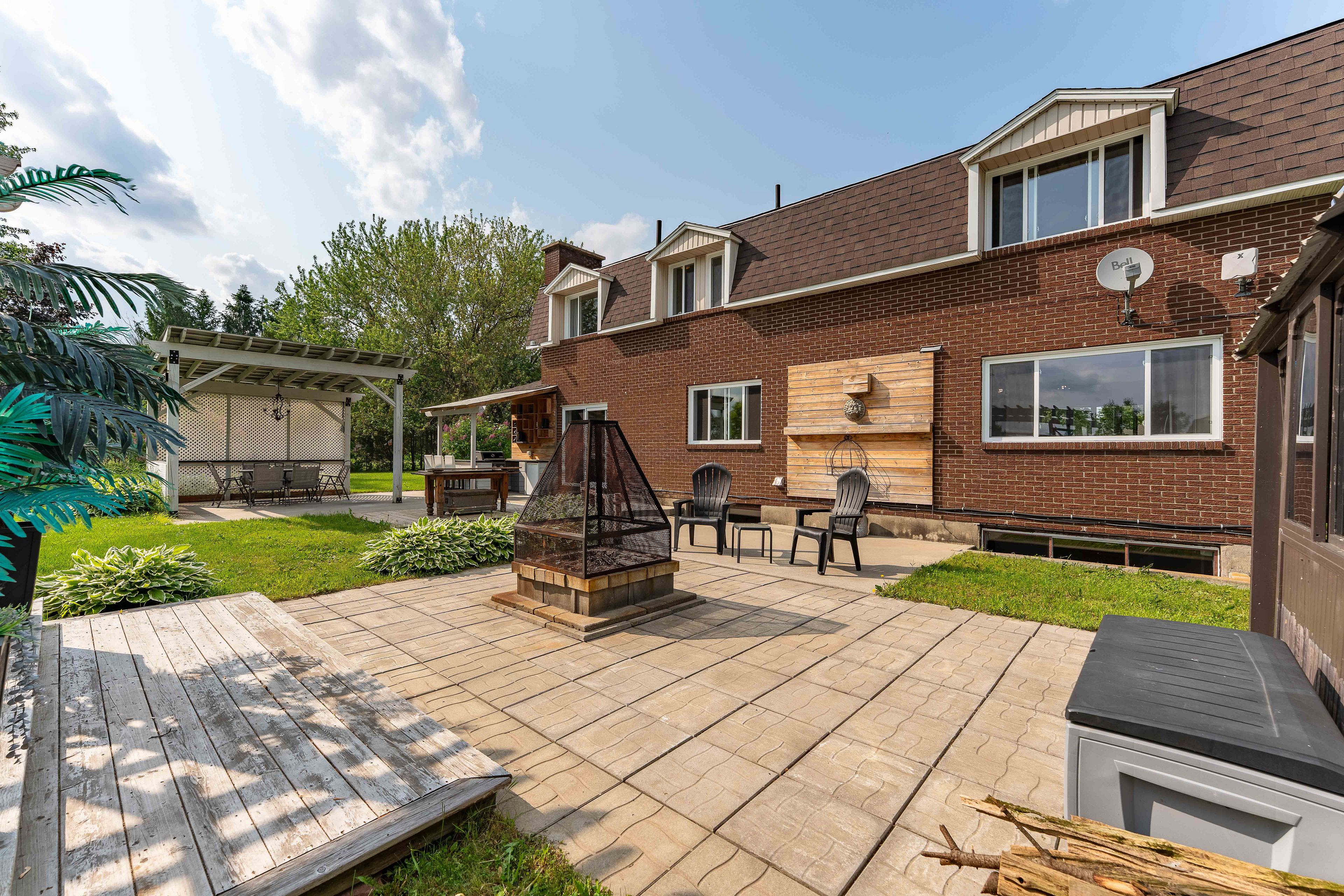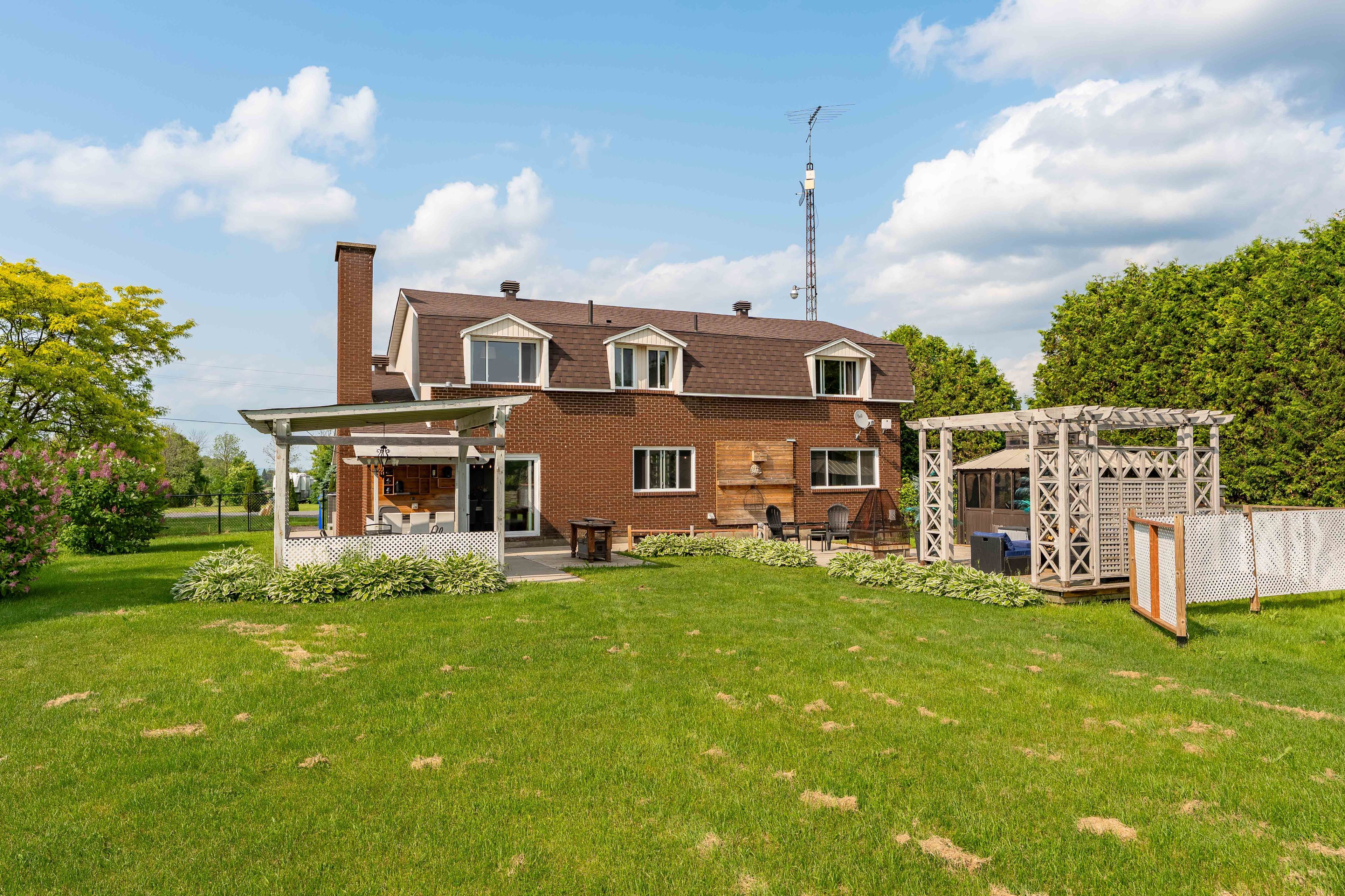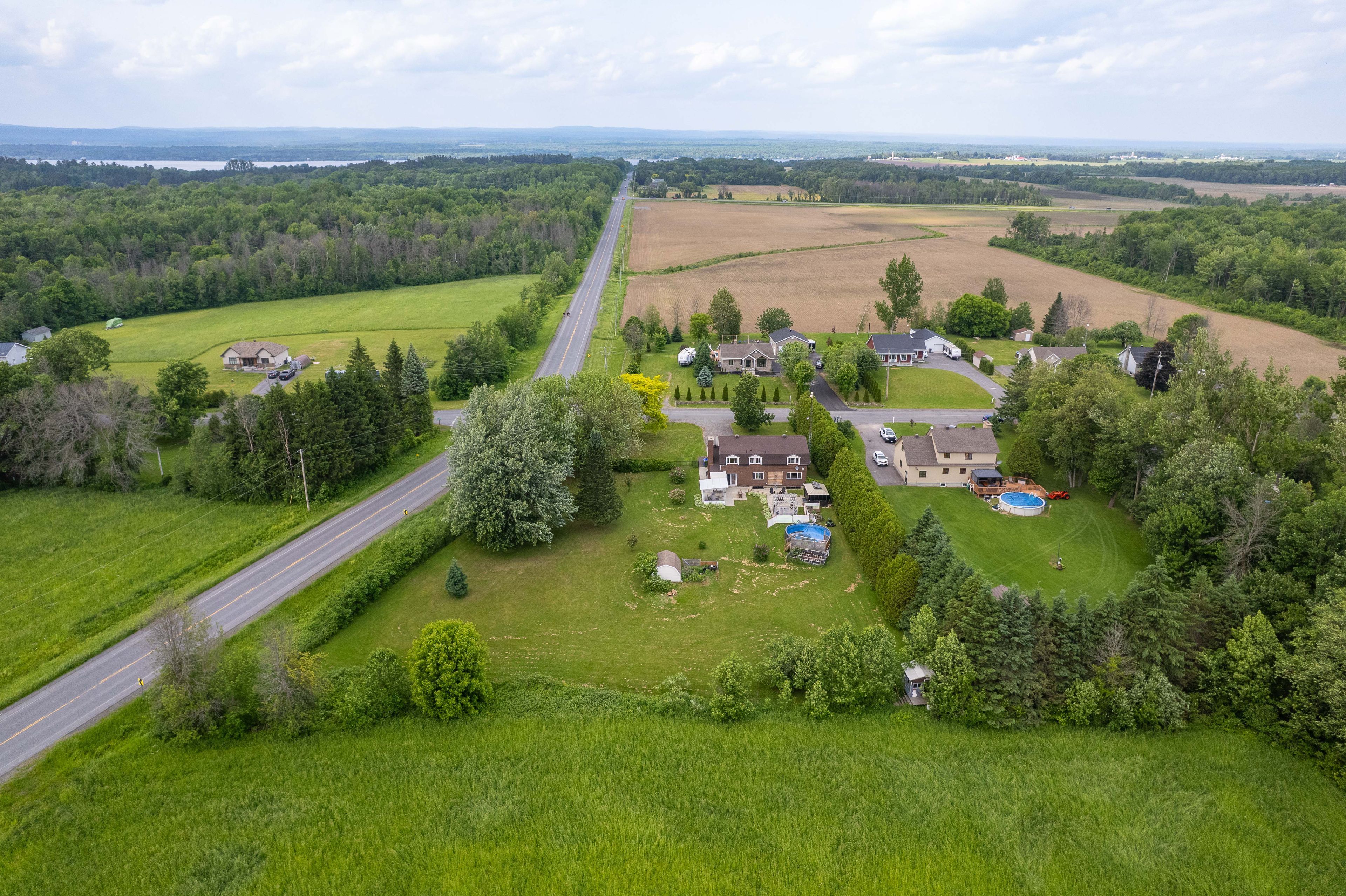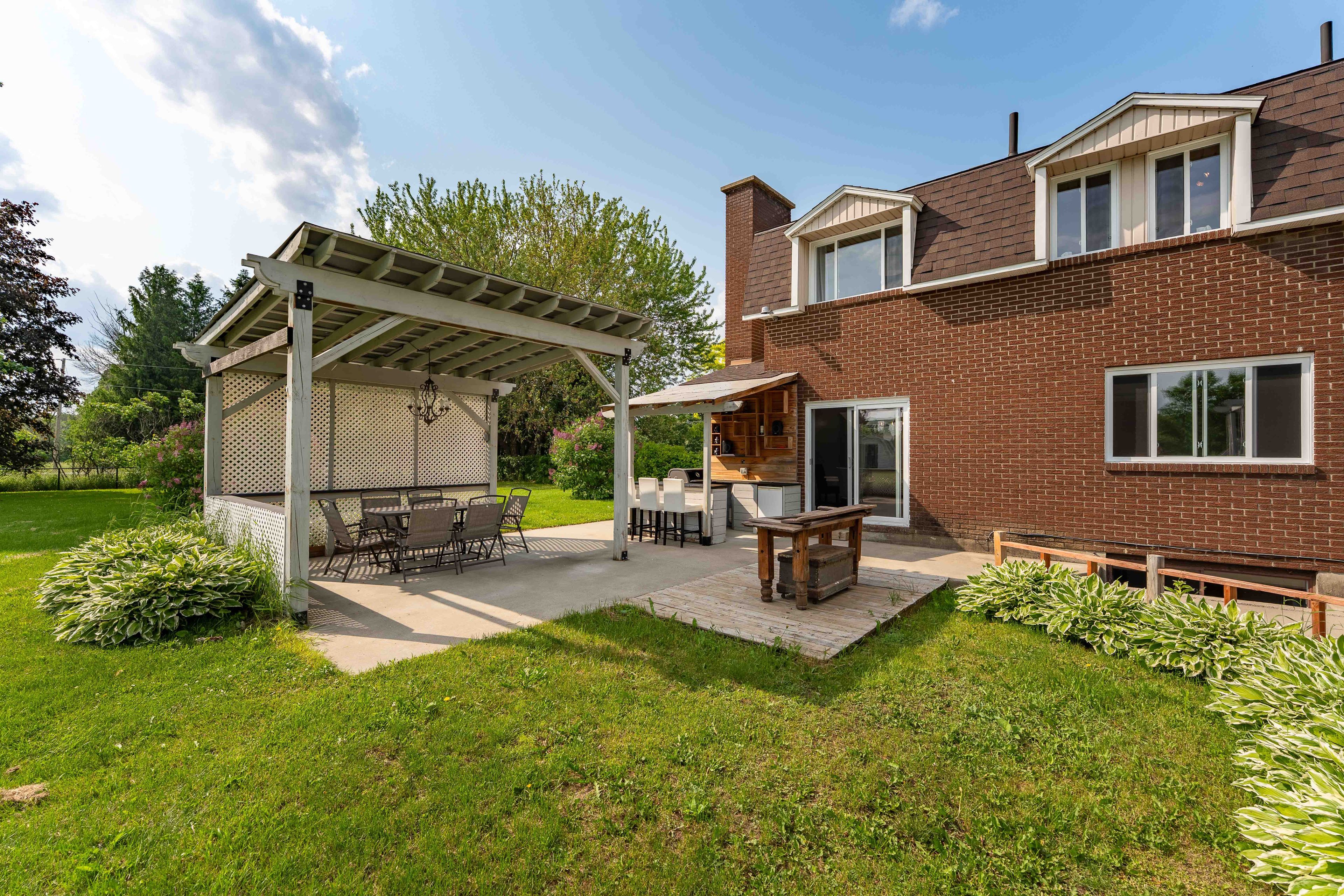 Nestled on a beautifully landscaped corner lot near the quebec-ontario border, this executive 2-storey home offers the perfect blend of elegance, comfort, and convenience. Ideally located just 35 minutes from montreal's west island, 1 hour from ottawa, and only 5 minutes to hawkesbury's renowned hospital, shopping, restaurants, and marina on the ottawa river this is a lifestyle opportunity you don't want to miss. The second level offers four spacious bedrooms, including a primary suite with a full ensuite and a separate full bathroom for the remaining bedrooms perfect for a growing family. On the main floor, enjoy a fully renovated open-concept layout where the kitchen becomes the heart of the home. Featuring a huge center island, built-in appliances, and an abundance of cabinetry, this kitchen is designed for entertaining. It flows seamlessly into the dining area, complete with a cozy wood-burning fireplace and patio doors that open to your private backyard retreat. Step outside to a brand-new poured concrete patio featuring an outdoor kitchen, pergola, and an above-ground pool ideal for summer fun and gatherings. The fully finished basement adds two more bedrooms and a spacious rec room, offering flexibility for guests, office space, or a home gym. Additional features include a double attached garage, central air conditioning, a paved driveway, and rough-in for central vacuum. This home is move-in ready and designed for both family life and entertaining in style.