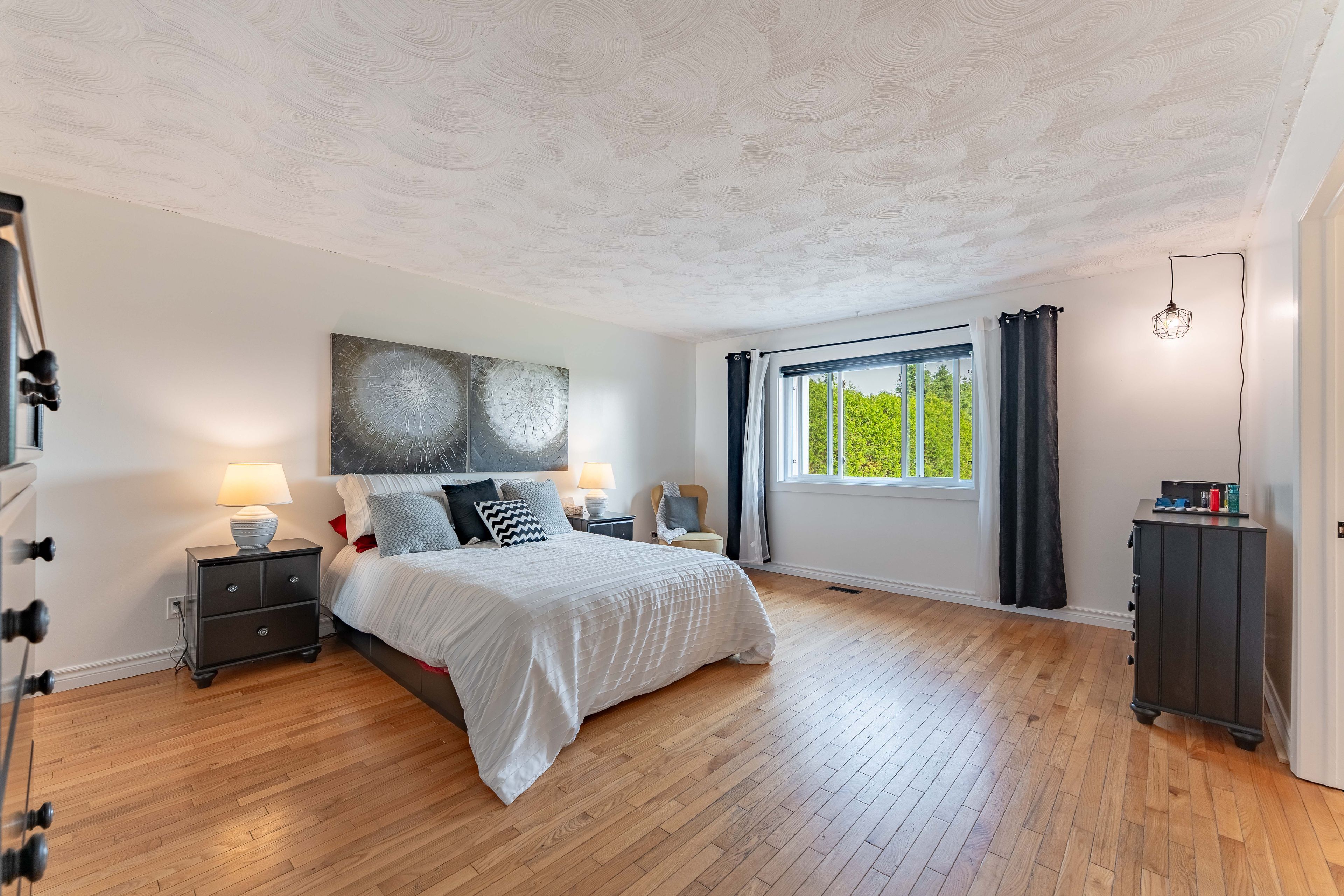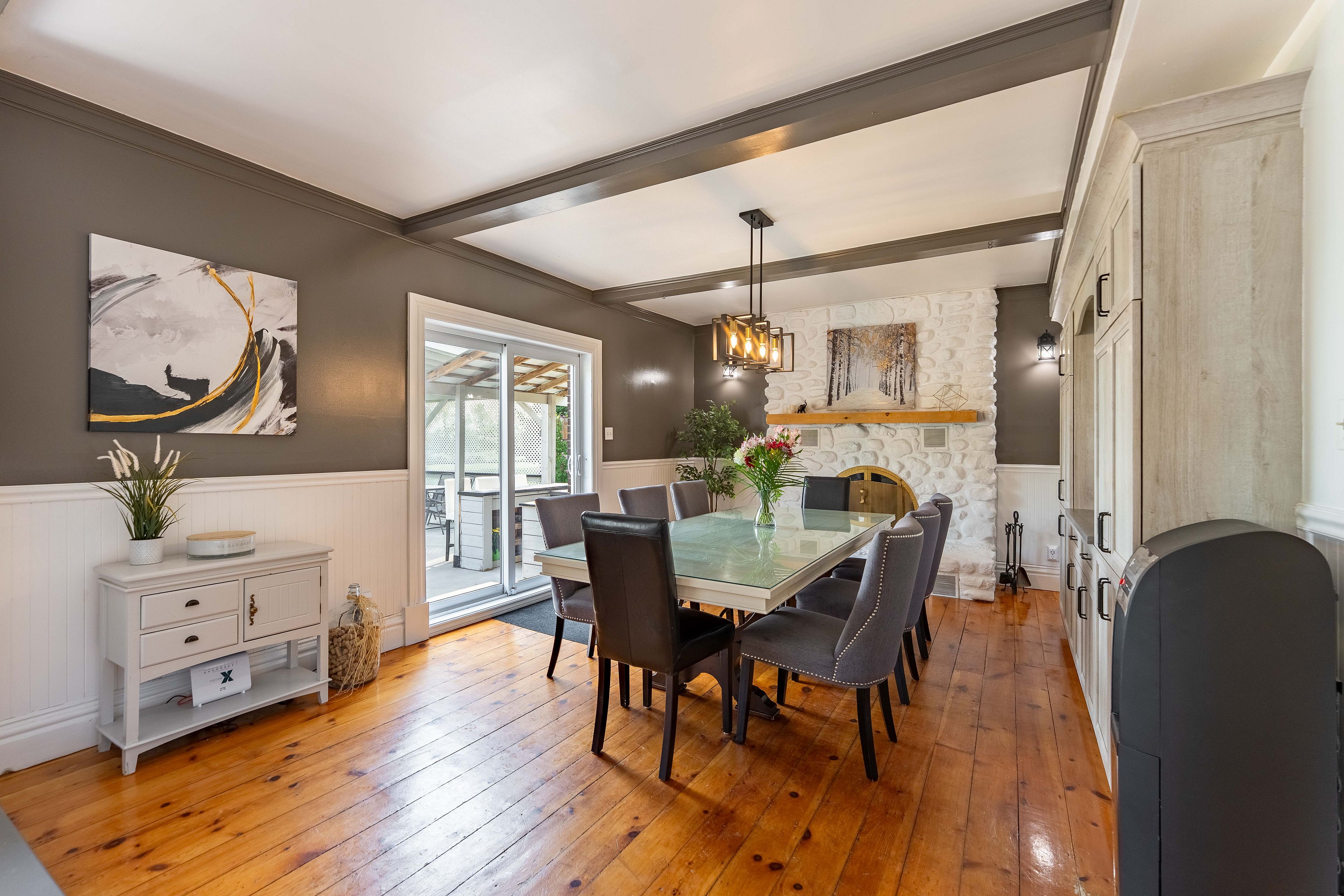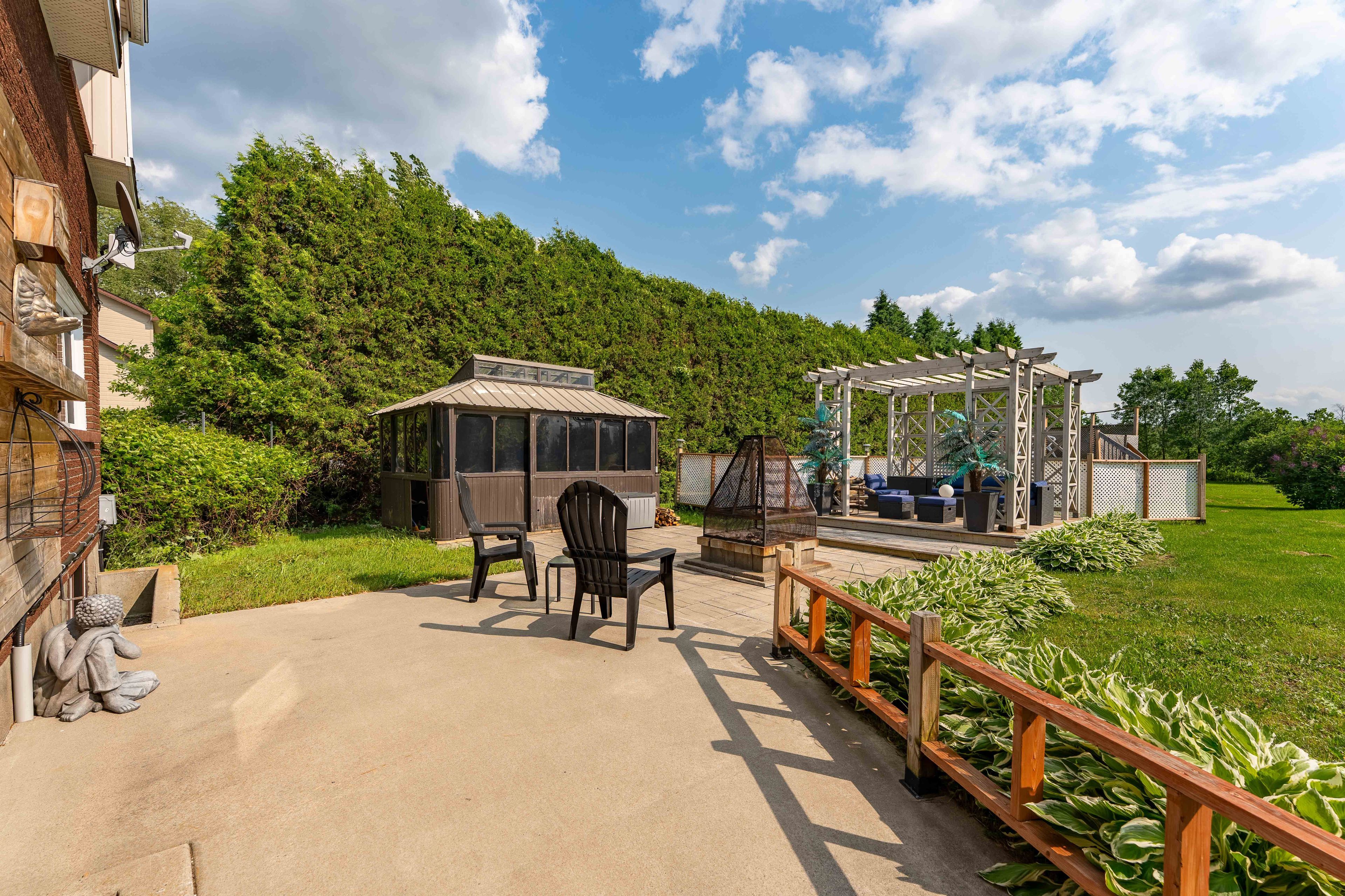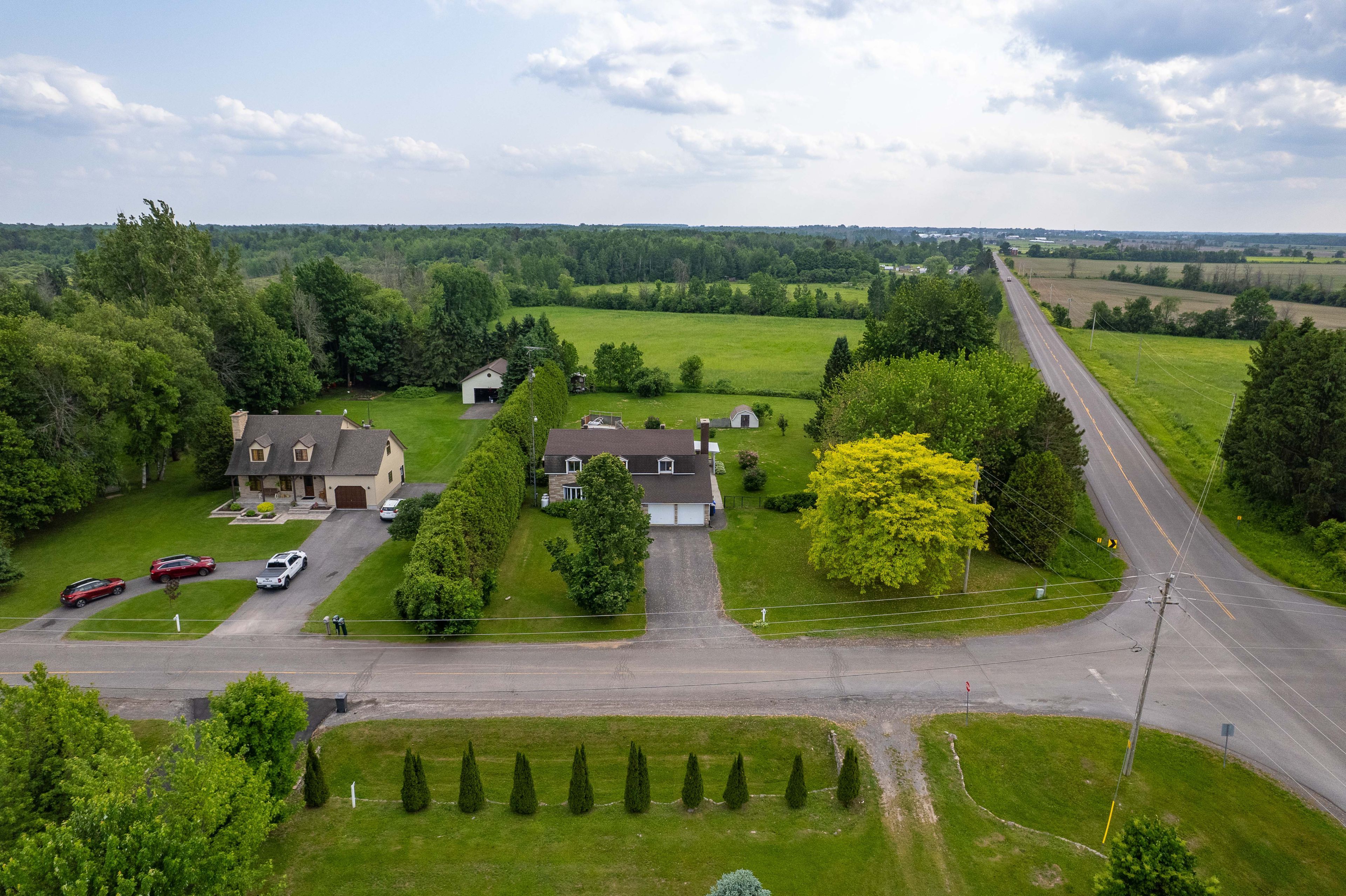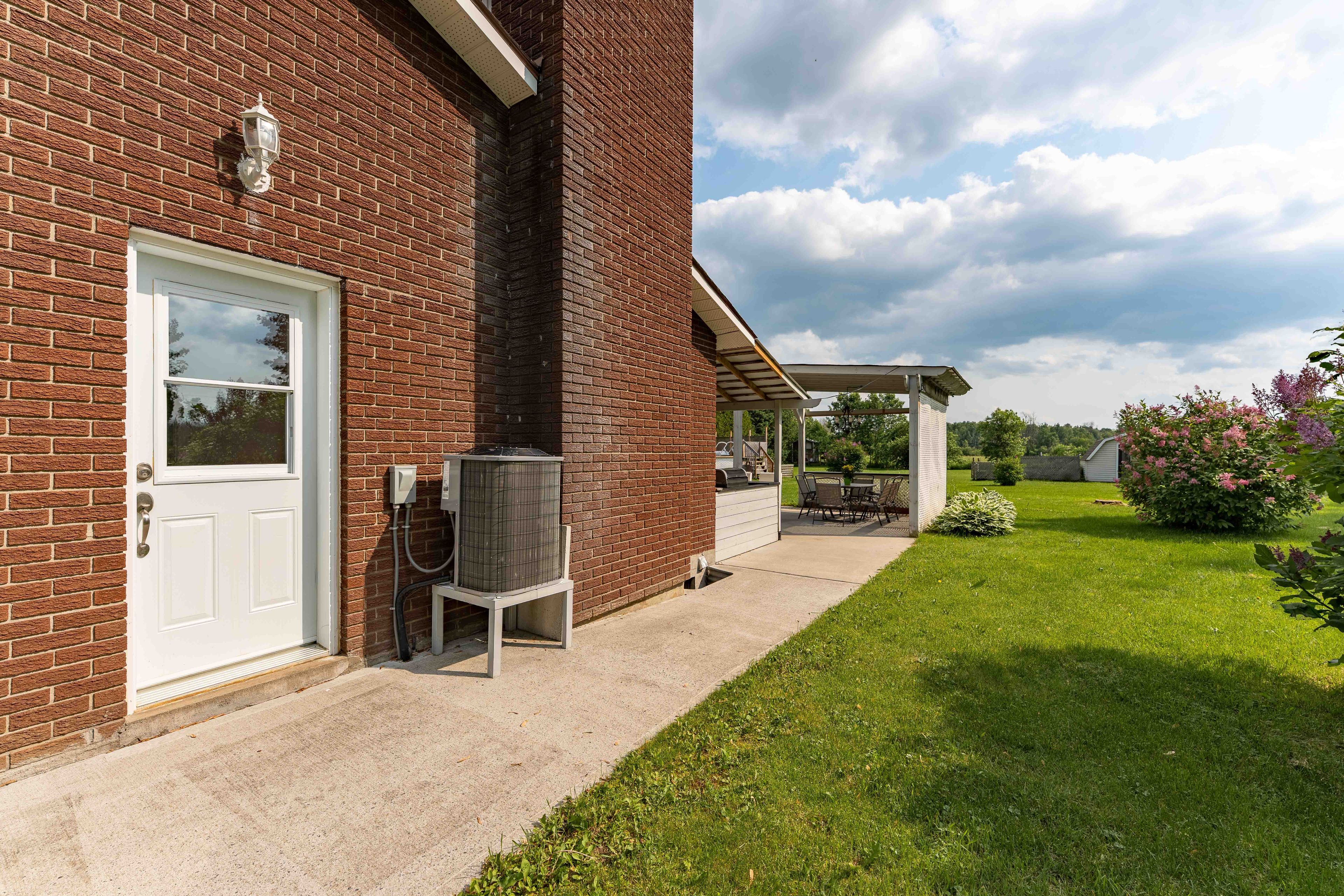 Nestled on a beautifully landscaped corner lot near the quebec-ontario border, this executive 2-storey home offers the perfect blend of elegance, comfort, and convenience. Ideally located just 35 minutes from montreal's west island, 1 hour from ottawa, and only 5 minutes to hawkesbury's renowned hospital, shopping, restaurants, and marina on the ottawa river this is a lifestyle opportunity you don't want to miss. The second level offers four spacious bedrooms, including a primary suite with a full ensuite and a separate full bathroom for the remaining bedrooms perfect for a growing family. On the main floor, enjoy a fully renovated open-concept layout where the kitchen becomes the heart of the home. Featuring a huge center island, built-in appliances, and an abundance of cabinetry, this kitchen is designed for entertaining. It flows seamlessly into the dining area, complete with a cozy wood-burning fireplace and patio doors that open to your private backyard retreat. Step outside to a brand-new poured concrete patio featuring an outdoor kitchen, pergola, and an above-ground pool ideal for summer fun and gatherings. The fully finished basement adds two more bedrooms and a spacious rec room, offering flexibility for guests, office space, or a home gym. Additional features include a double attached garage, central air conditioning, a paved driveway, and rough-in for central vacuum. This home is move-in ready and designed for both family life and entertaining in style.