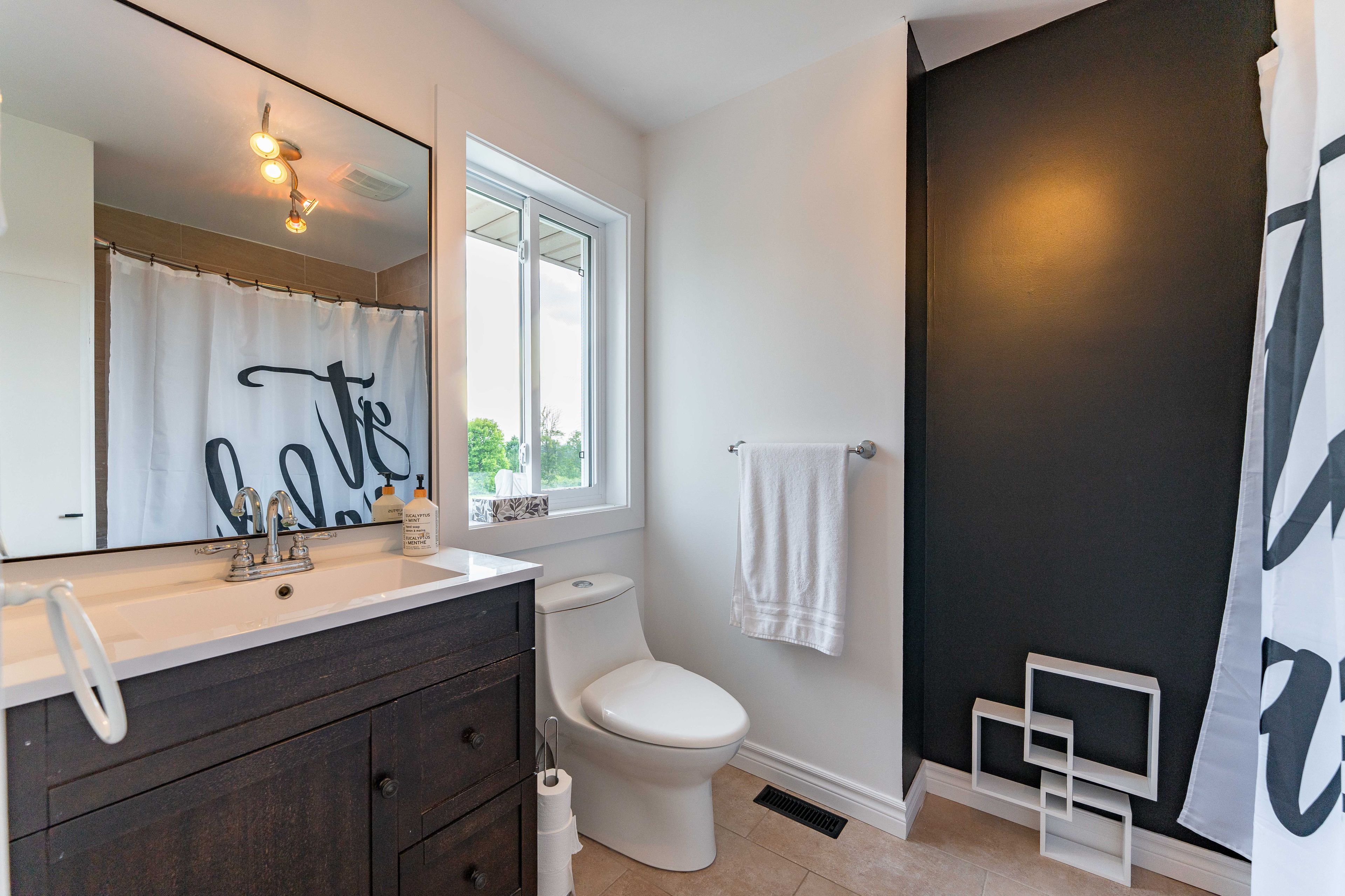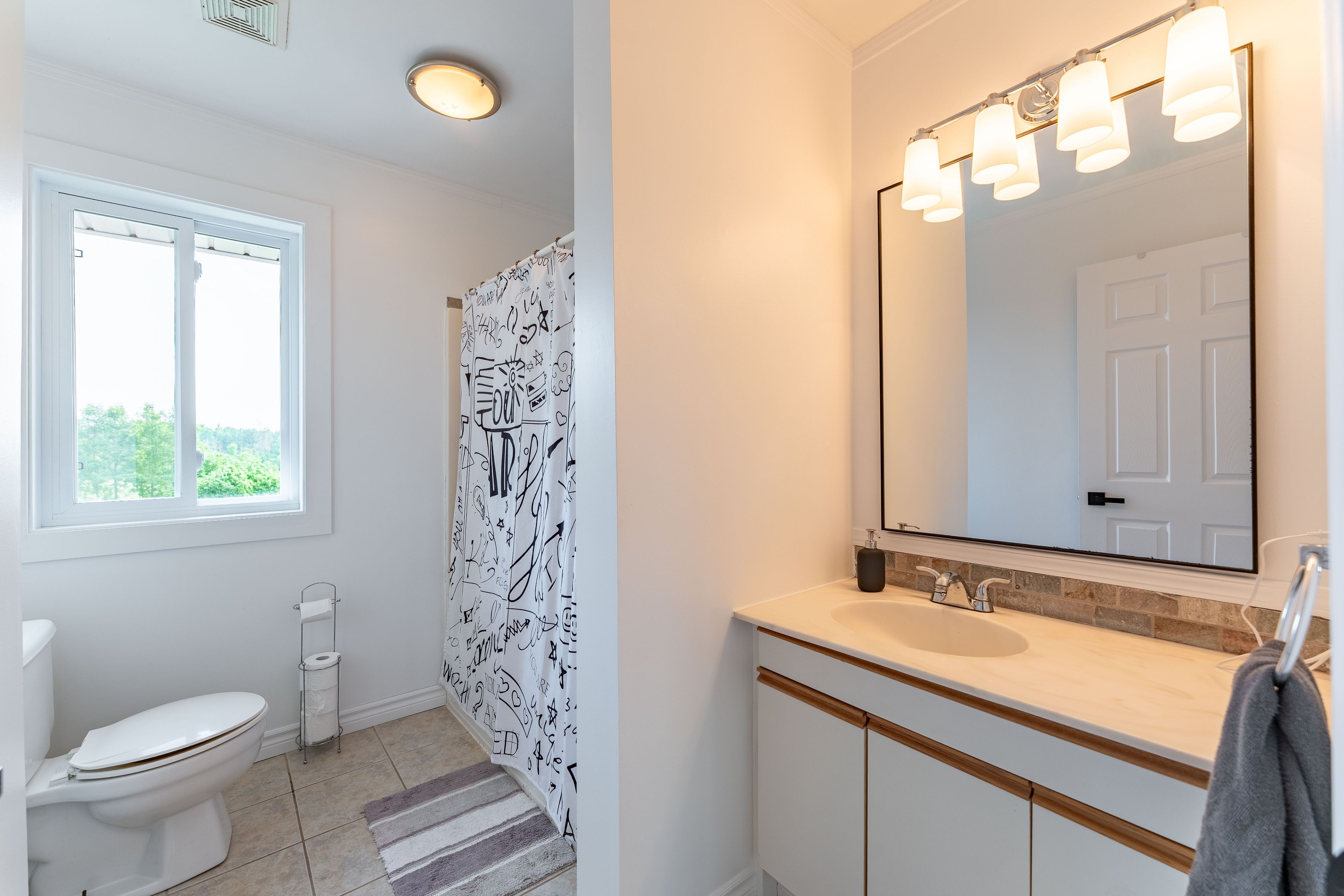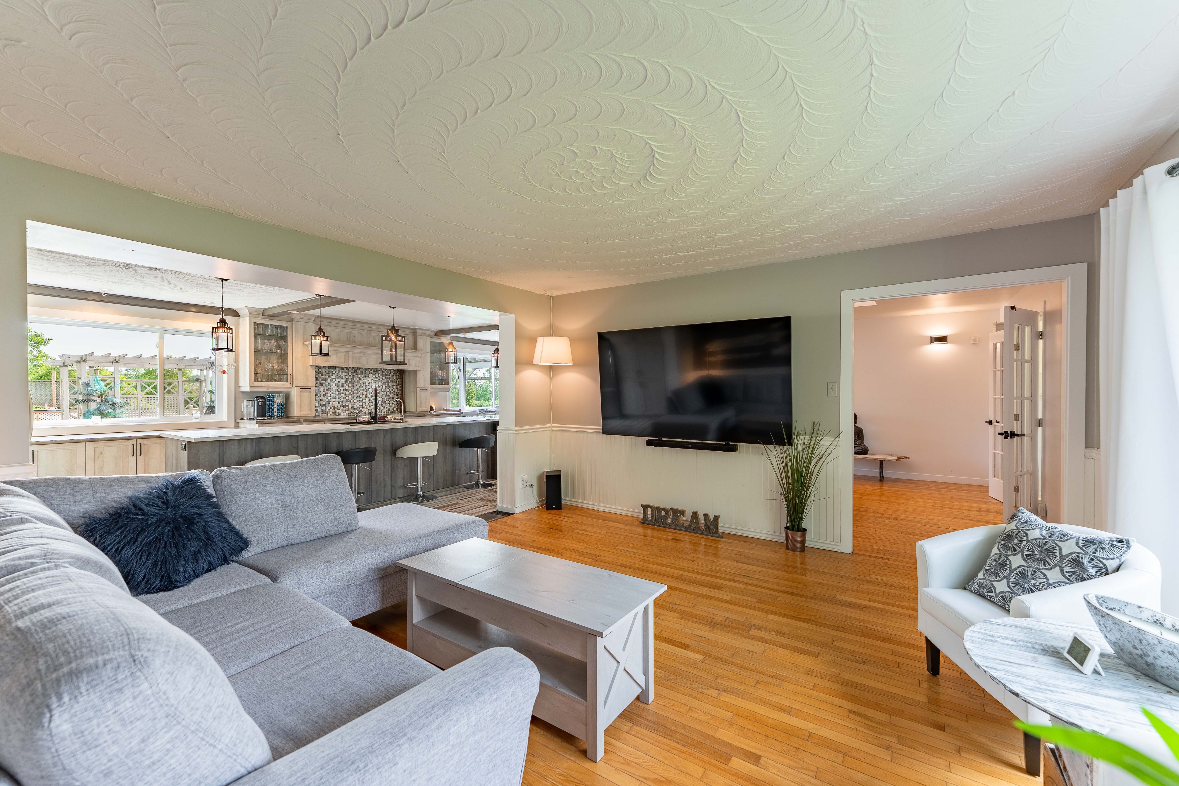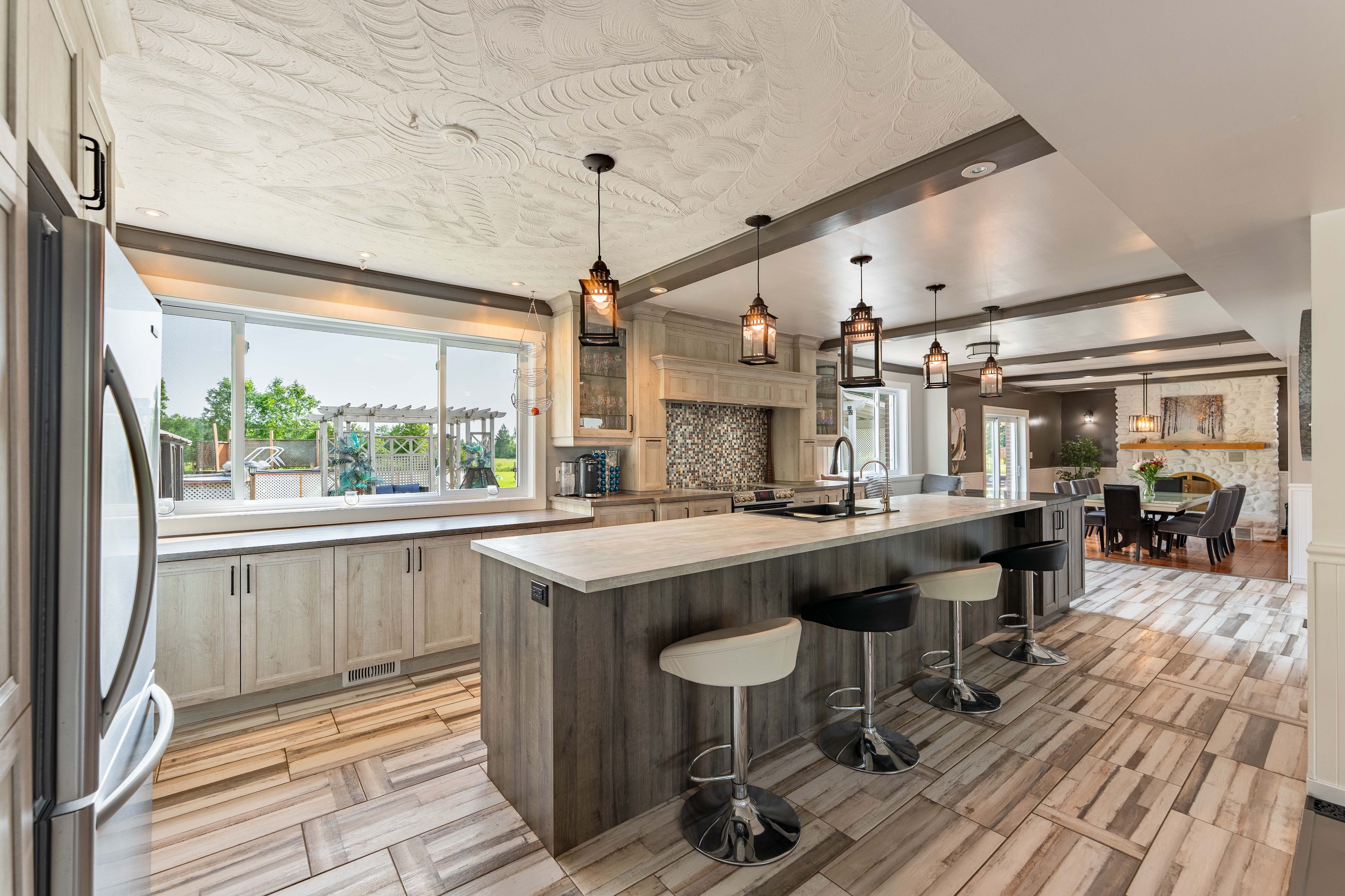 Nestled on a beautifully landscaped corner lot near the quebec-ontario border, this executive 2-storey home offers the perfect blend of elegance, comfort, and convenience. Ideally located just 35 minutes from montreal's west island, 1 hour from ottawa, and only 5 minutes to hawkesbury's renowned hospital, shopping, restaurants, and marina on the ottawa river this is a lifestyle opportunity you don't want to miss. The second level offers four spacious bedrooms, including a primary suite with a full ensuite and a separate full bathroom for the remaining bedrooms perfect for a growing family. On the main floor, enjoy a fully renovated open-concept layout where the kitchen becomes the heart of the home. Featuring a huge center island, built-in appliances, and an abundance of cabinetry, this kitchen is designed for entertaining. It flows seamlessly into the dining area, complete with a cozy wood-burning fireplace and patio doors that open to your private backyard retreat. Step outside to a brand-new poured concrete patio featuring an outdoor kitchen, pergola, and an above-ground pool ideal for summer fun and gatherings. The fully finished basement adds two more bedrooms and a spacious rec room, offering flexibility for guests, office space, or a home gym. Additional features include a double attached garage, central air conditioning, a paved driveway, and rough-in for central vacuum. This home is move-in ready and designed for both family life and entertaining in style.