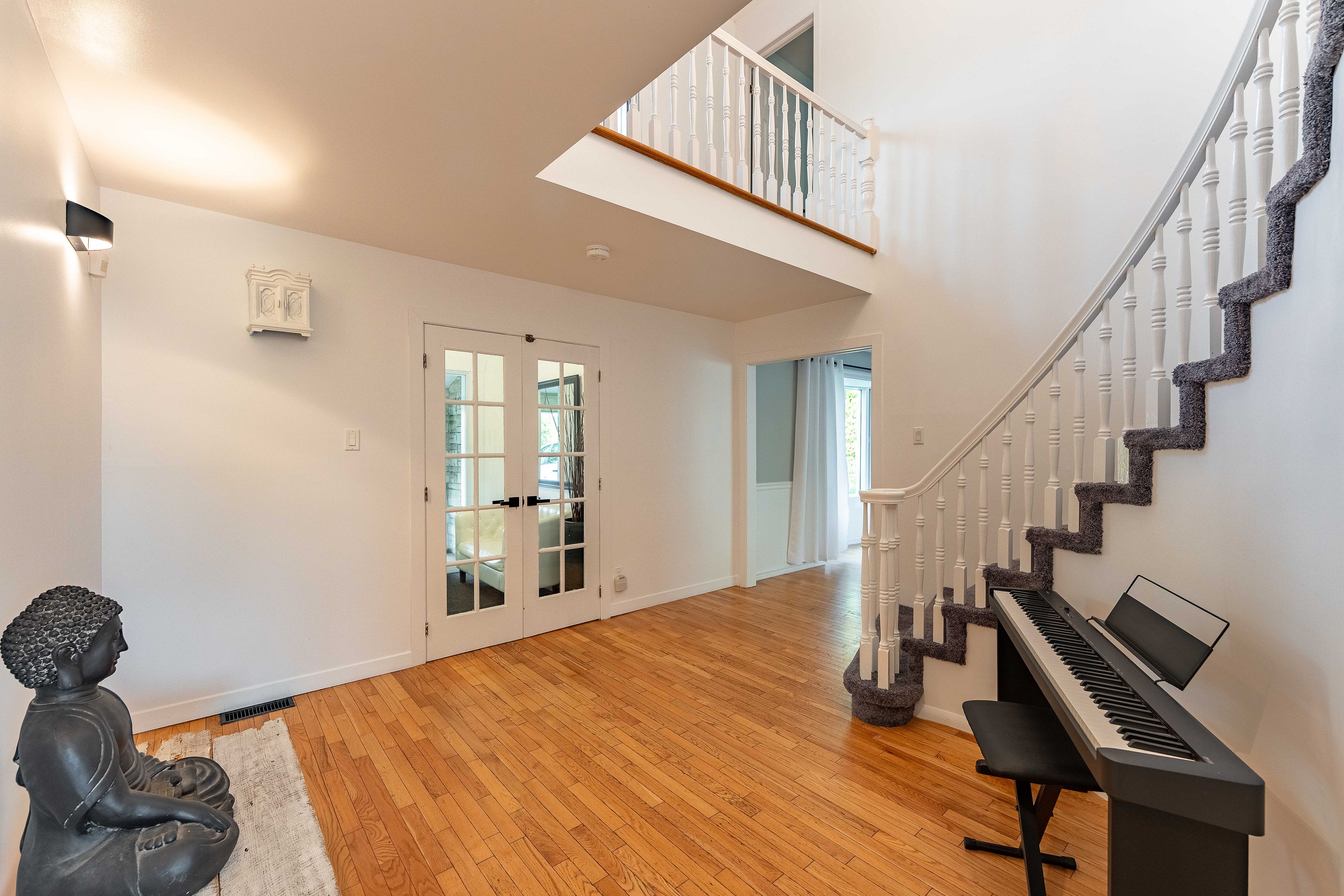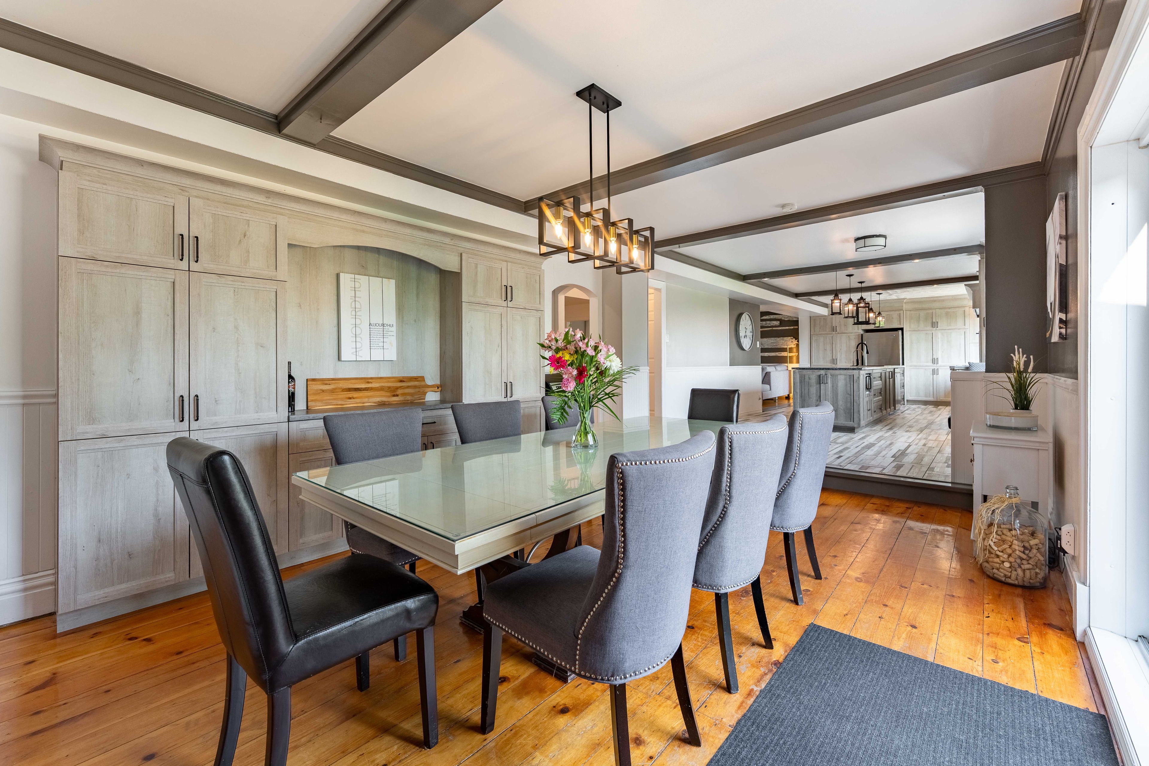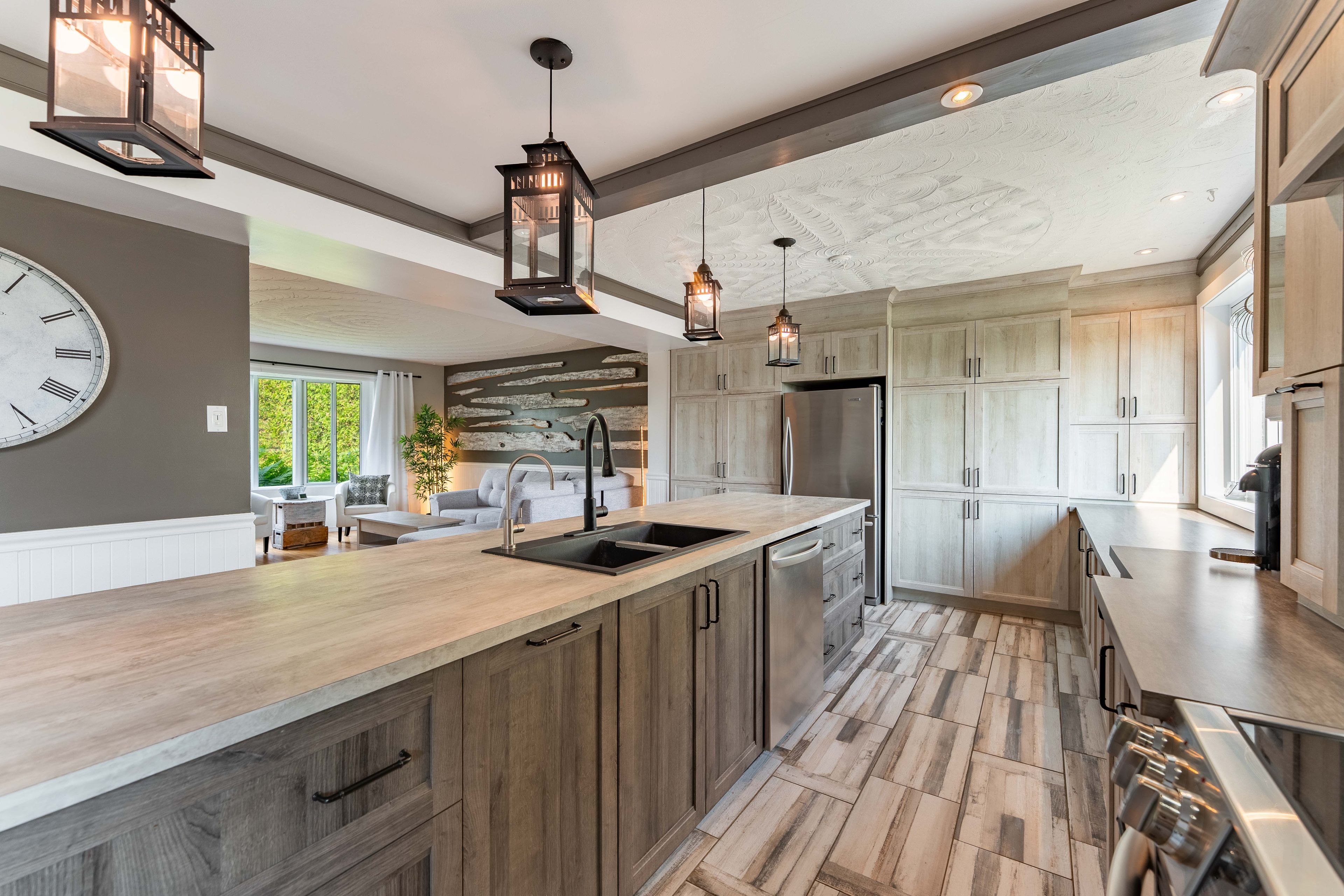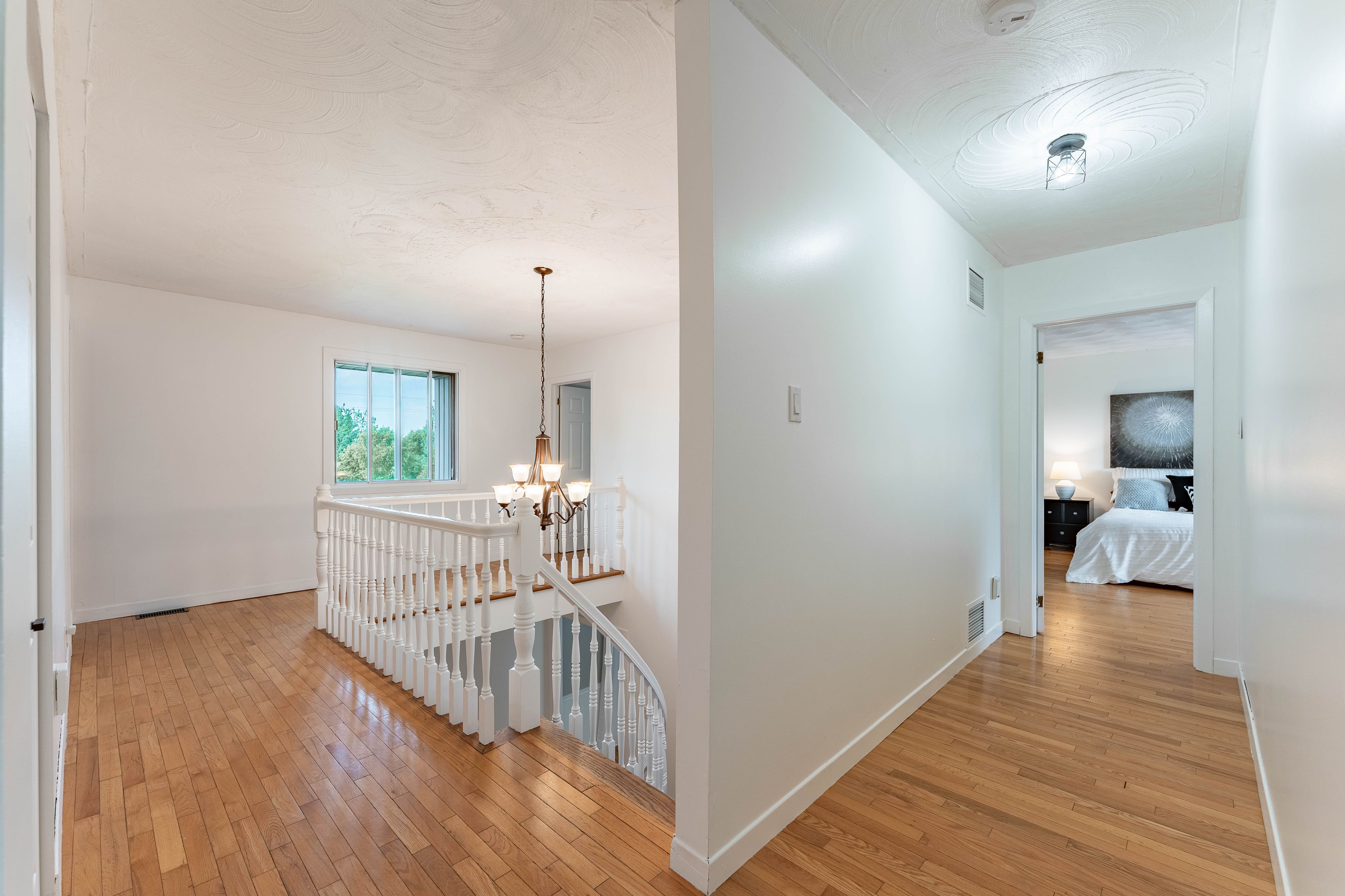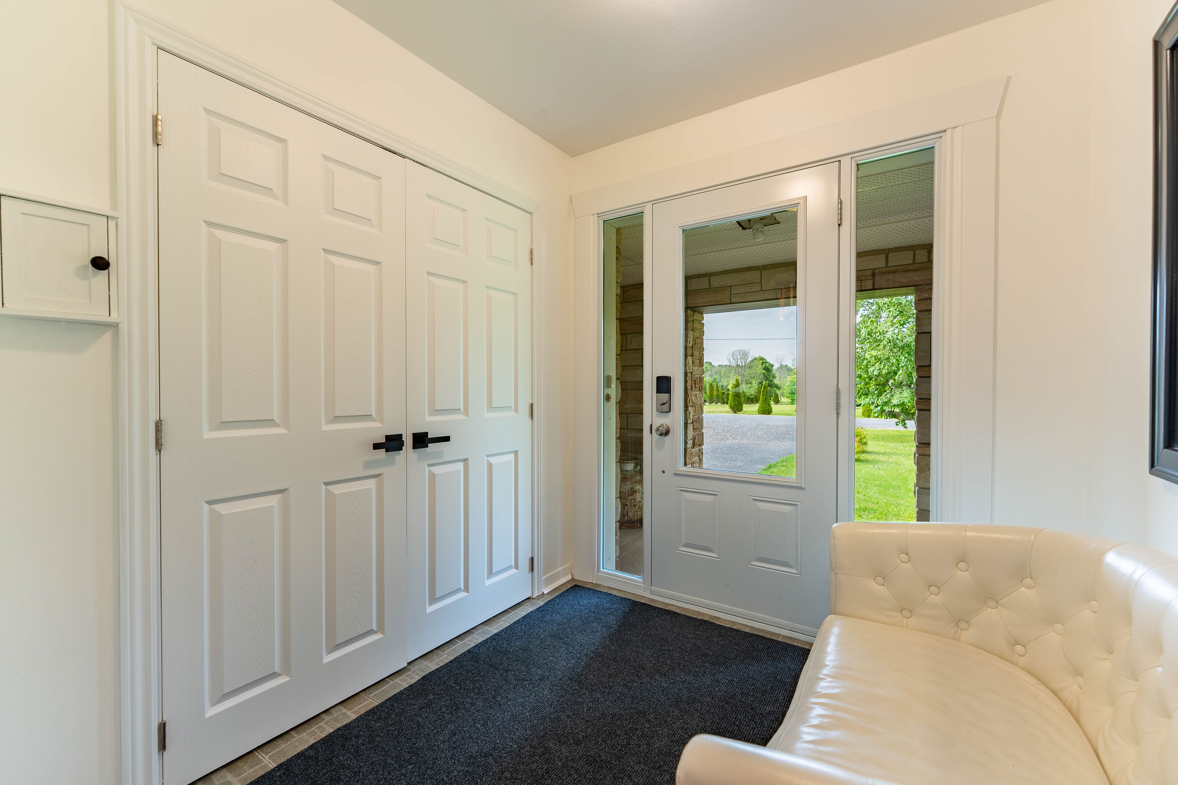 Nestled on a beautifully landscaped corner lot near the quebec-ontario border, this executive 2-storey home offers the perfect blend of elegance, comfort, and convenience. Ideally located just 35 minutes from montreal's west island, 1 hour from ottawa, and only 5 minutes to hawkesbury's renowned hospital, shopping, restaurants, and marina on the ottawa river this is a lifestyle opportunity you don't want to miss. The second level offers four spacious bedrooms, including a primary suite with a full ensuite and a separate full bathroom for the remaining bedrooms perfect for a growing family. On the main floor, enjoy a fully renovated open-concept layout where the kitchen becomes the heart of the home. Featuring a huge center island, built-in appliances, and an abundance of cabinetry, this kitchen is designed for entertaining. It flows seamlessly into the dining area, complete with a cozy wood-burning fireplace and patio doors that open to your private backyard retreat. Step outside to a brand-new poured concrete patio featuring an outdoor kitchen, pergola, and an above-ground pool ideal for summer fun and gatherings. The fully finished basement adds two more bedrooms and a spacious rec room, offering flexibility for guests, office space, or a home gym. Additional features include a double attached garage, central air conditioning, a paved driveway, and rough-in for central vacuum. This home is move-in ready and designed for both family life and entertaining in style.
