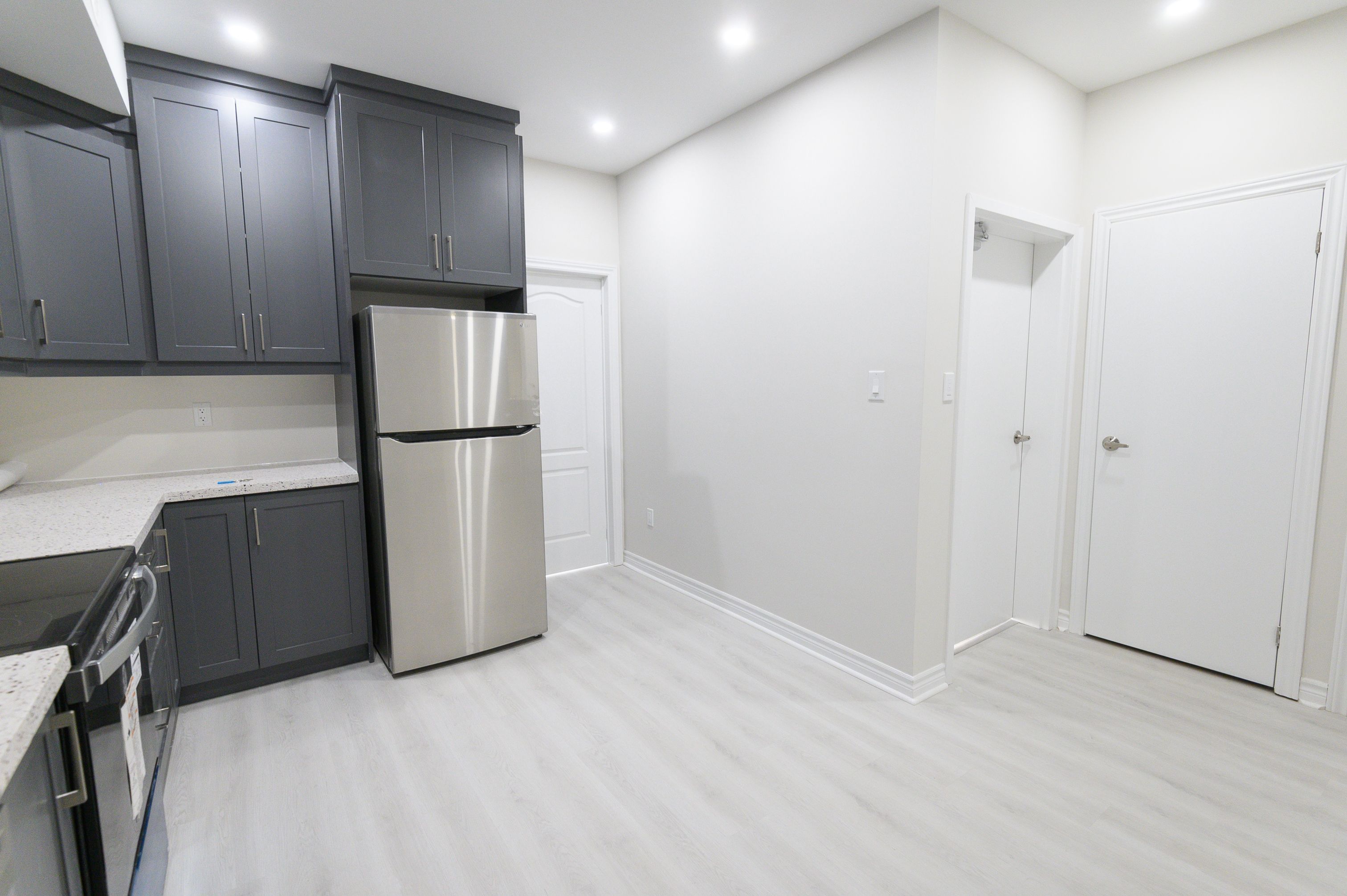 Can be used as commercial/residential. Completely separate legal unit in this 4 plex apartment building. Great location on transit line. Very clean with good layout. Each unit has its own separate hvac and one parking spot in the back lane driveway, plenty of city parking available in front of the building on bur oak ave. Recently renovated, flooring, kitchen & appliances, ensuite laundry, hvac & a/c. One year lease contract. +1050 sf space. Two entrances in the front and back. Tenant pays for electricity (measured separately). Copy of id, credit report with score, employment letter, paystubs & rental application plus first & last month rent and tenant insurance required.