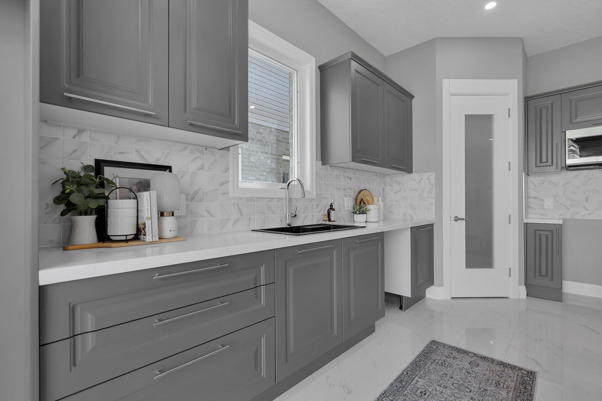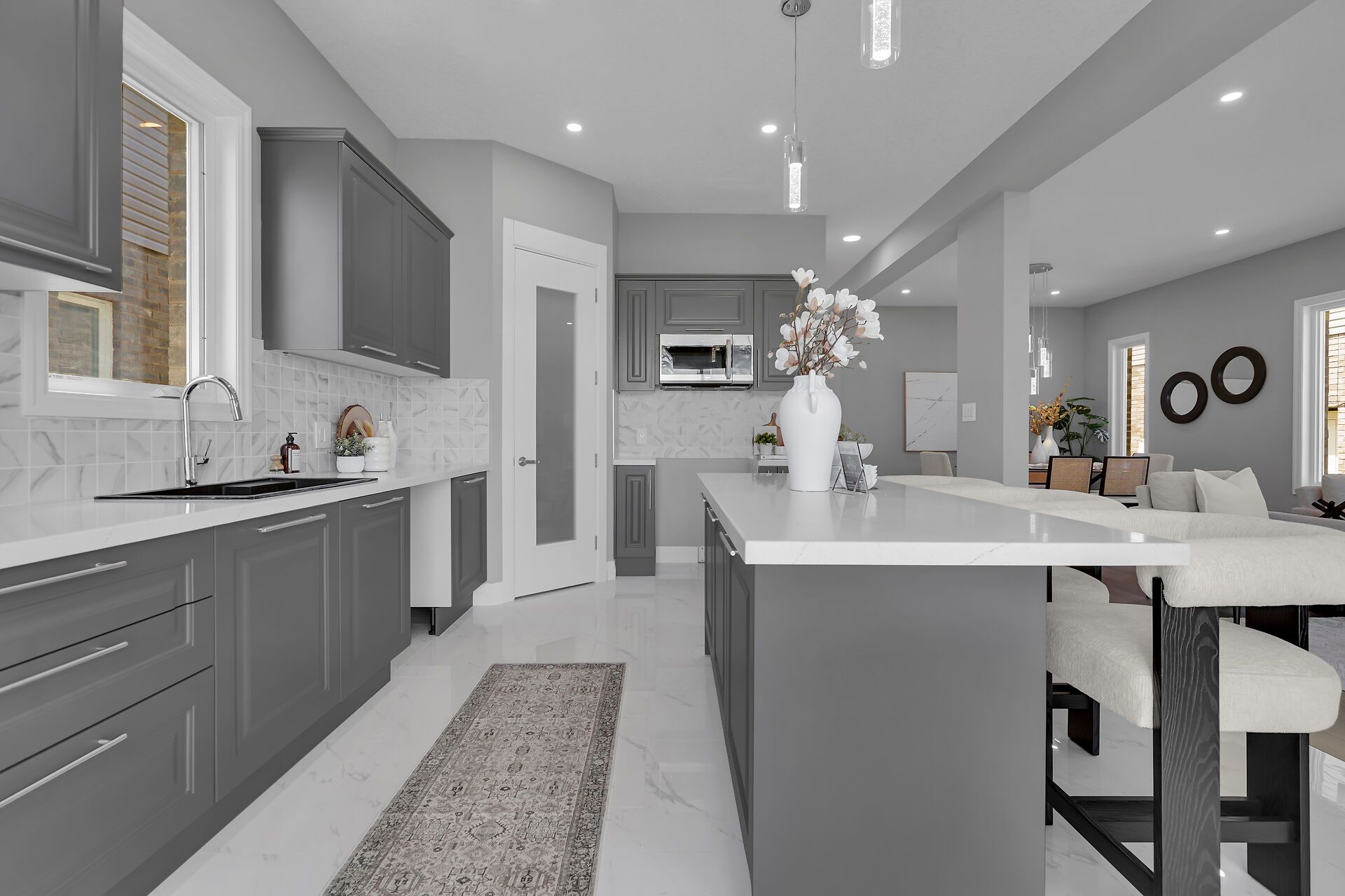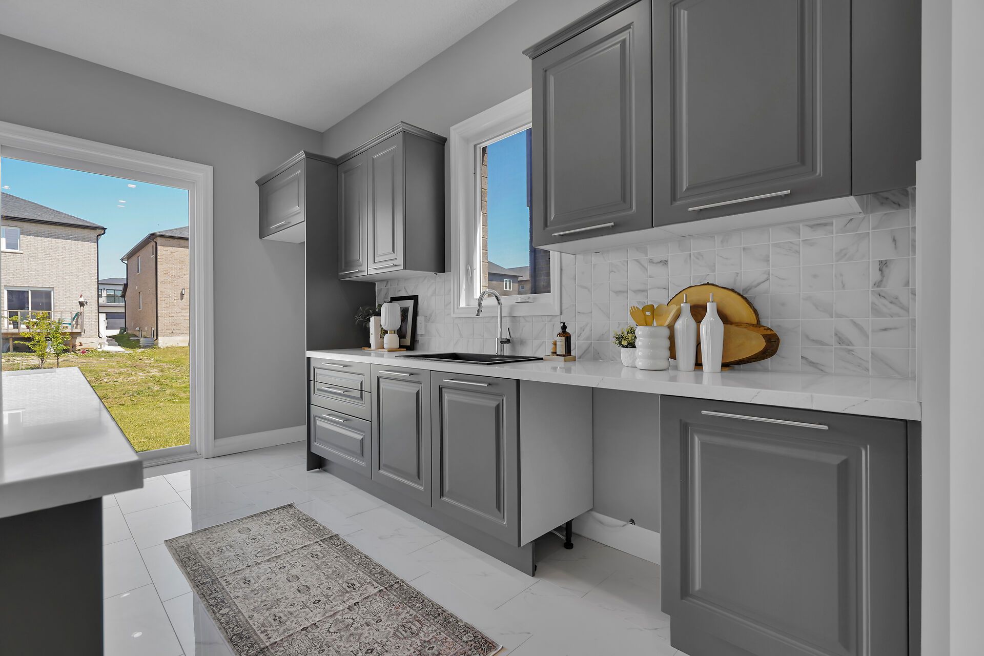 • Upgraded kitchen with quartz countertops and walk-in pantry.