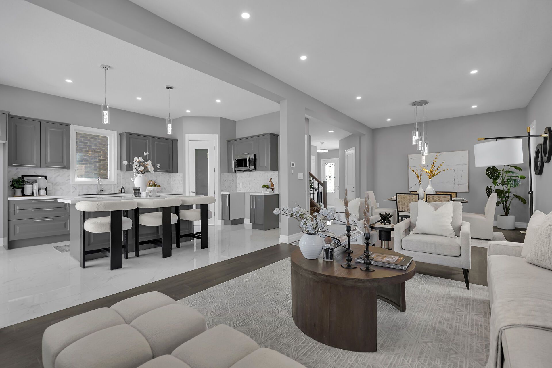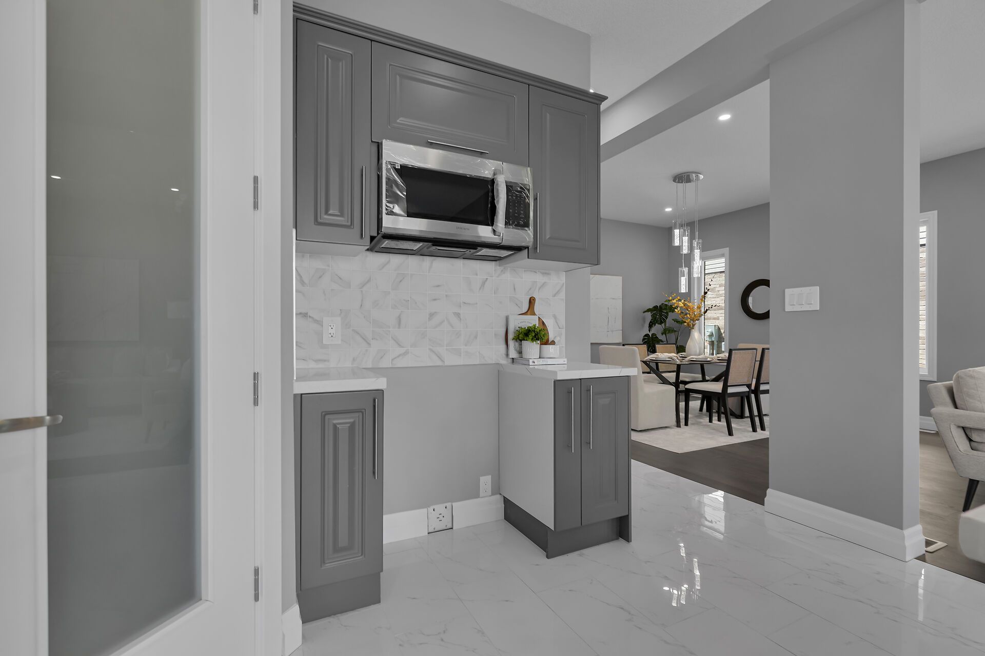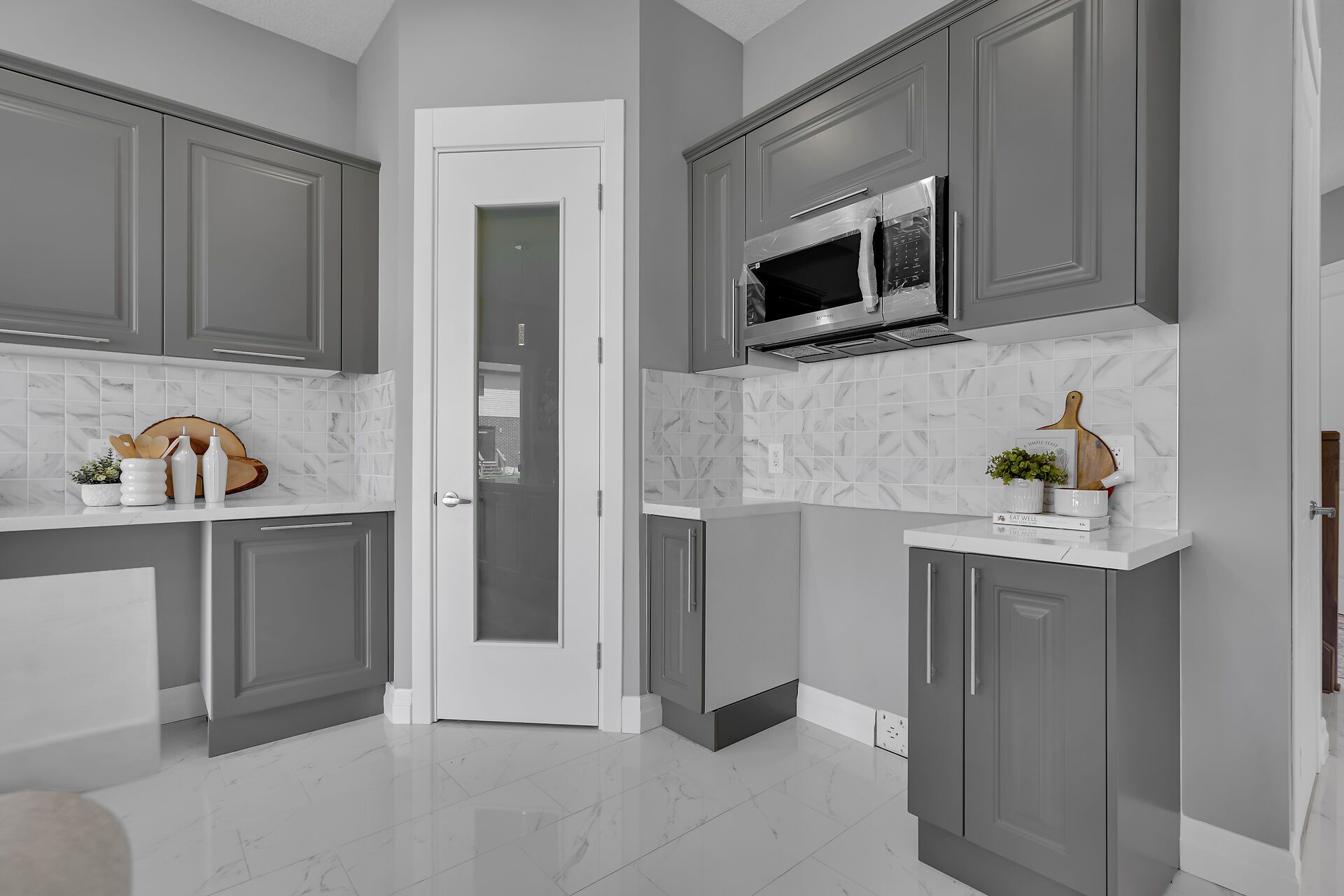 • Upgraded kitchen with quartz countertops and walk-in pantry.