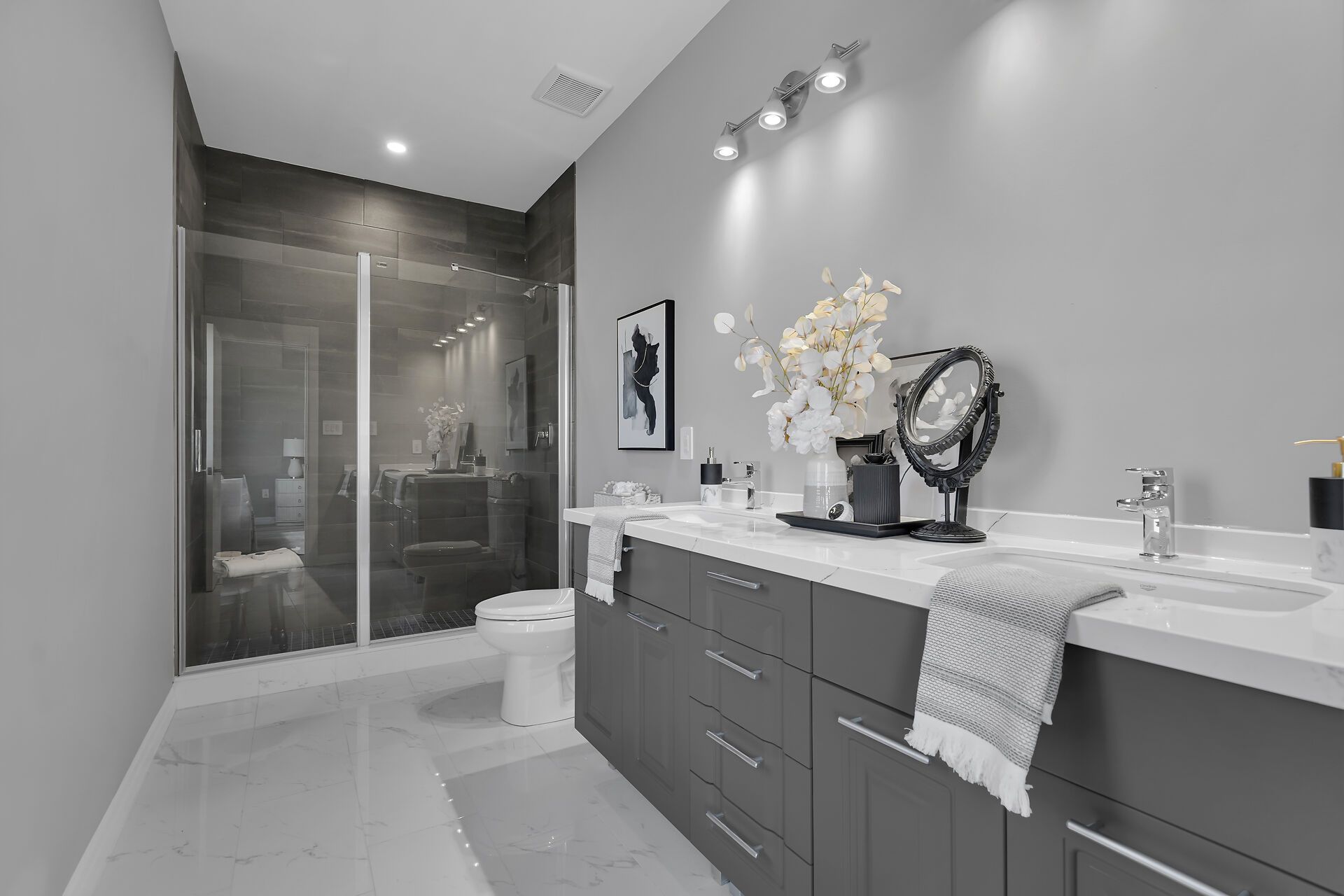 • Spacious primary suite with walk-in closet and ensuite bathroom.