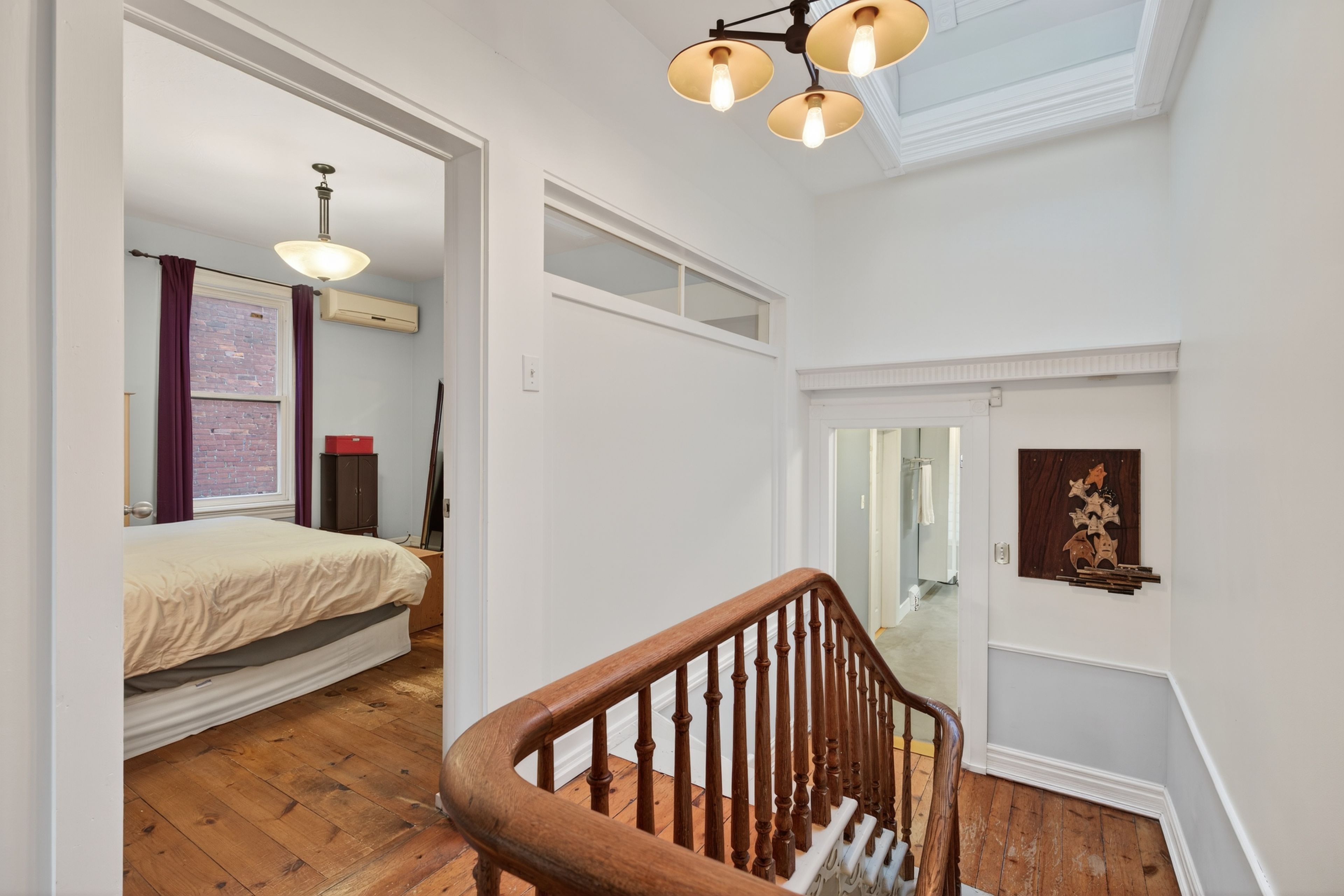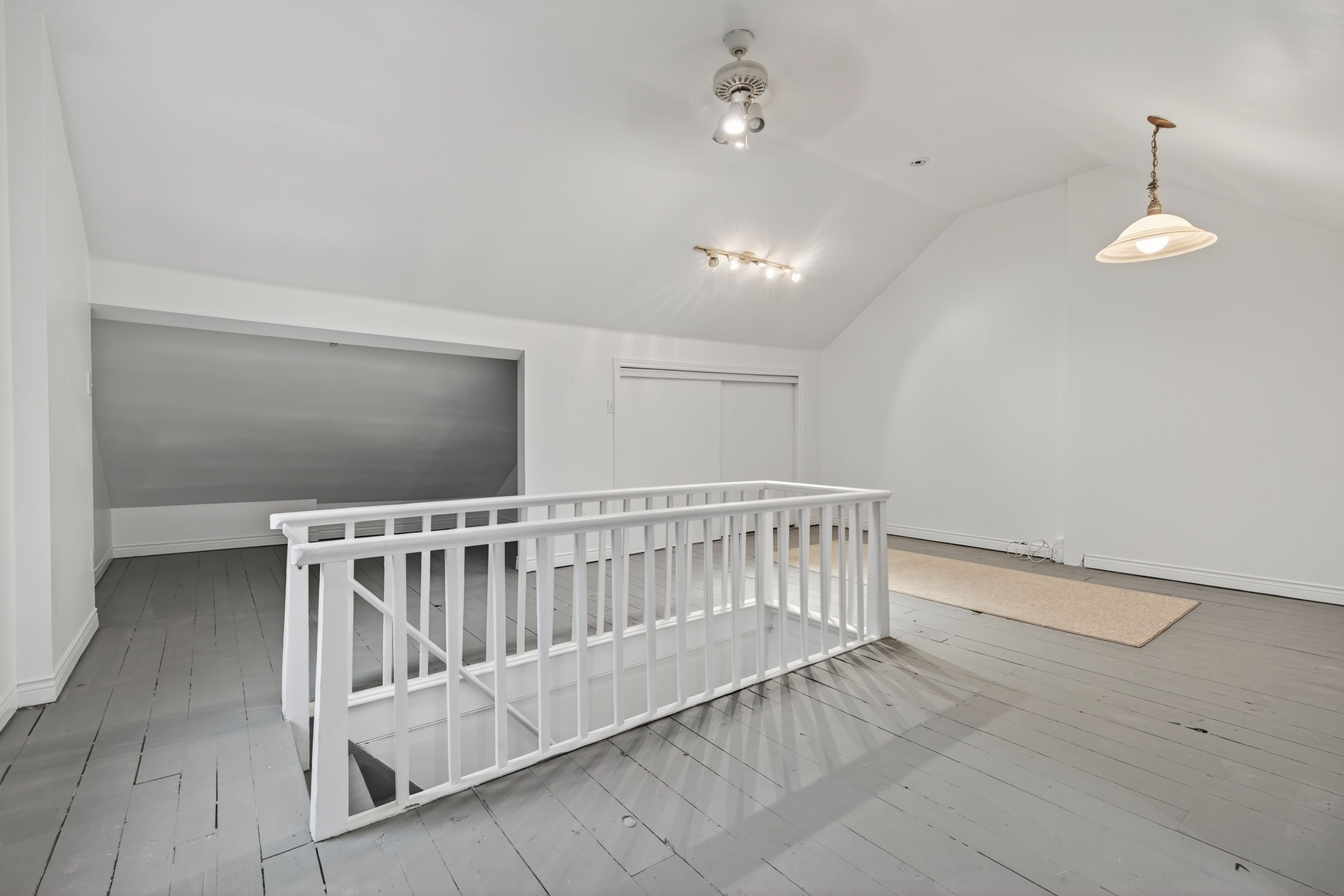 Step through the front door of this victorian semi and prepare to be surprised - this all-brick beauty is much bigger and more captivating than it appears! A dramatic entry foyer with soaring ceilings welcomes you into a home that radiates personality and warmth. The main floor offers an impressive sense of scale: generous living and dining rooms perfect for hosting, plus a huge updated kitchen with a double-width stainless steel fridge and room to truly cook, gather, and live. A convenient 4-piece bath and a high, dry basement with side walk-out add everyday practicality. Upstairs, character takes centre stage. Rustic wide-plank pine floors, full of story and charm, lead past a skylight that pours natural light down the stairwell. The spacious layout includes a large bedroom, a cozy office/bedroom, and a remarkably generous primary suite that flows into a connected den. From here, step out onto your covered balcony - an intimate, elevated hideaway perfect for morning coffee or late-night unwinding. The stunning renovated bathroom brings modern luxury with an all-glass shower, concrete-style flooring, and in-suite laundry. The finished third-floor loft completes the home with an inspiring open-concept space ideal for a studio, bedroom, or creative retreat. Outside, the fully fenced yard is an urban oasis: a large deck for entertaining, a charming side courtyard tucked under the balcony, and a converted garage for great storage. A rare two-car driveway is the kind of bonus you almost never find here. With more than $70,000 in thoughtful improvements - roofing, wiring, masonry, moisture protection, a full bathroom renovation, and numerous cosmetic upgrades - this home blends historic soul with modern comfort. All of this sits steps from the energy of james north's arts and dining scene, the west harbour go station, bayfront park, and the waterfront. It's the perfect mix of vibrancy, charm, and spacious downtown living - a truly one-of-a-kind hamilton home.