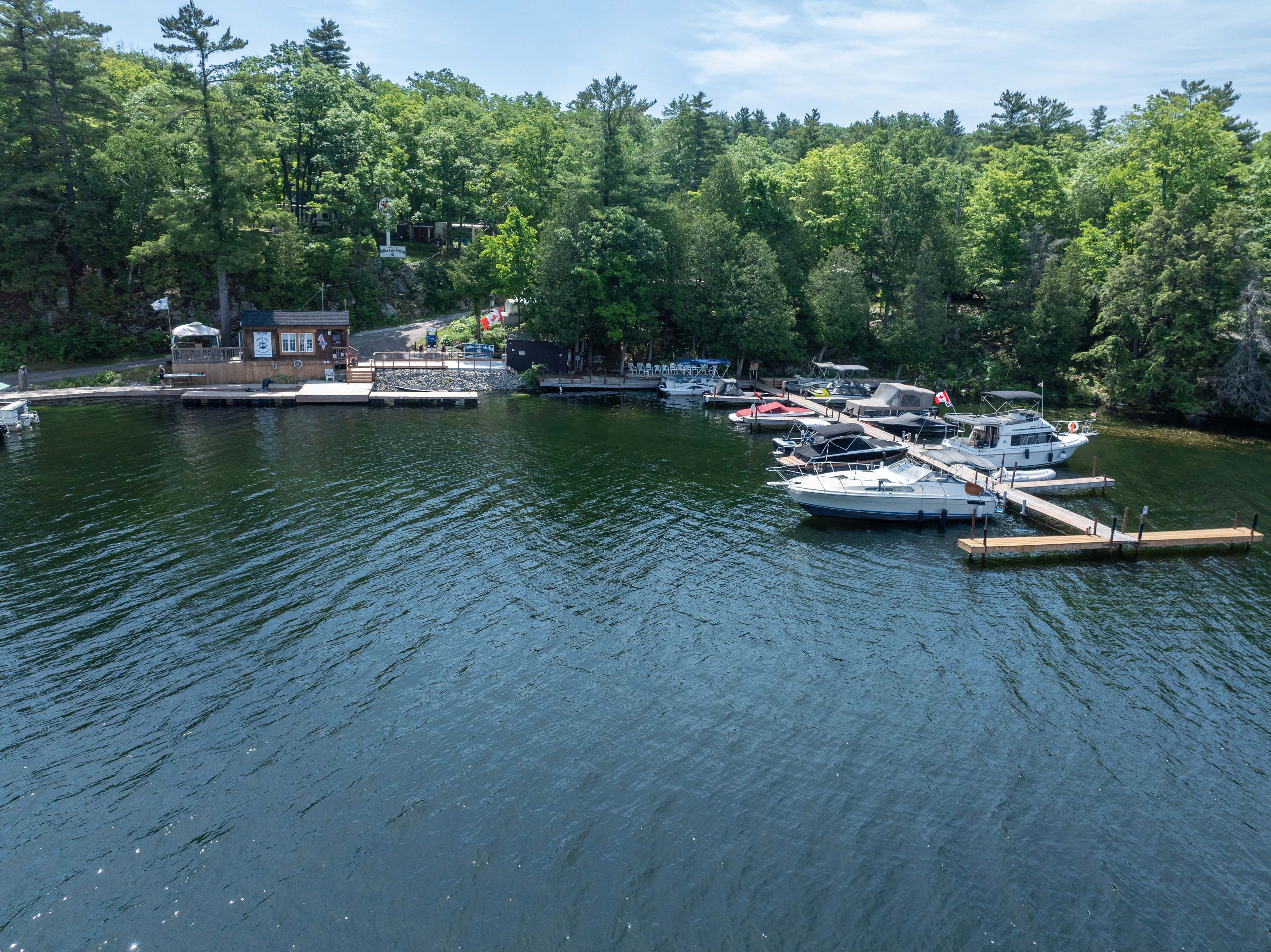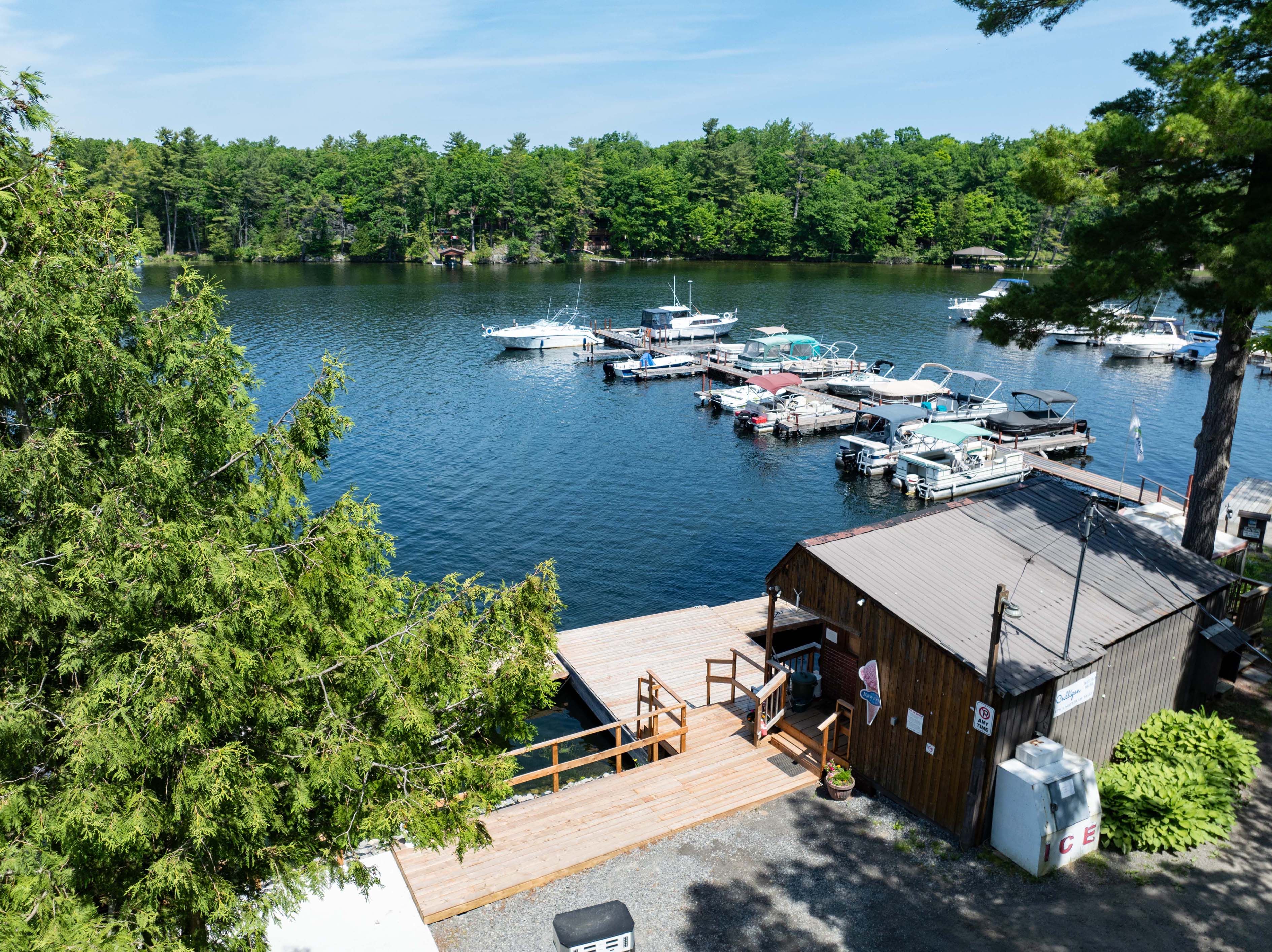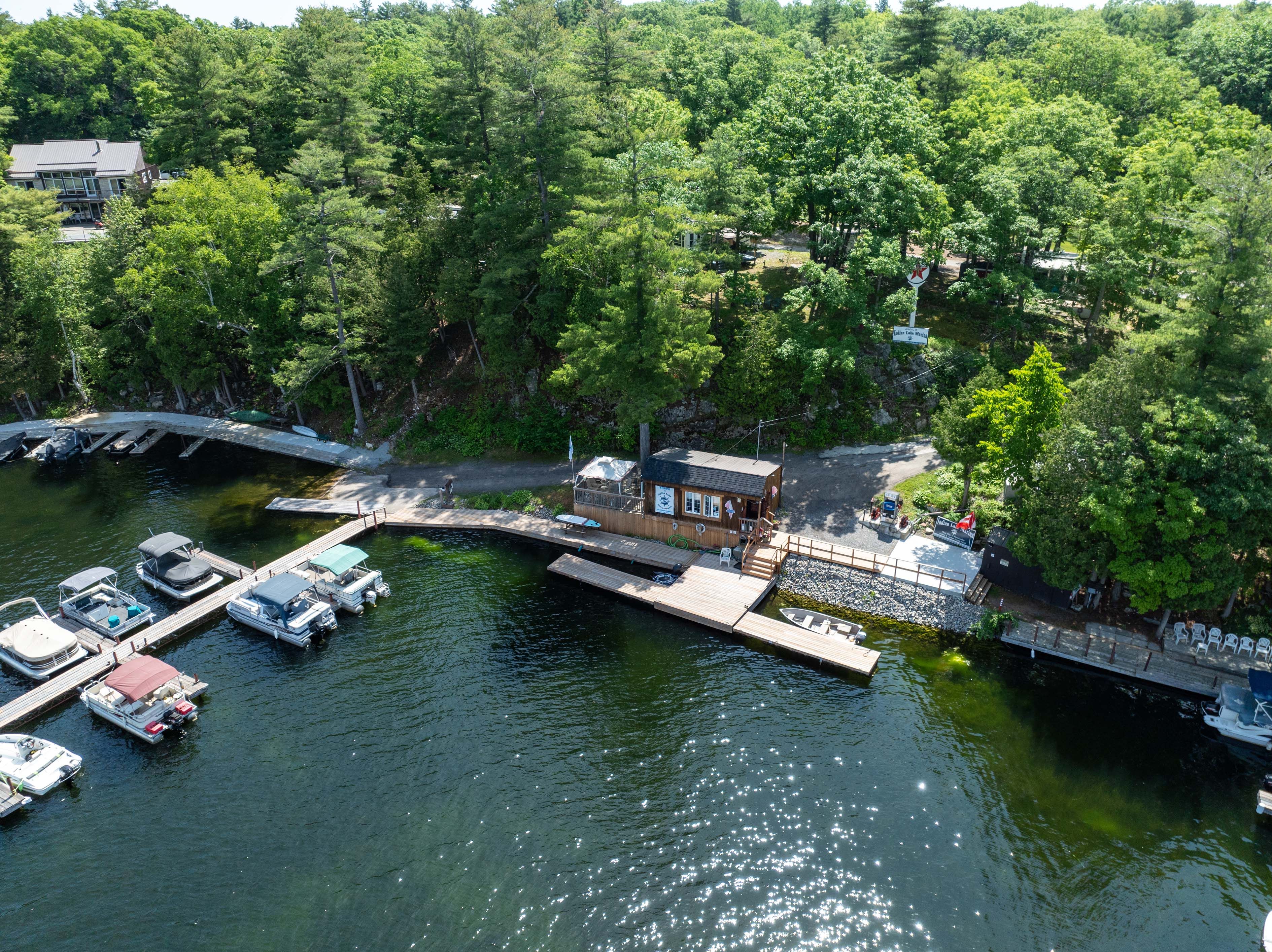 Investment opportunity on the heritage rideau canal system! Welcome to the indian lake marina and campground. This well-established business has 550' of deep, clean shoreline and is nestled in the trees with 26 acres of prime commercially zoned waterfront land. This gorgeous property not only has a full marina but offers a perfect getaway for the outdoorsy camper, fisherman and boater. There are three large dock sections with 80 slips available to rent. The main dock framework is constructed out of steel and the decking is pressure treated lumber. These docks have been updated recently and are in great shape with mainly seasonal boat slips rented. Down at the lakeside there is a convenience store with an lcbo location where boaters can find ice, water, clothing, camping/boating supplies as well as very popular scooped ice cream. There is a modern fuel system and a galvanized trailer septic pump out system attracting many cruisers traveling the rideau system. This location is a favourite stopover for 2 popular boating routes; 'the great loop' and the 'montreal to ottawa loop'. Servicing and winter boat storage can be accomplished within the 6000 sq. Ft building or outside with a capacity of 100+ spots. There are 18 rv/trailer sites on the property with electricity and water with room for expansion. There are also 2 tent sites in a remote setting. Included are 3 rv/trailers available for use or rentals. There are updated showers, park-wide wifi and video security. This could be your next great investment and chance to operate your own business on a beautiful lake in the heart of the rideau canal system or a completely new endeavour!