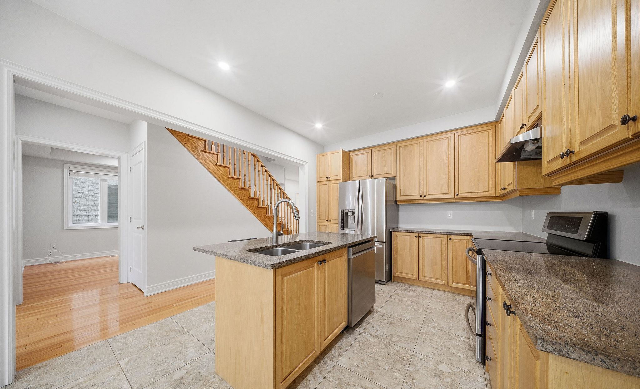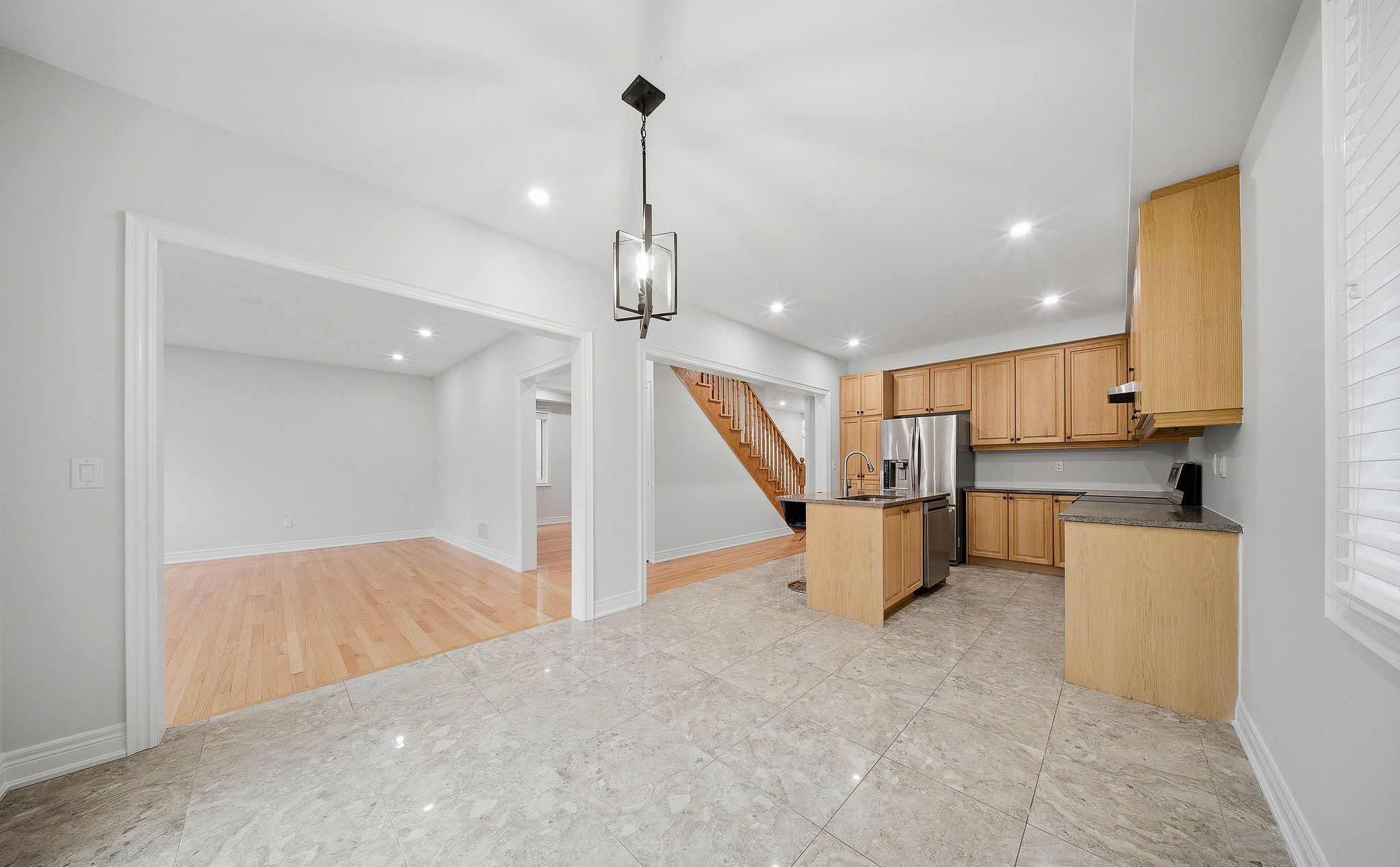• Freshly painted with high ceilings and new pot lights adding modern touches.