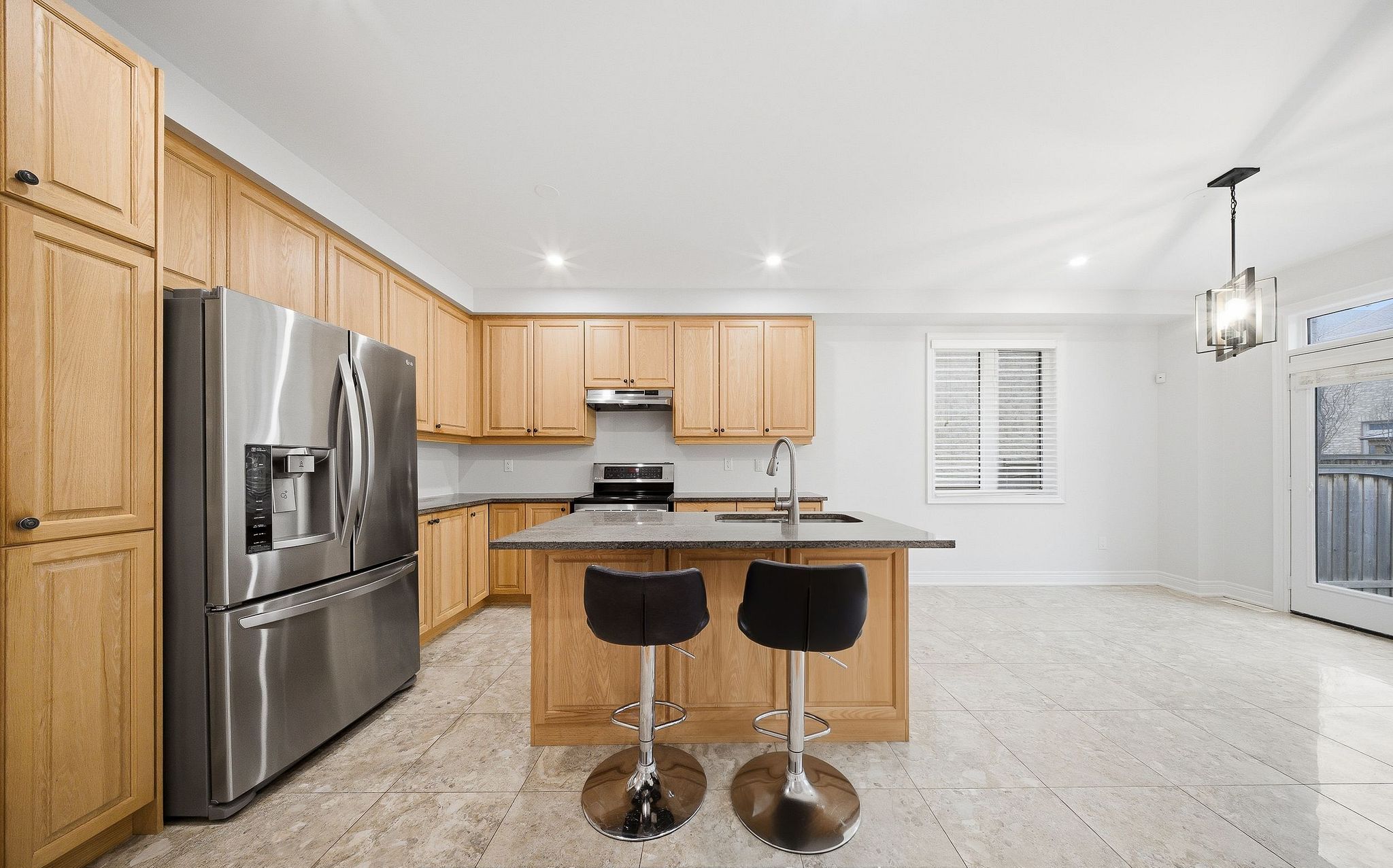 • Large private backyard accessed from a beautiful kitchen with a breakfast area.